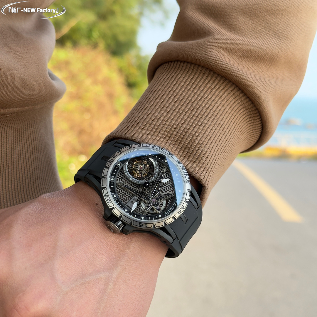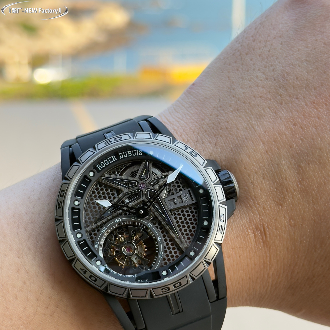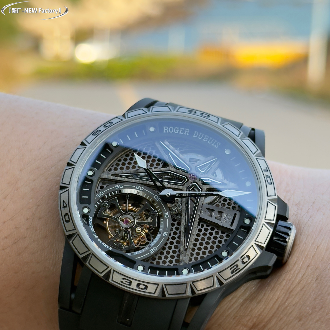 这款手表是AAAAA 1:1 质量 (非常棒). 使用了和原版一模一样的材料. 商标部分也保持了和Roger Dubuis一样. 图片拍摄是实物手表拍摄, 您所收到的实物保证和我们图片一模一样.