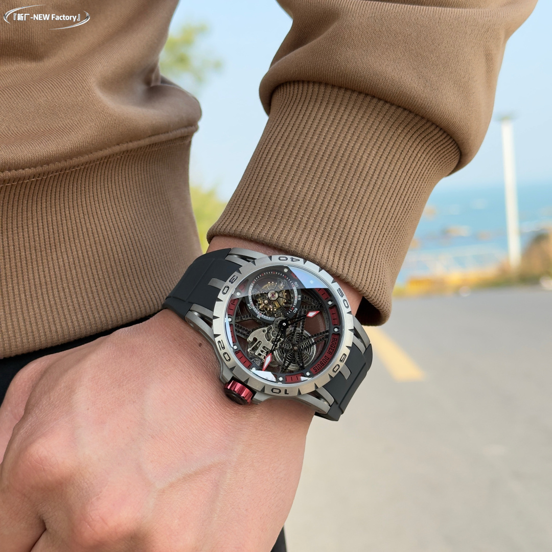 这款手表是AAAAA 1:1 质量 (非常棒). 使用了和原版一模一样的材料. 商标部分也保持了和Roger Dubuis一样. 图片拍摄是实物手表拍摄, 您所收到的实物保证和我们图片一模一样.