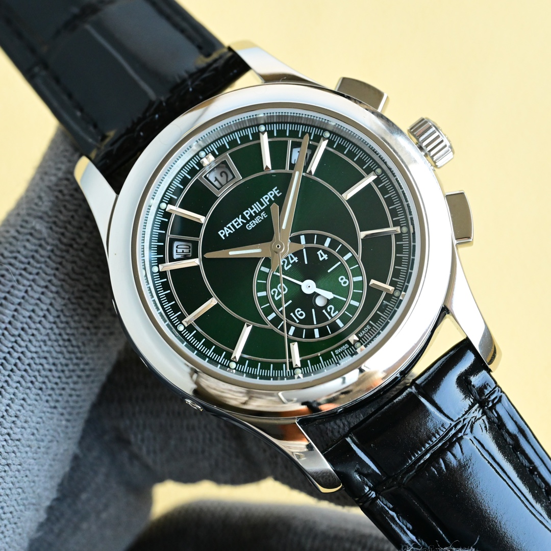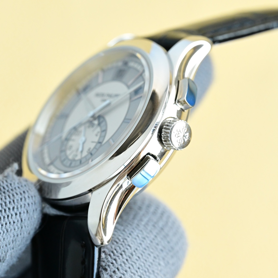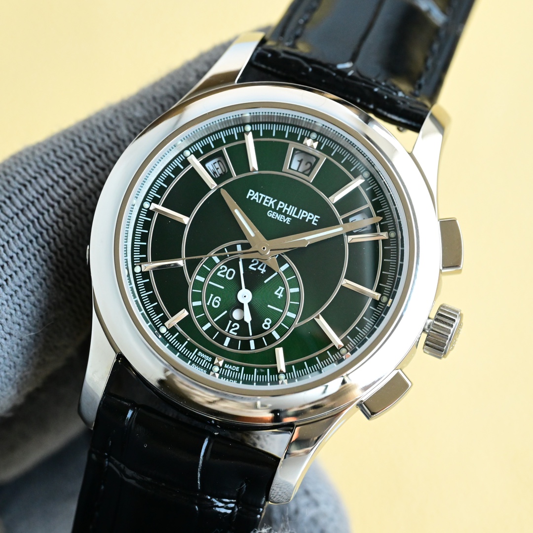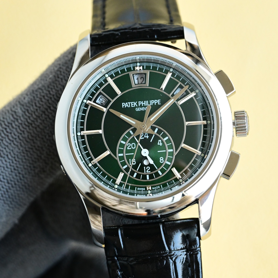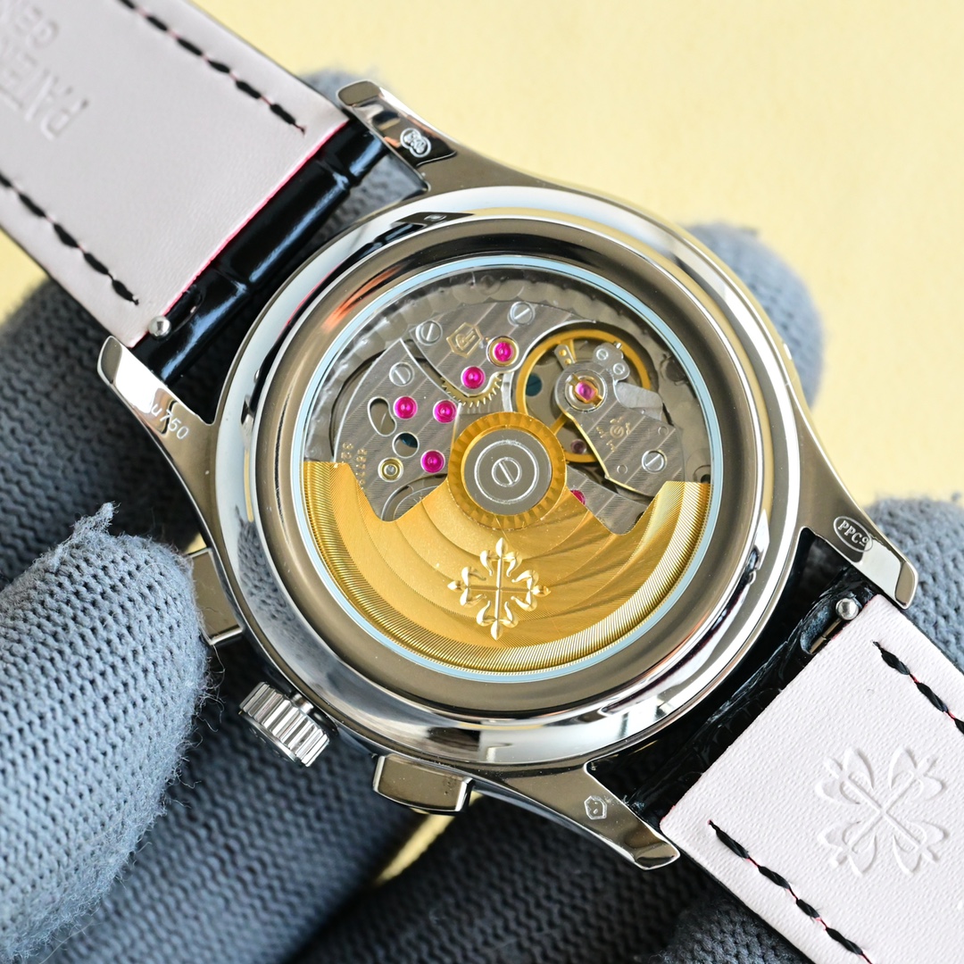 这款手表是AAAAA 1:1 质量 (非常棒). 使用了和原版一模一样的材料. 商标部分也保持了和百达翡丽/Patek Philippe一样. 图片拍摄是实物手表拍摄, 您所收到的实物保证和我们图片一模一样.