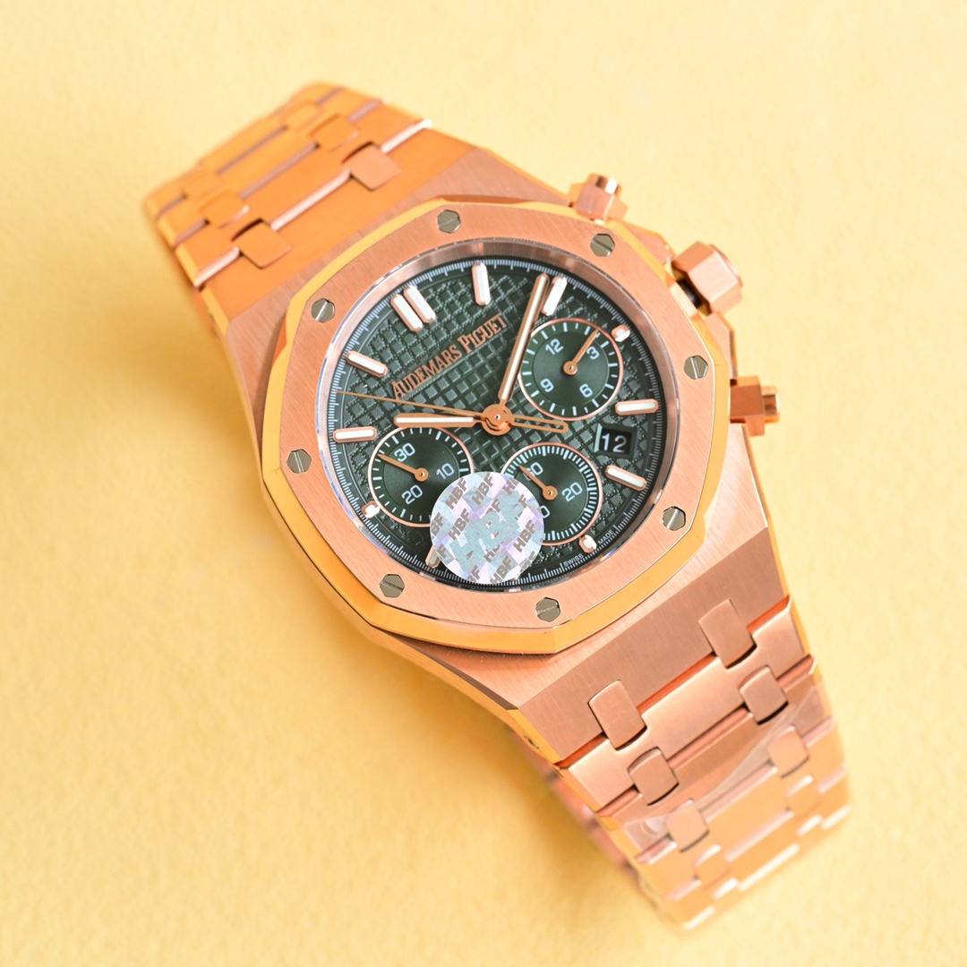 这款手表是AAAAA 1:1 质量 (非常棒). 使用了和原版一模一样的材料. 商标部分也保持了和爱彼/Audemars Piguet一样. 图片拍摄是实物手表拍摄, 您所收到的实物保证和我们图片一模一样.