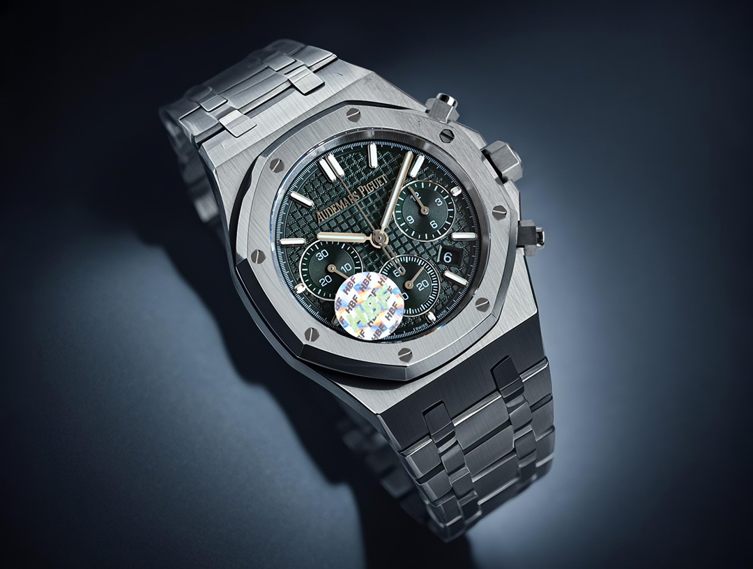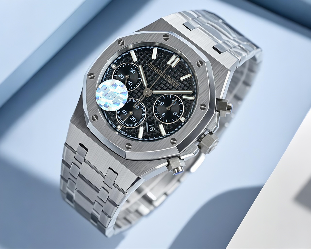 这款手表是AAAAA 1:1 质量 (非常棒). 使用了和原版一模一样的材料. 商标部分也保持了和爱彼/Audemars Piguet一样. 图片拍摄是实物手表拍摄, 您所收到的实物保证和我们图片一模一样.