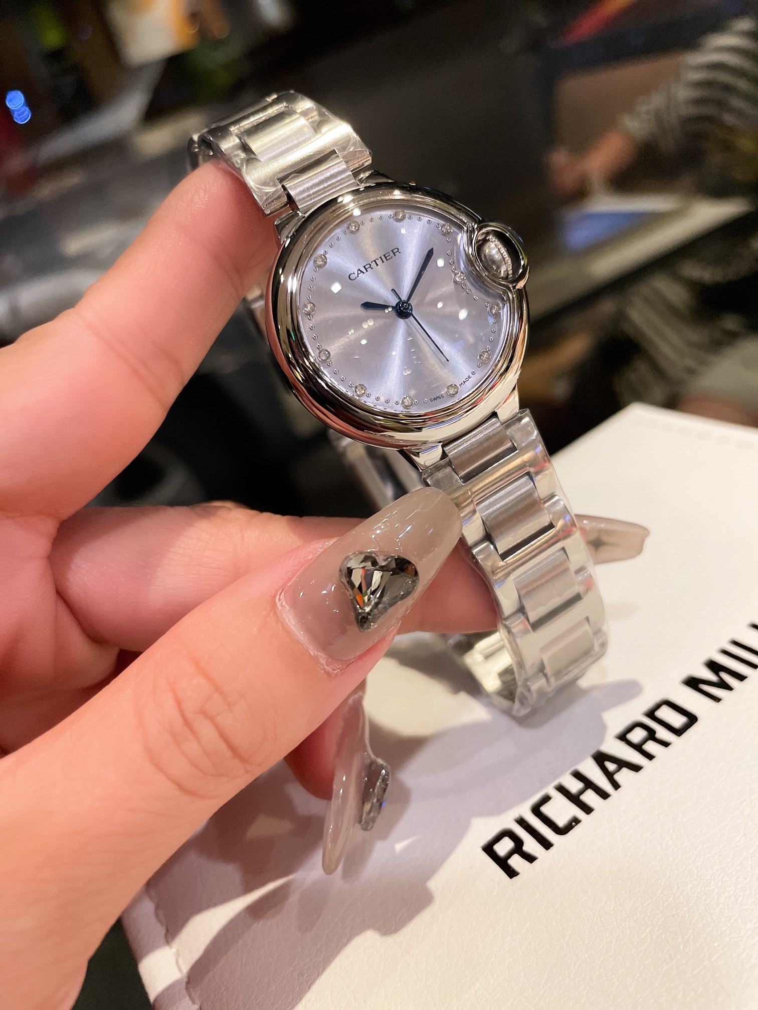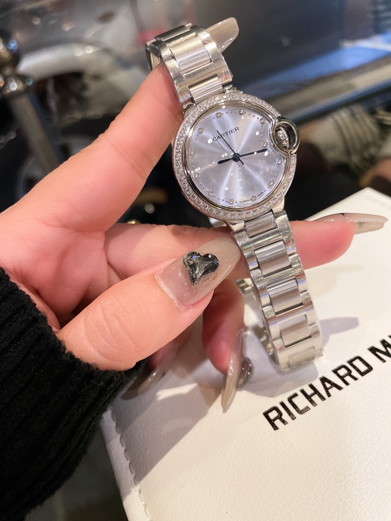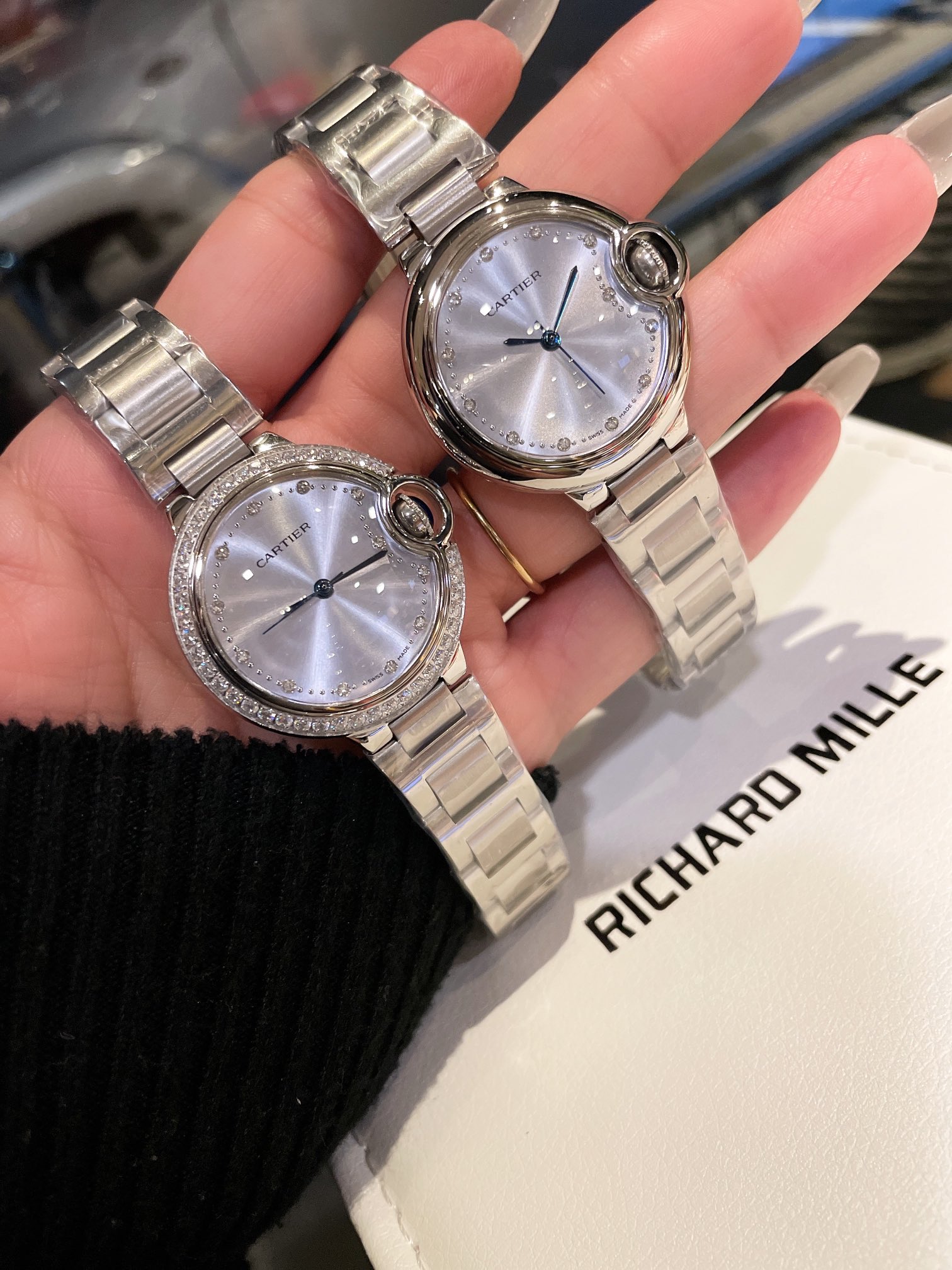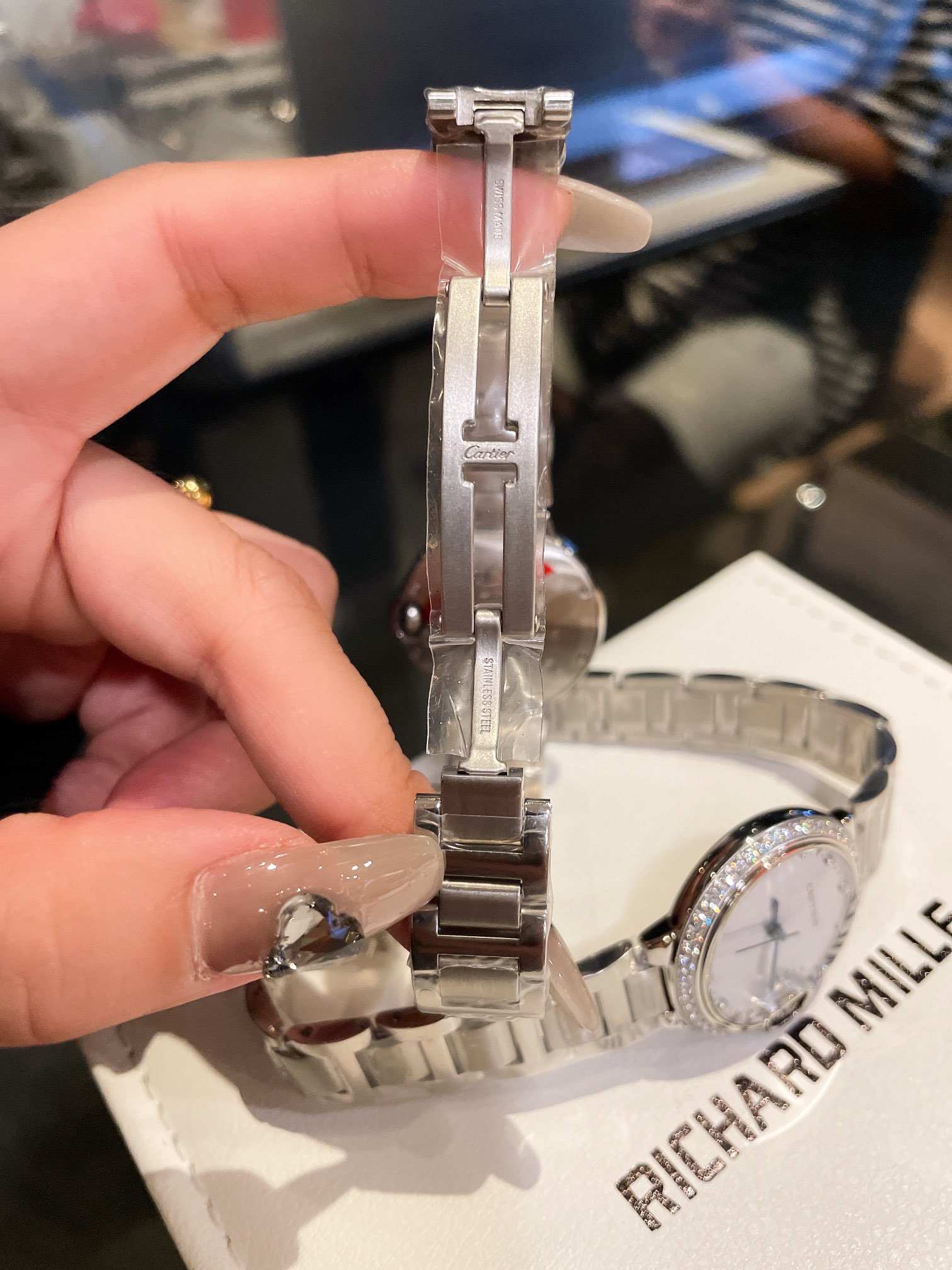 这款手表是AAAAA 1:1 质量 (非常棒). 使用了和原版一模一样的材料. 商标部分也保持了和卡地亚/Cartier一样. 图片拍摄是实物手表拍摄, 您所收到的实物保证和我们图片一模一样.
