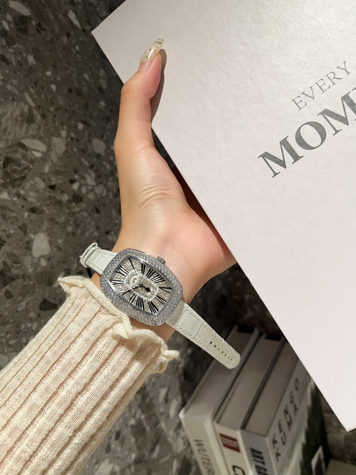 这款手表是AAAAA 1:1 质量 (非常棒). 使用了和原版一模一样的材料. 商标部分也保持了和Franck Mulle一样. 图片拍摄是实物手表拍摄, 您所收到的实物保证和我们图片一模一样.
