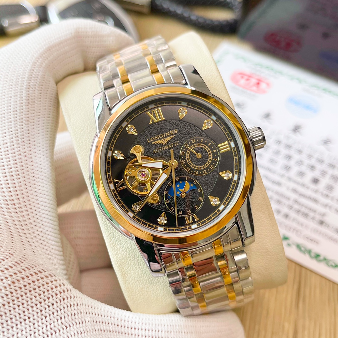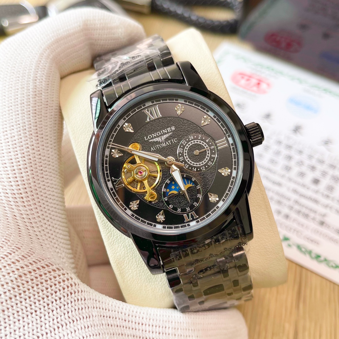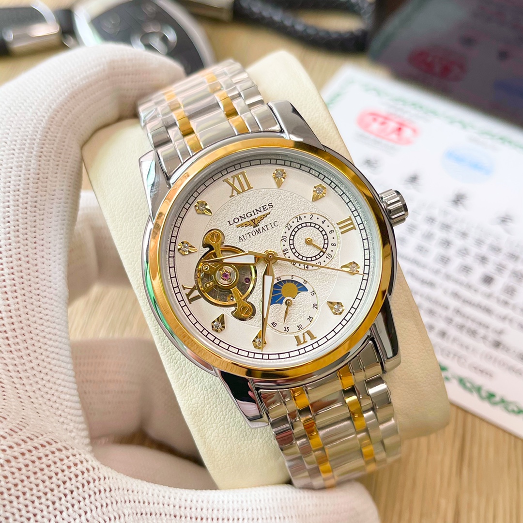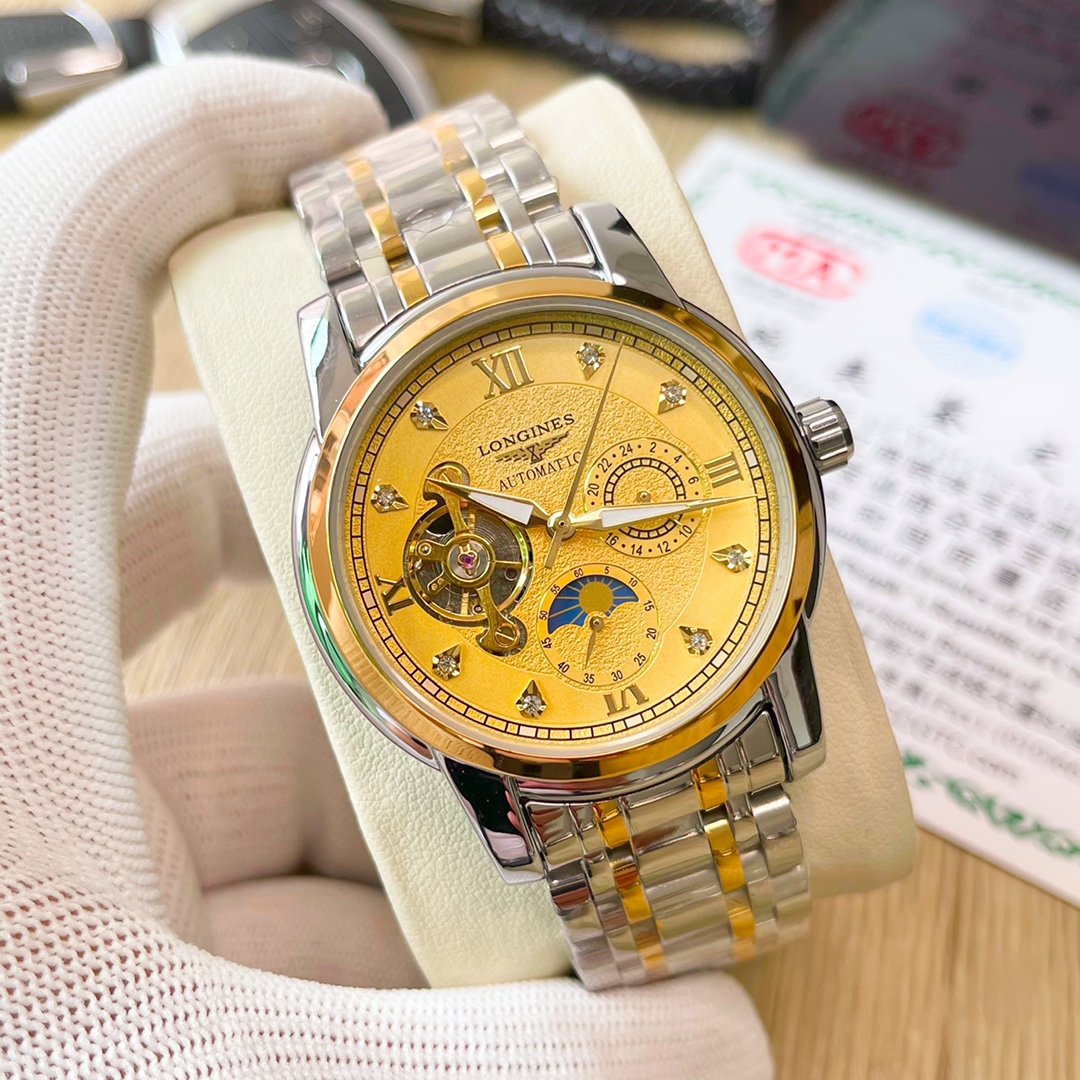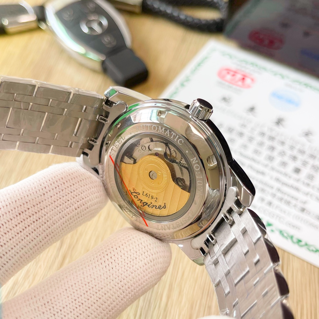 这款手表是AAAAA 1:1 质量 (非常棒). 使用了和原版一模一样的材料. 商标部分也保持了和浪琴/Longines一样. 图片拍摄是实物手表拍摄, 您所收到的实物保证和我们图片一模一样.