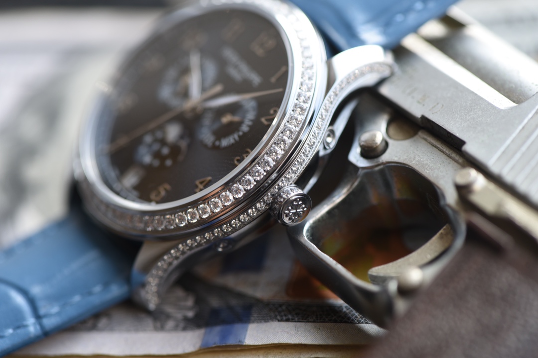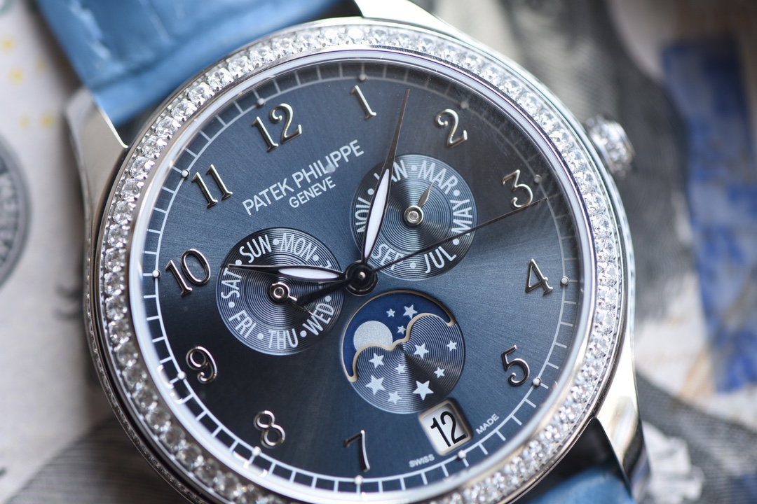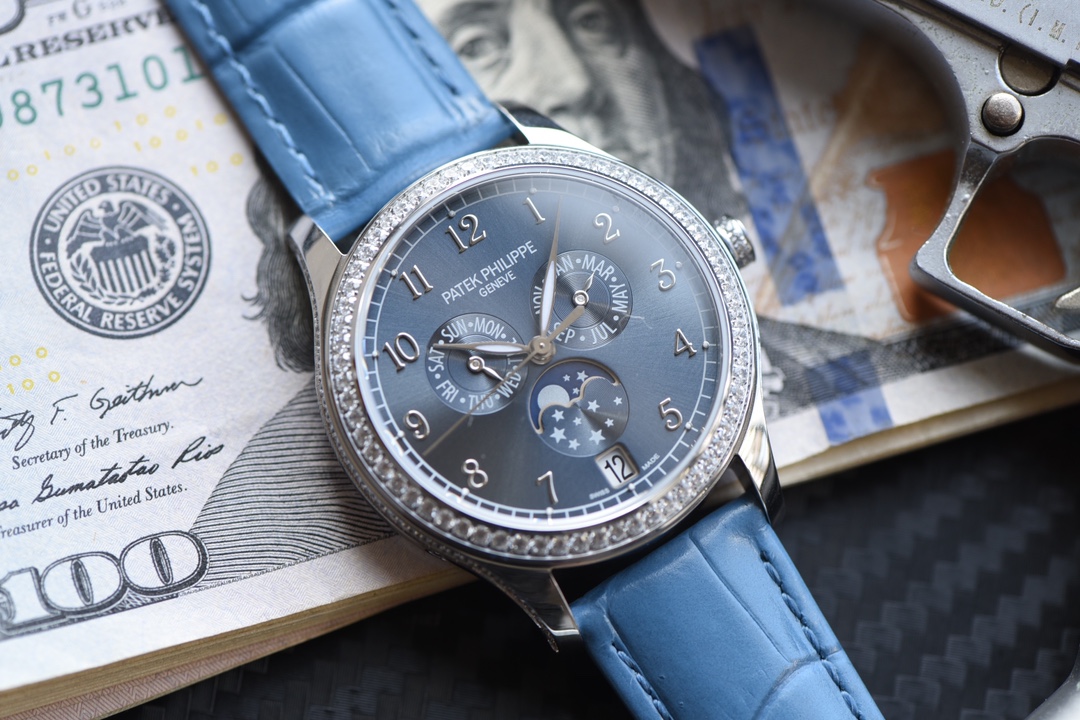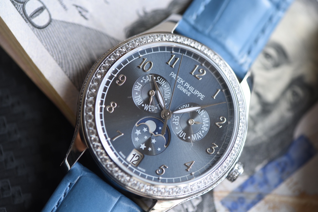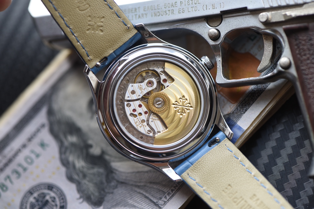 这款手表是AAAAA 1:1 质量 (非常棒). 使用了和原版一模一样的材料. 商标部分也保持了和百达翡丽/Patek Philippe一样. 图片拍摄是实物手表拍摄, 您所收到的实物保证和我们图片一模一样.