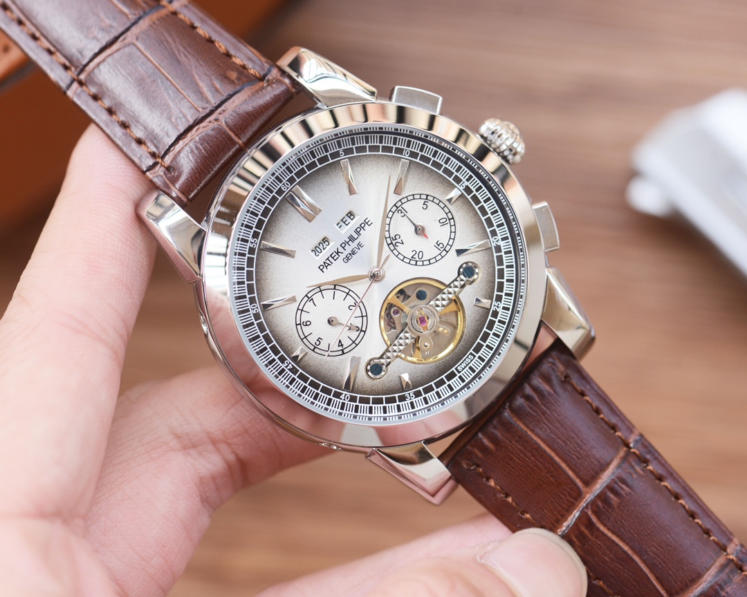 这款手表是AAAAA 1:1 质量 (非常棒). 使用了和原版一模一样的材料. 商标部分也保持了和百达翡丽/Patek Philippe一样. 图片拍摄是实物手表拍摄, 您所收到的实物保证和我们图片一模一样.