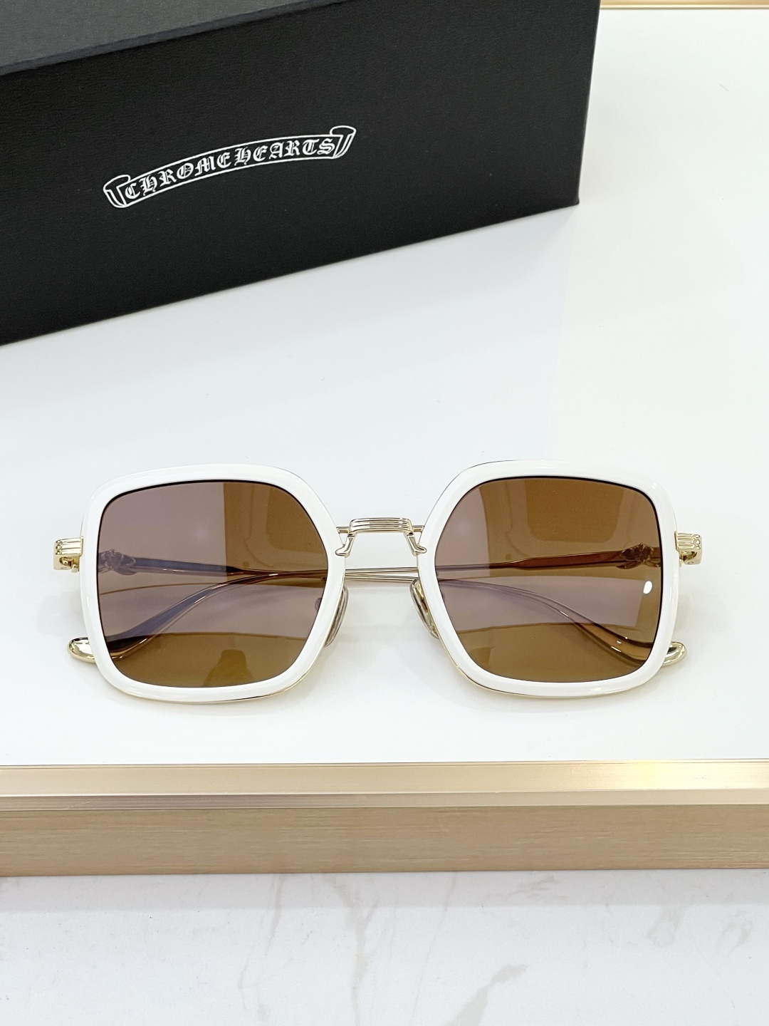 这款太阳眼镜是AAAAA 1:1 质量 (非常棒). 使用了和原版一模一样的材料. 商标部分也保持了和克罗心/Chrome Hearts一样. 图片拍摄是实物太阳眼镜拍摄, 您所收到的实物保证和我们图片一模一样.