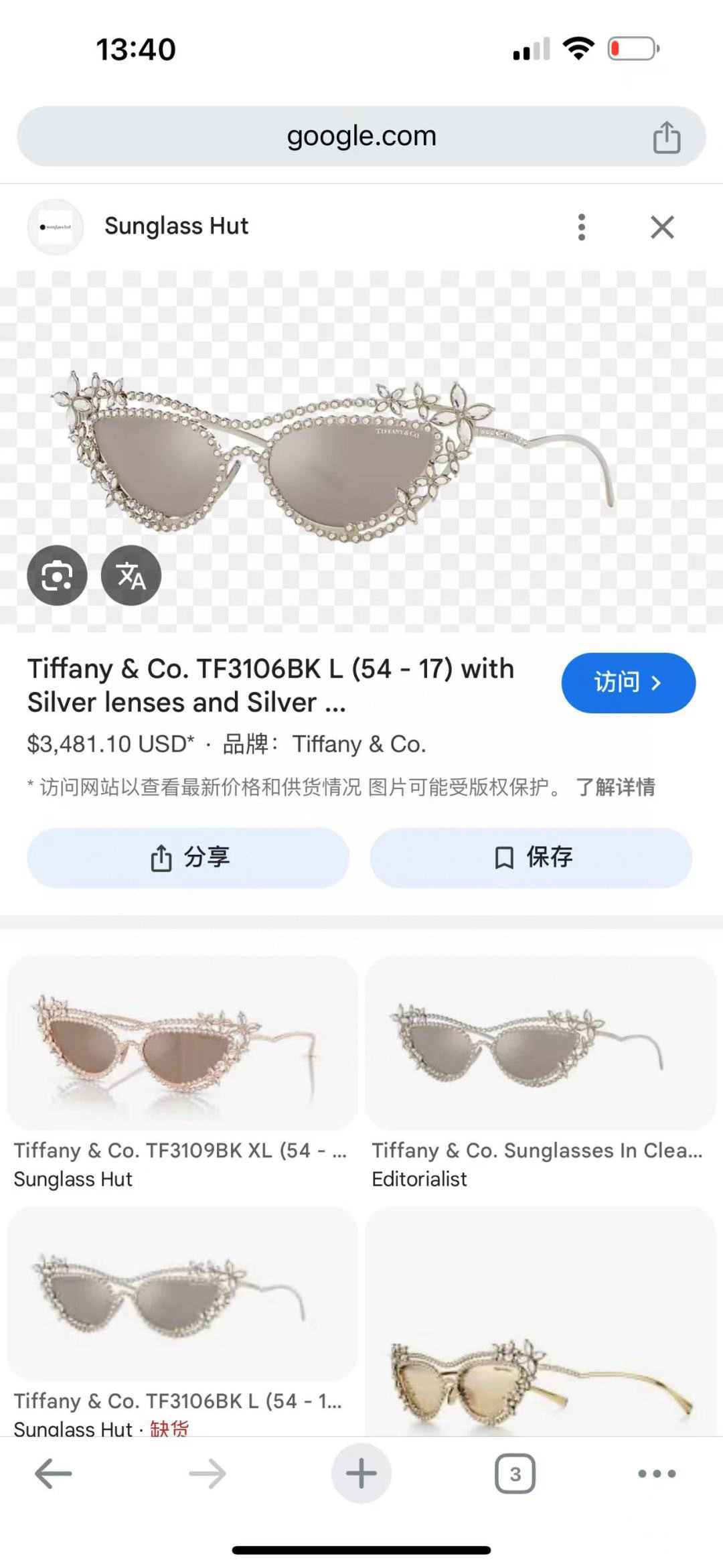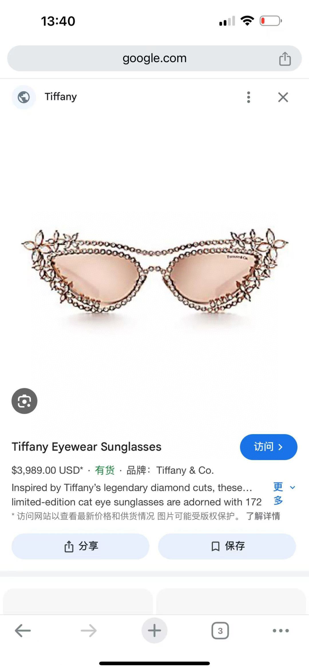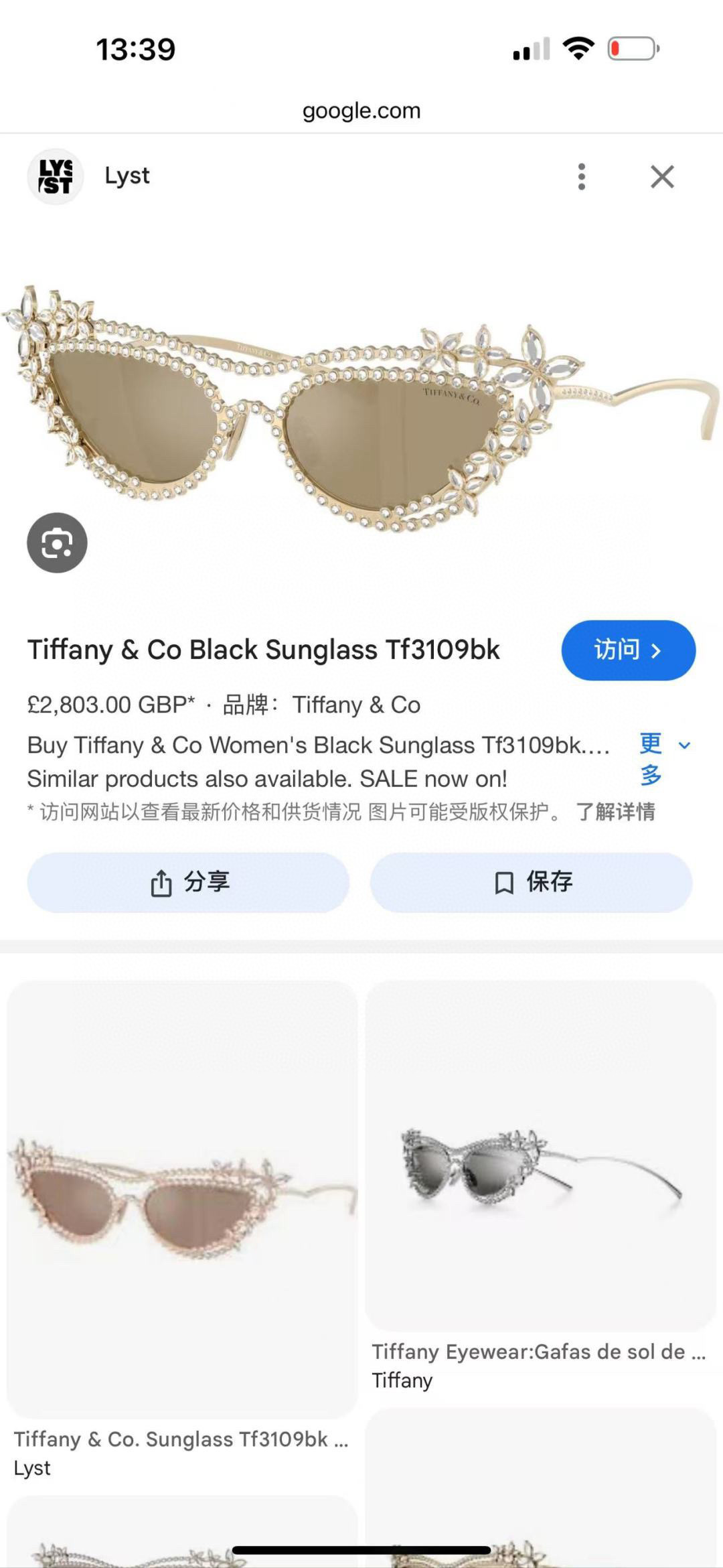 这款太阳眼镜是AAAAA 1:1 质量 (非常棒). 使用了和原版一模一样的材料. 商标部分也保持了和蒂芙尼/Tiffany一样. 图片拍摄是实物太阳眼镜拍摄, 您所收到的实物保证和我们图片一模一样.
