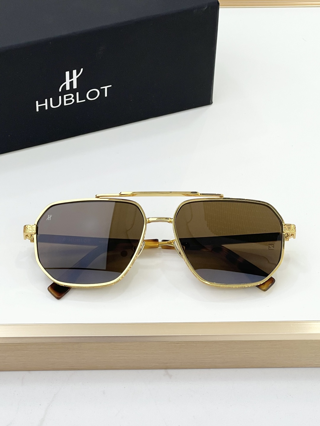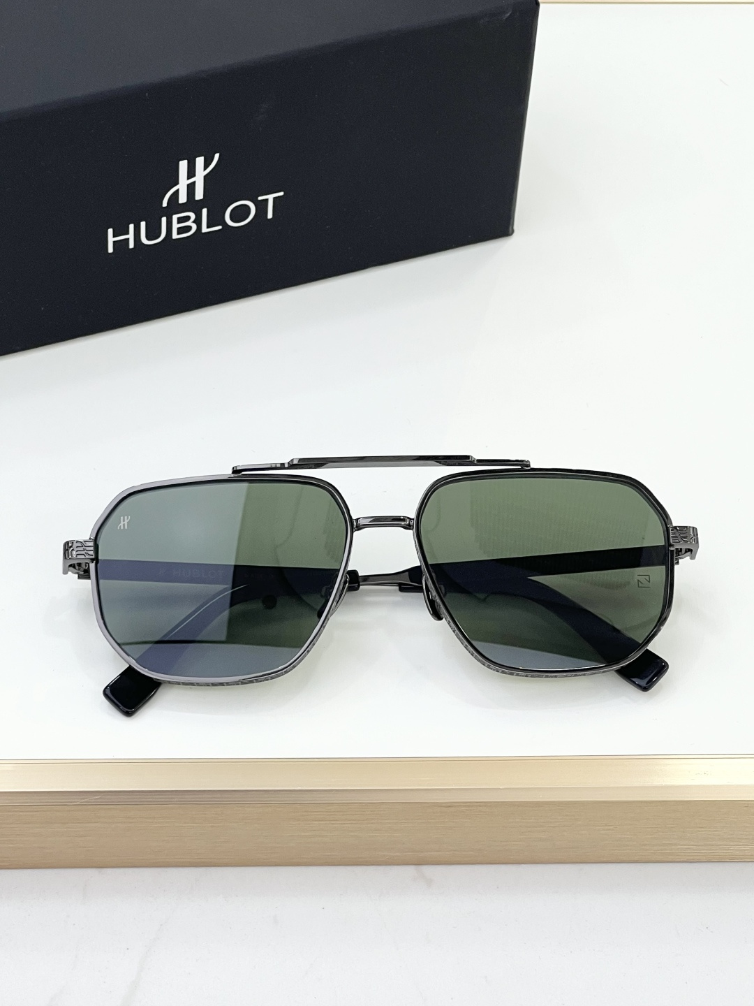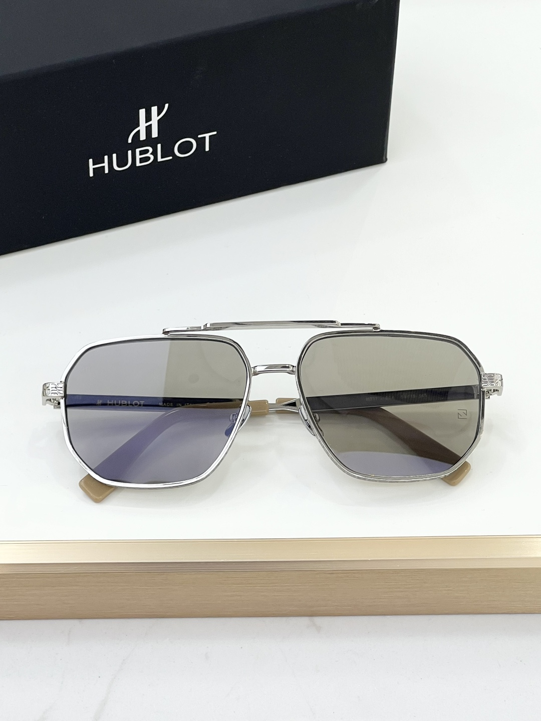 这款太阳眼镜是AAAAA 1:1 质量 (非常棒). 使用了和原版一模一样的材料. 商标部分也保持了和Hublot一样. 图片拍摄是实物太阳眼镜拍摄, 您所收到的实物保证和我们图片一模一样.