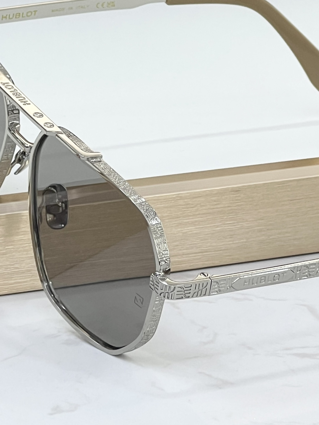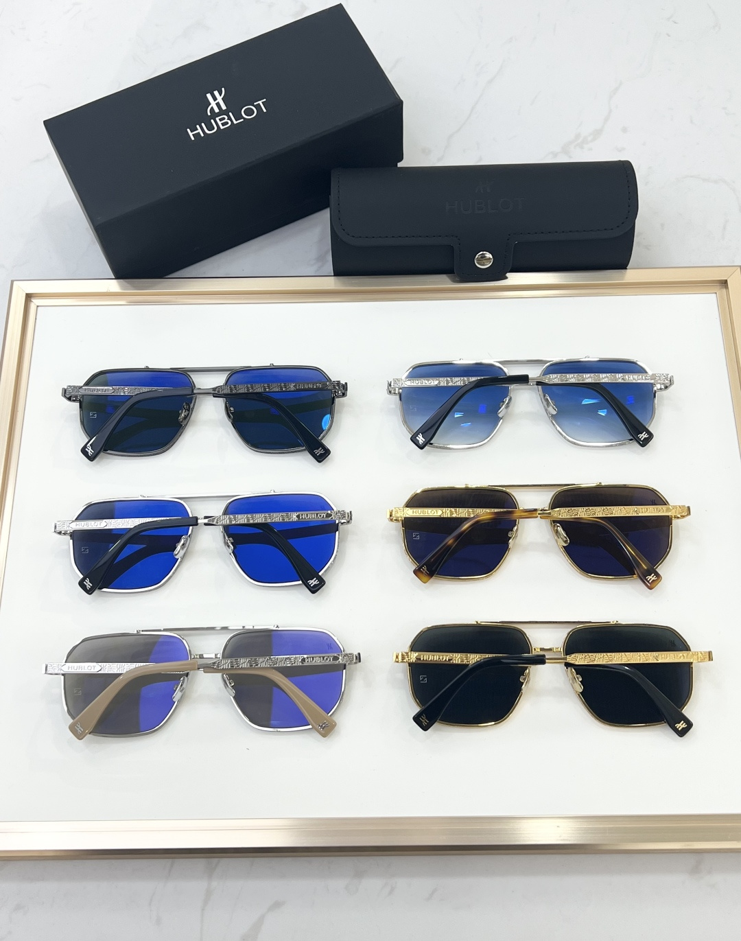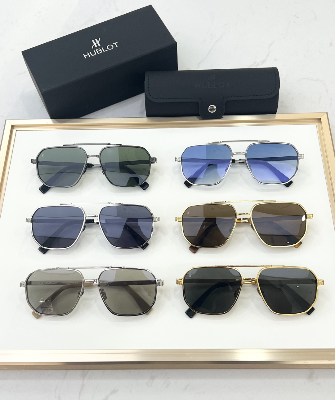 这款太阳眼镜是AAAAA 1:1 质量 (非常棒). 使用了和原版一模一样的材料. 商标部分也保持了和Hublot一样. 图片拍摄是实物太阳眼镜拍摄, 您所收到的实物保证和我们图片一模一样.