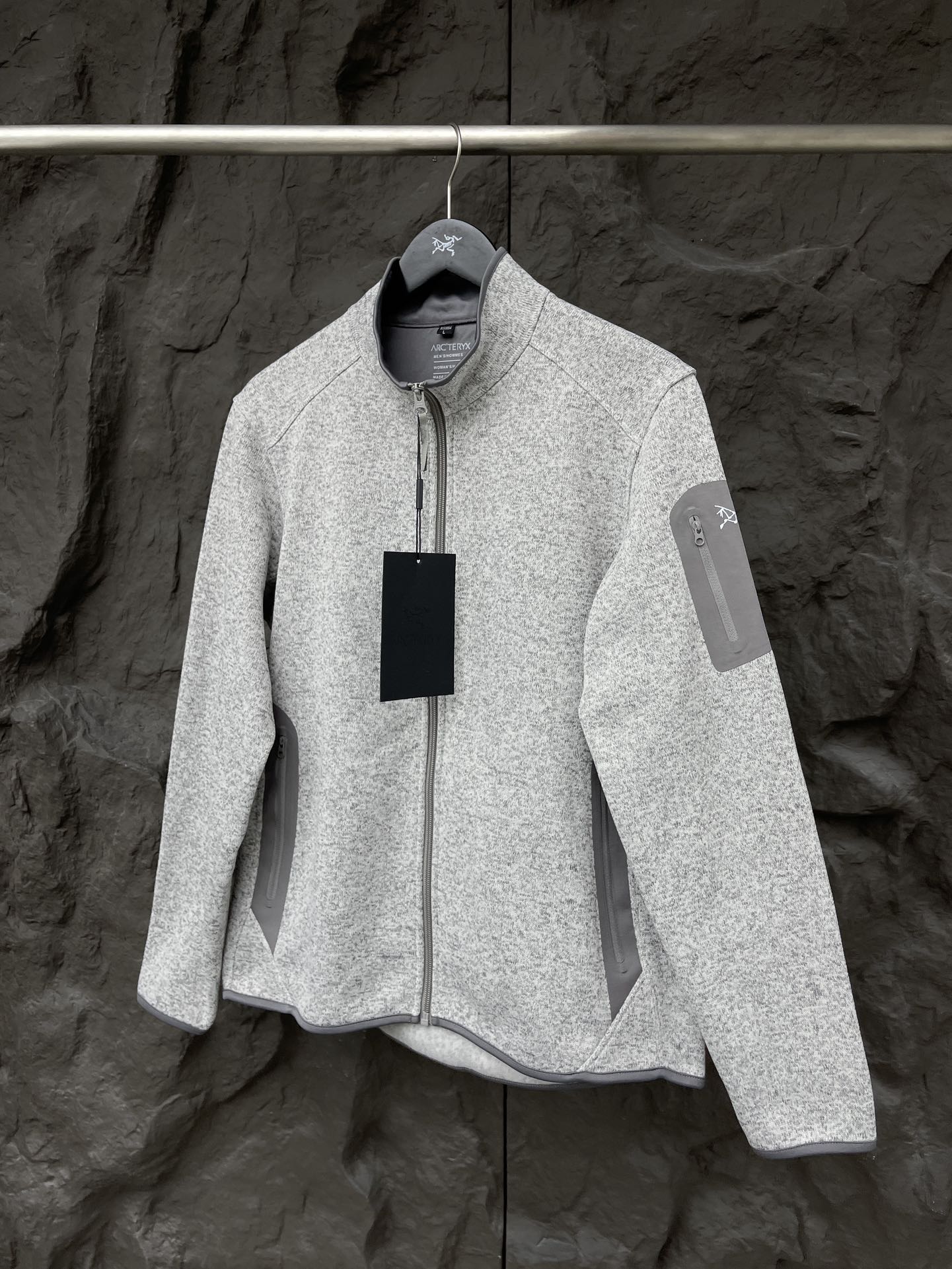 这款衣服是AAAAA 1:1 质量 (非常棒). 使用了和原版一模一样的材料. 商标部分也保持了和ARC'TERYX一样. 图片拍摄是实物衣服拍摄, 您所收到的实物保证和我们图片一模一样.