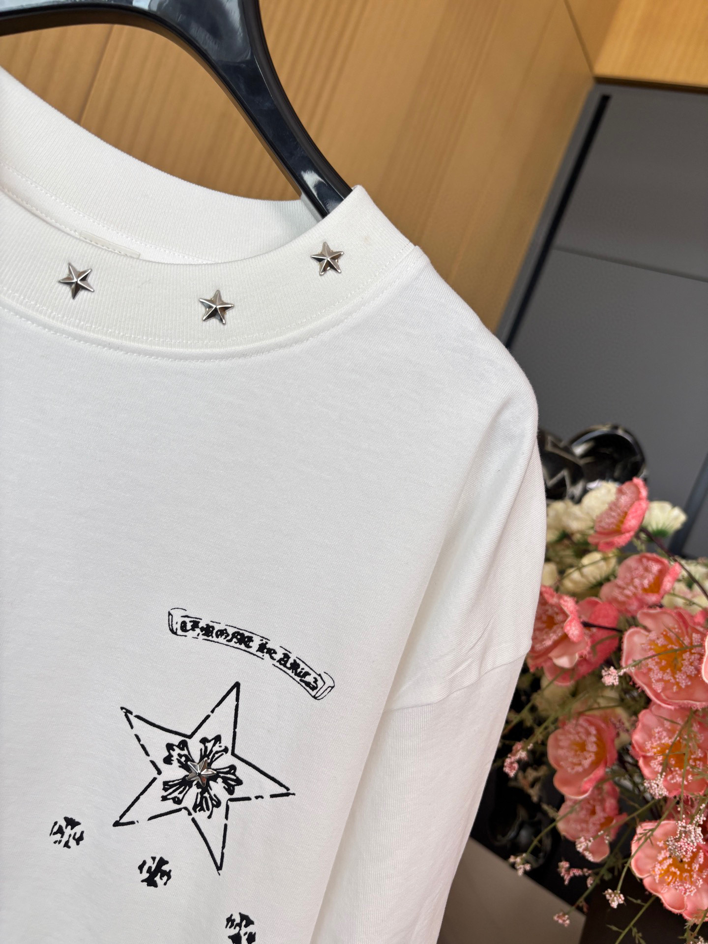 这款衣服是AAAAA 1:1 质量 (非常棒). 使用了和原版一模一样的材料. 商标部分也保持了和克罗心/Chrome Hearts一样. 图片拍摄是实物衣服拍摄, 您所收到的实物保证和我们图片一模一样.