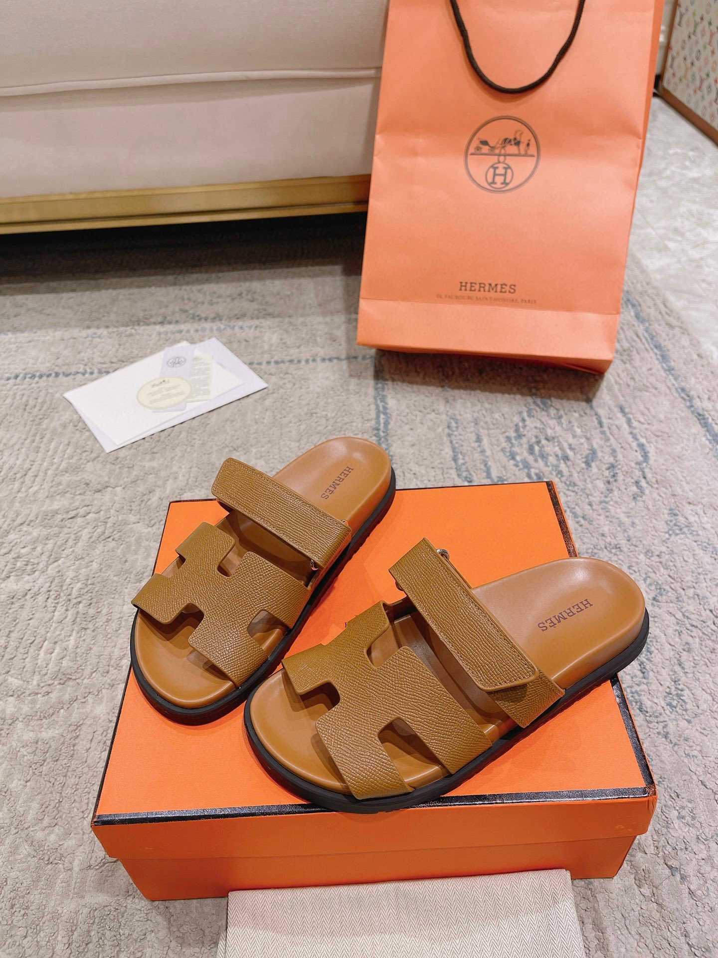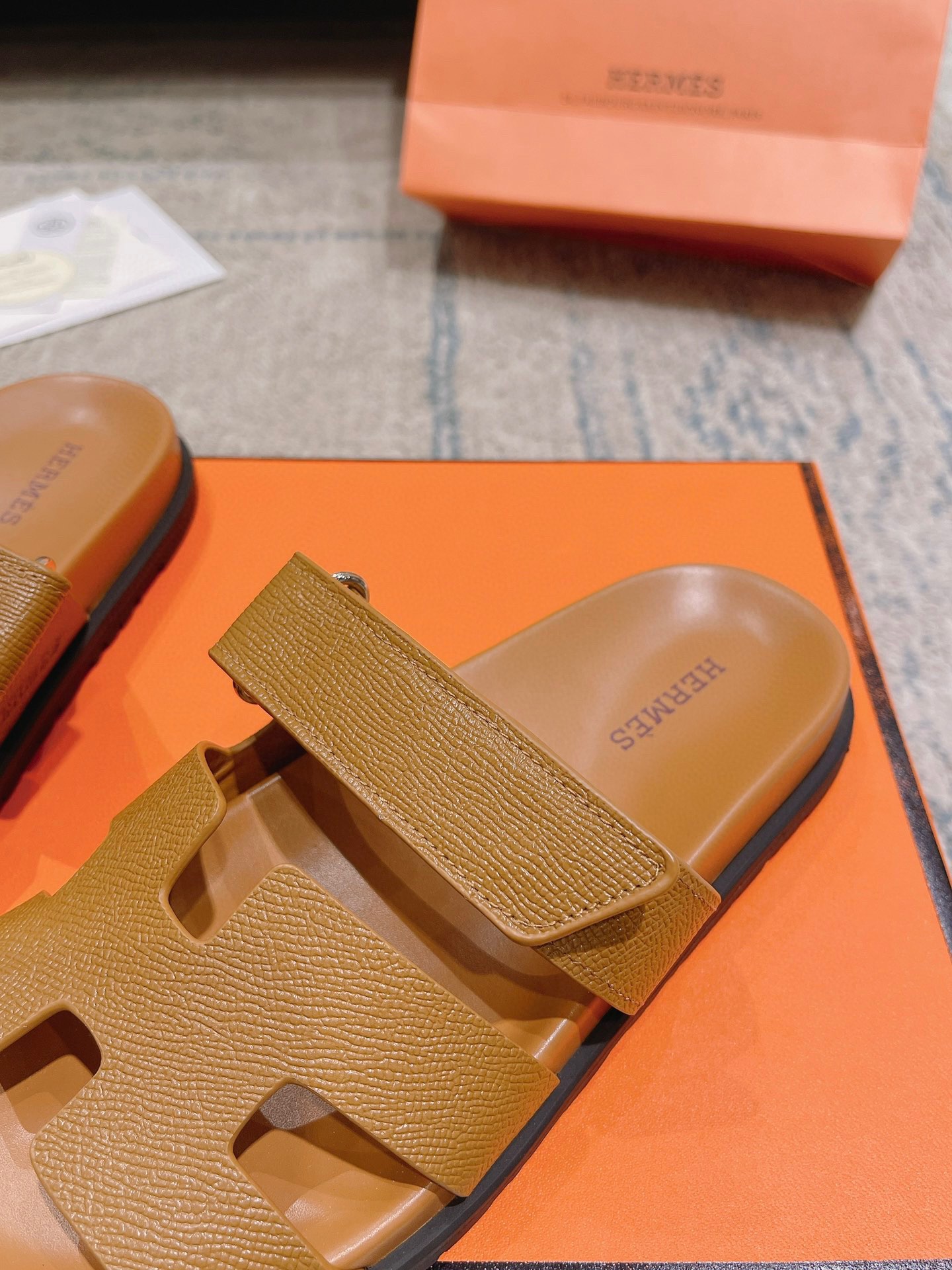 这款鞋子是AAAAA 1:1 质量 (非常棒). 使用了和原版一模一样的材料. 商标部分也保持了和爱马仕/Hermes一样. 图片拍摄是实物鞋子拍摄, 您所收到的实物保证和我们图片一模一样.