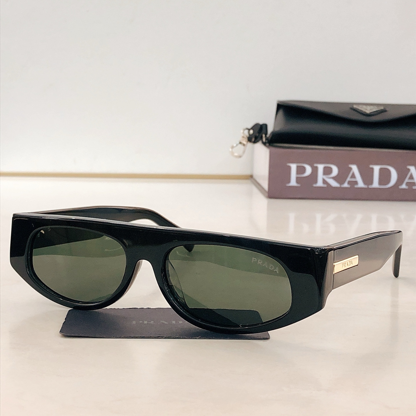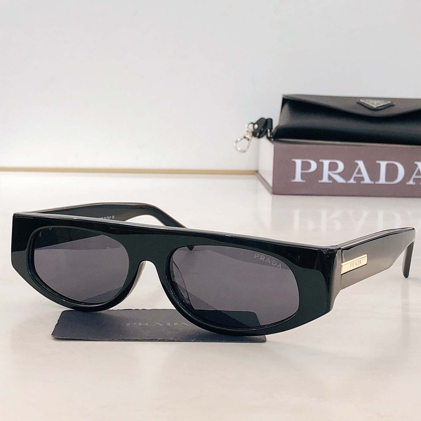 这款太阳眼镜是AAAAA 1:1 质量 (非常棒). 使用了和原版一模一样的材料. 商标部分也保持了和普拉达/Prada一样. 图片拍摄是实物太阳眼镜拍摄, 您所收到的实物保证和我们图片一模一样.