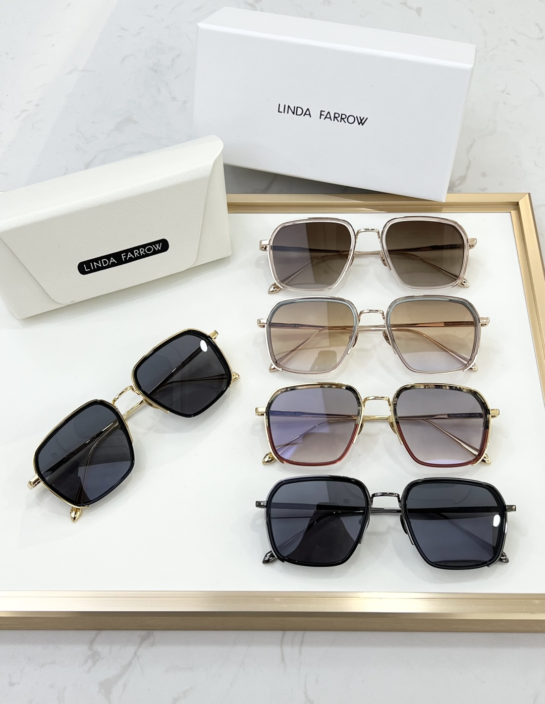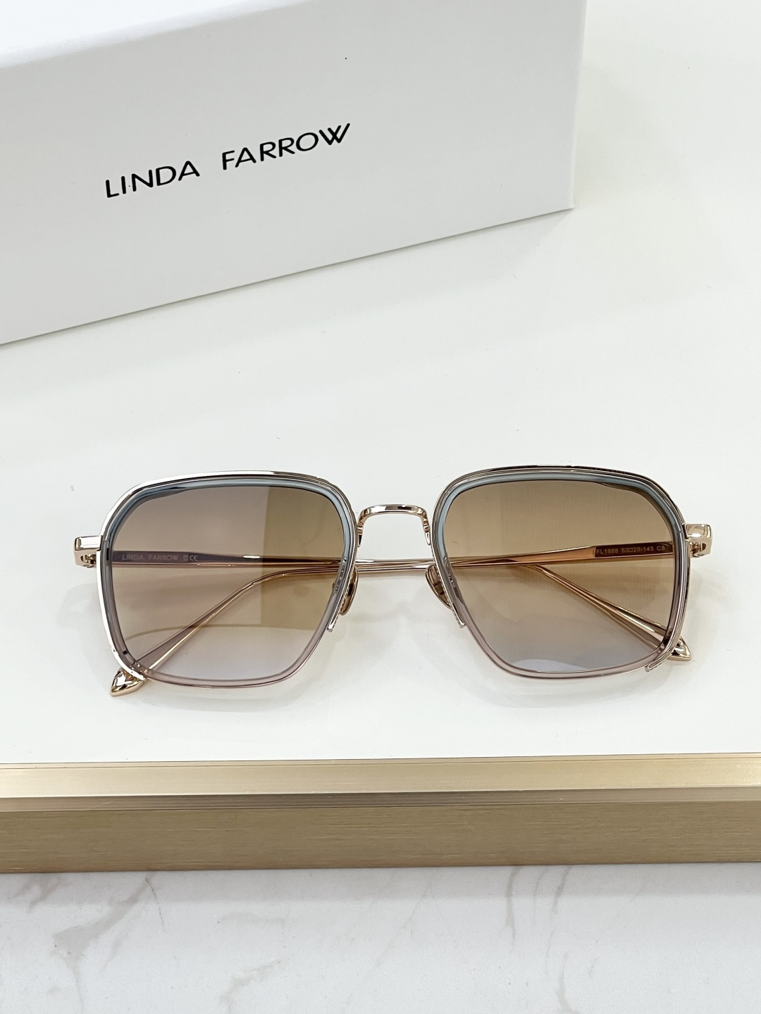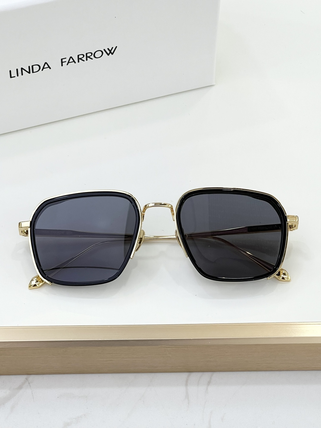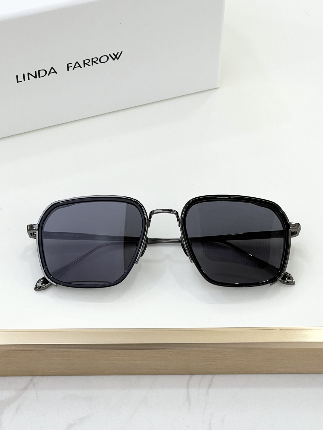 这款太阳眼镜是AAAAA 1:1 质量 (非常棒). 使用了和原版一模一样的材料. 商标部分也保持了和琳达·法罗/Linda Farrow一样. 图片拍摄是实物太阳眼镜拍摄, 您所收到的实物保证和我们图片一模一样.