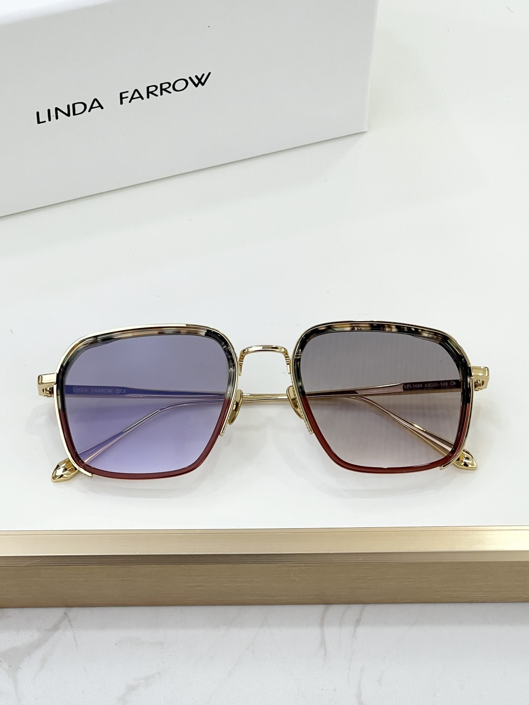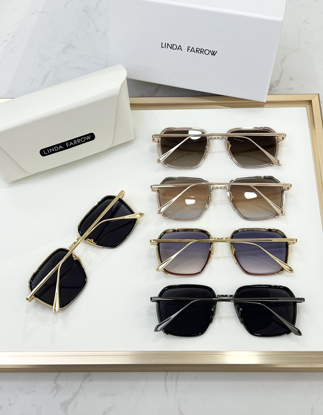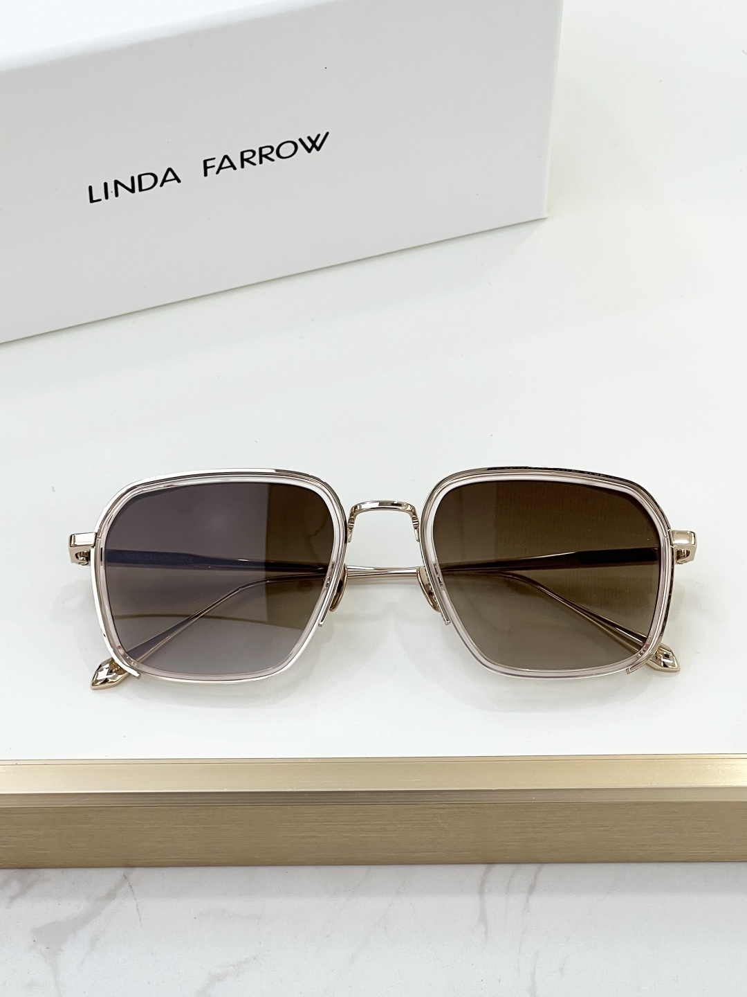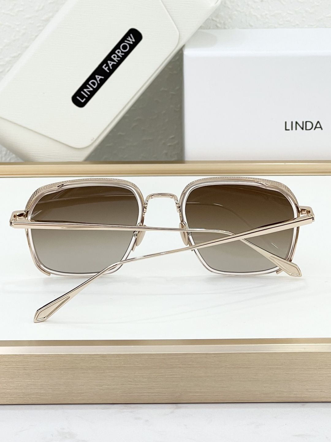 这款太阳眼镜是AAAAA 1:1 质量 (非常棒). 使用了和原版一模一样的材料. 商标部分也保持了和琳达·法罗/Linda Farrow一样. 图片拍摄是实物太阳眼镜拍摄, 您所收到的实物保证和我们图片一模一样.
