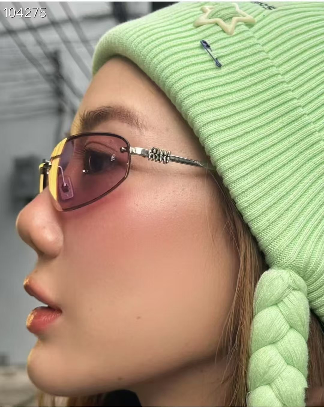 这款太阳眼镜是AAAAA 1:1 质量 (非常棒). 使用了和原版一模一样的材料. 商标部分也保持了和缪缪/Miu Miu一样. 图片拍摄是实物太阳眼镜拍摄, 您所收到的实物保证和我们图片一模一样.