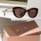 这款太阳眼镜是AAAAA 1:1 质量 (非常棒). 使用了和原版一模一样的材料. 商标部分也保持了和缪缪/Miu Miu一样. 图片拍摄是实物太阳眼镜拍摄, 您所收到的实物保证和我们图片一模一样.