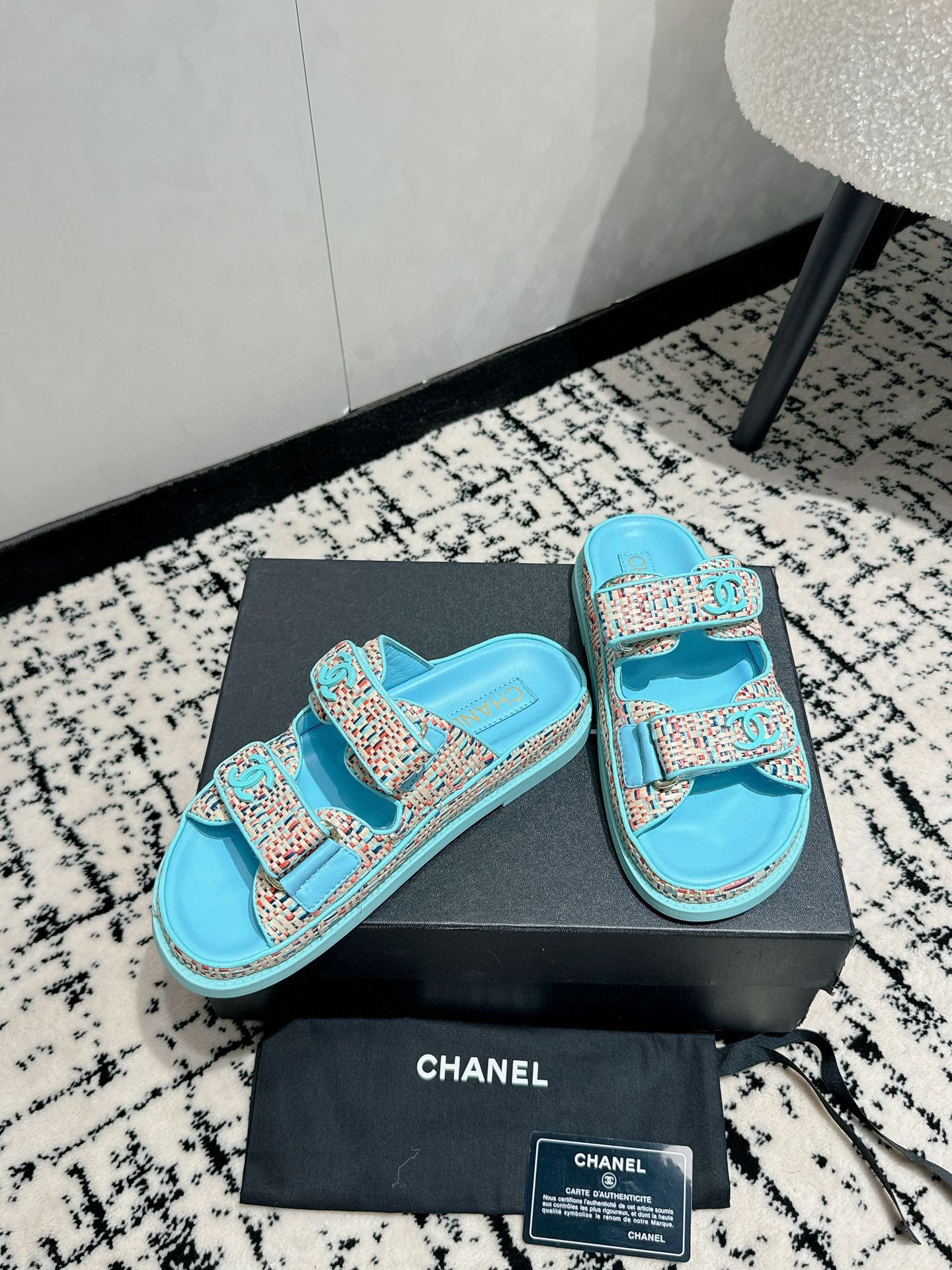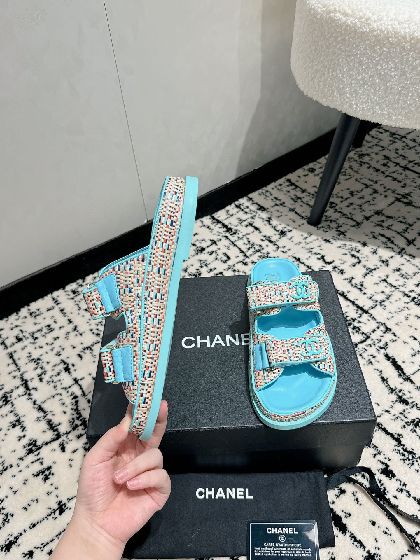 这款鞋子是AAAAA 1:1 质量 (非常棒). 使用了和原版一模一样的材料. 商标部分也保持了和香奈儿/Chanel一样. 图片拍摄是实物鞋子拍摄, 您所收到的实物保证和我们图片一模一样.