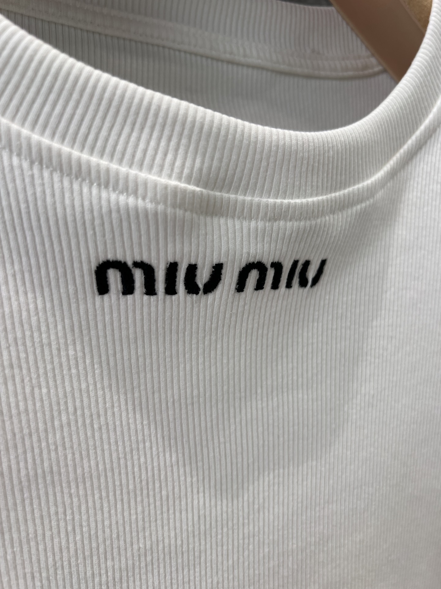 这款衣服是AAAAA 1:1 质量 (非常棒). 使用了和原版一模一样的材料. 商标部分也保持了和缪缪/Miu Miu一样. 图片拍摄是实物衣服拍摄, 您所收到的实物保证和我们图片一模一样.