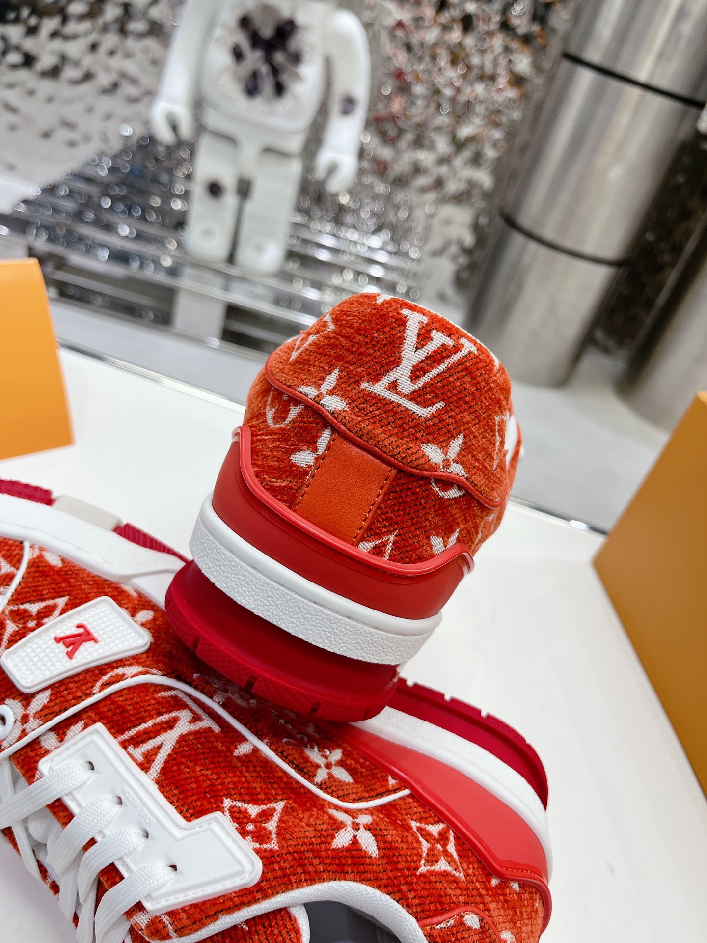 这款鞋子是AAAAA 1:1 质量 (非常棒). 使用了和原版一模一样的材料. 商标部分也保持了和路易威登/Louis Vuitton一样. 图片拍摄是实物鞋子拍摄, 您所收到的实物保证和我们图片一模一样.