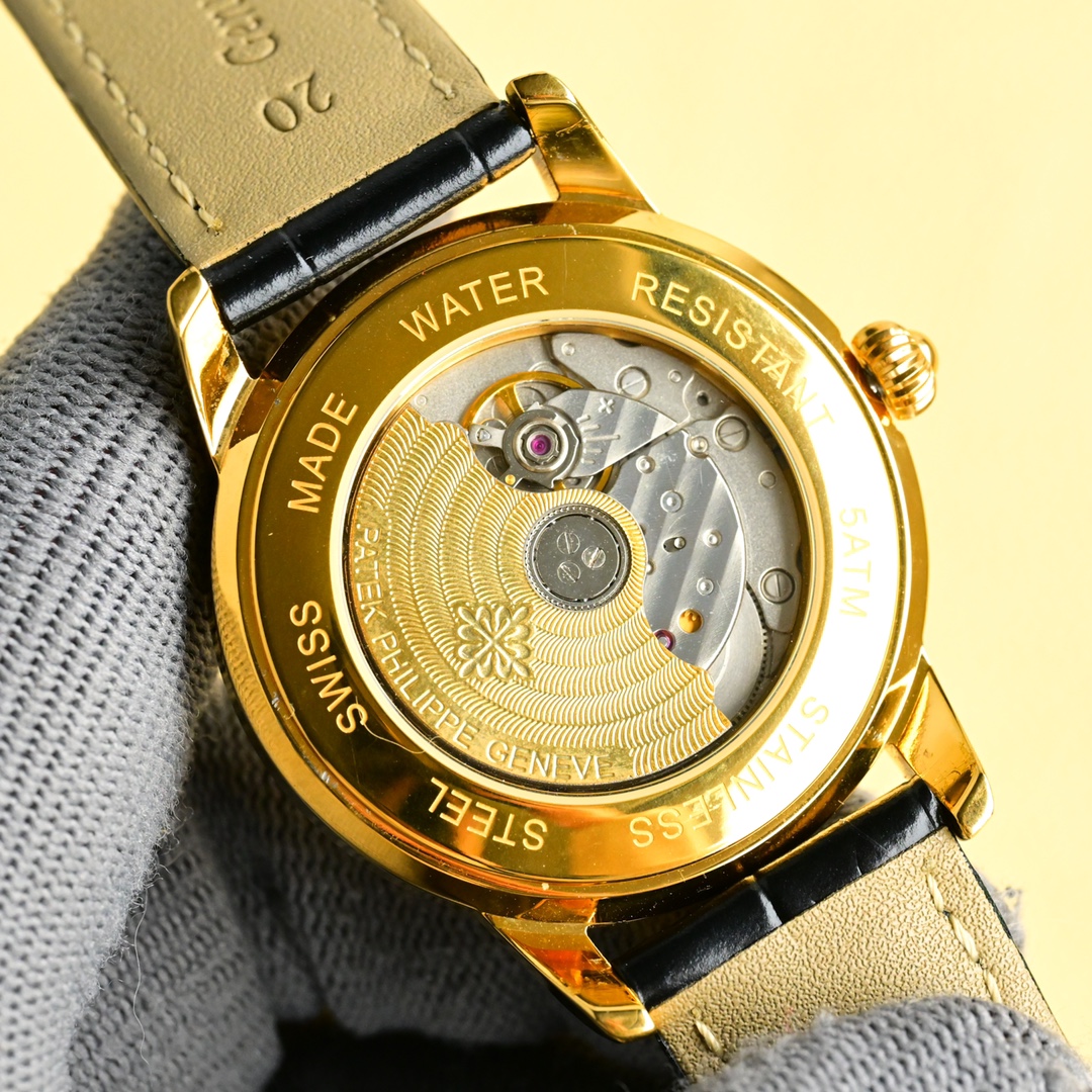 这款手表是AAAAA 1:1 质量 (非常棒). 使用了和原版一模一样的材料. 商标部分也保持了和百达翡丽/Patek Philippe一样. 图片拍摄是实物手表拍摄, 您所收到的实物保证和我们图片一模一样.