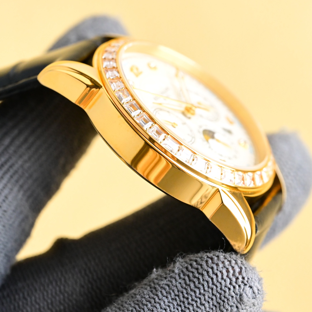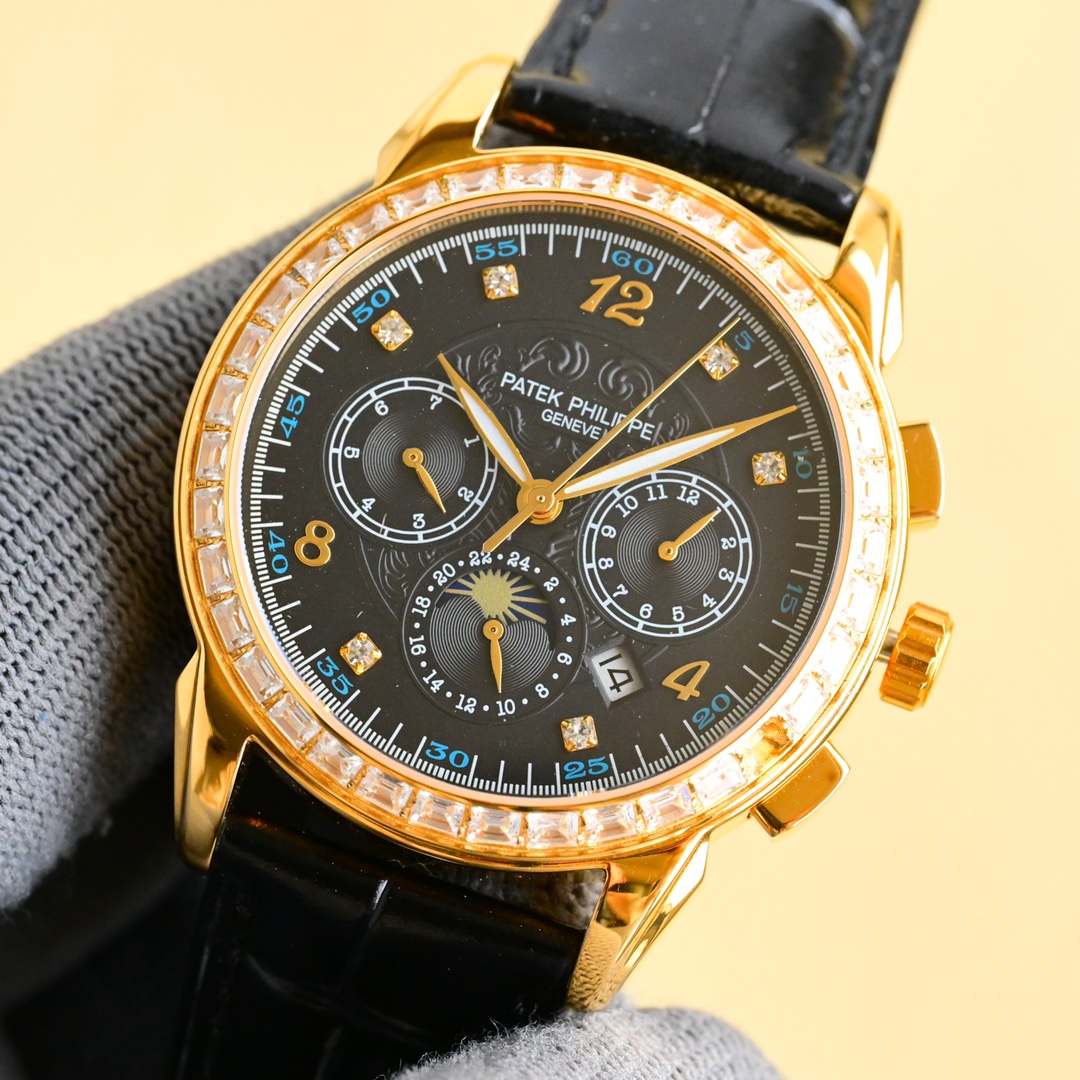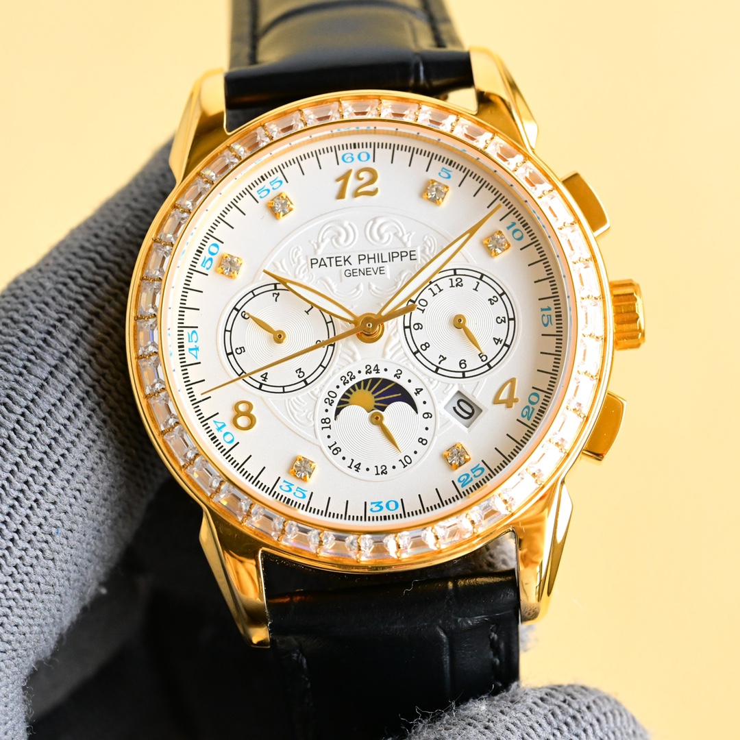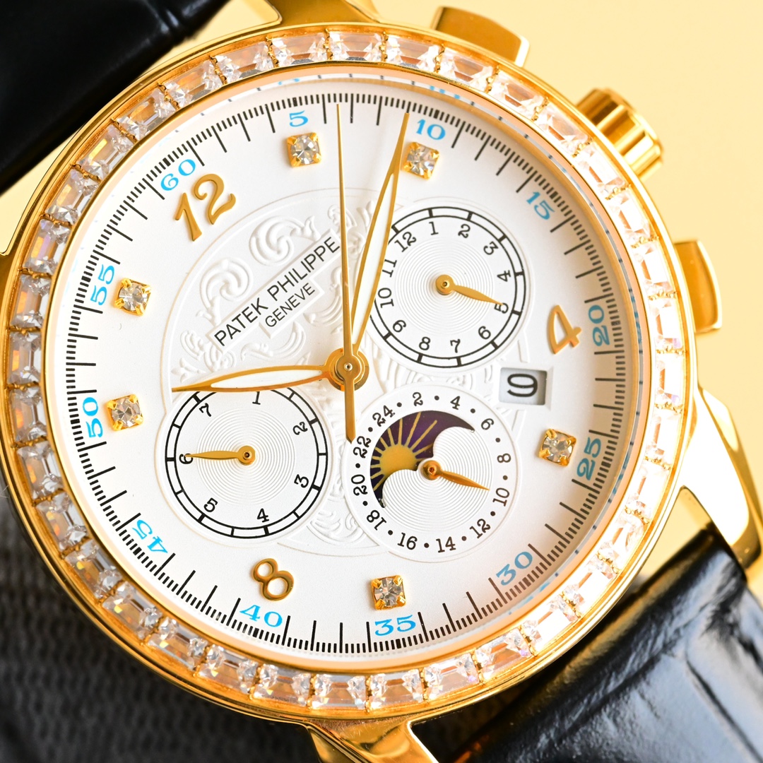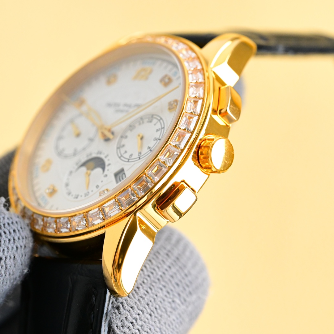 这款手表是AAAAA 1:1 质量 (非常棒). 使用了和原版一模一样的材料. 商标部分也保持了和百达翡丽/Patek Philippe一样. 图片拍摄是实物手表拍摄, 您所收到的实物保证和我们图片一模一样.