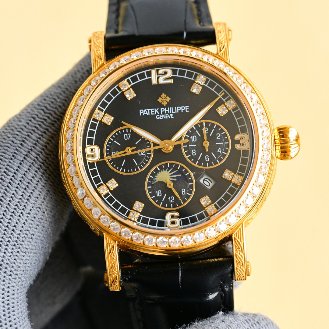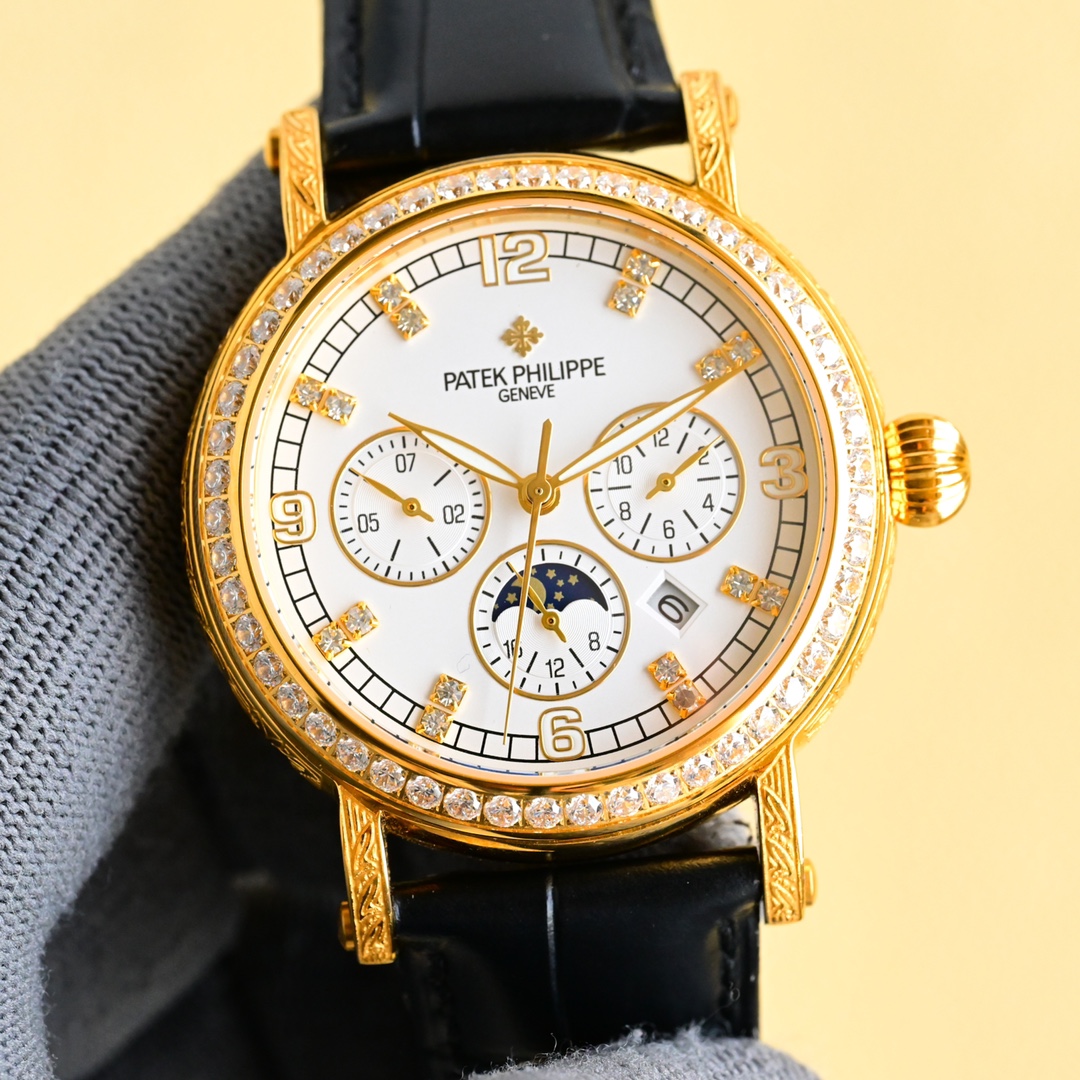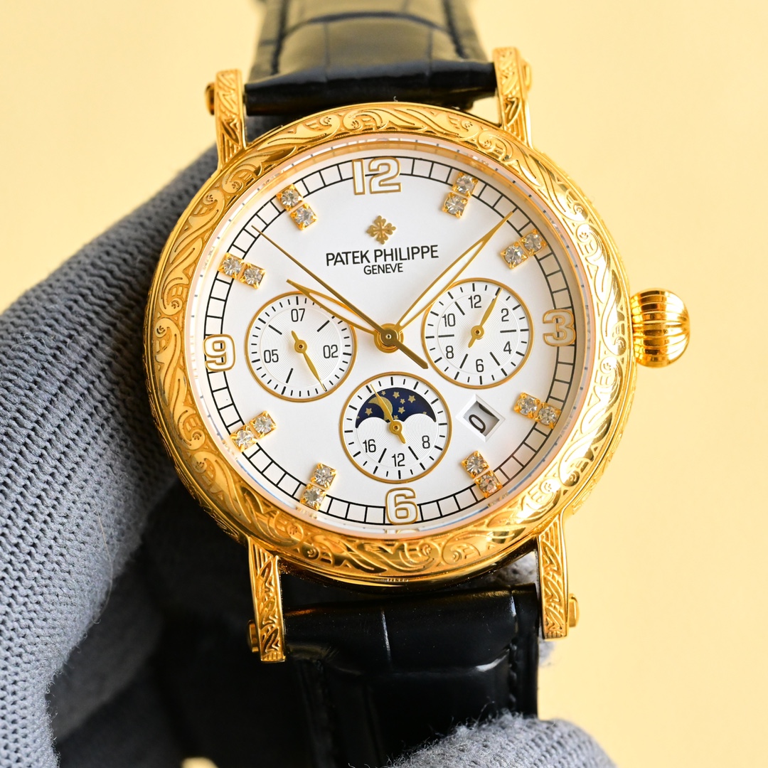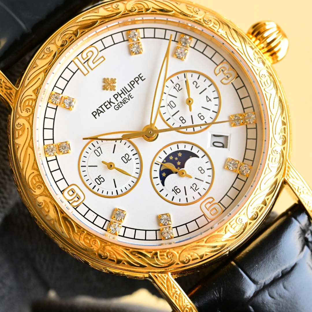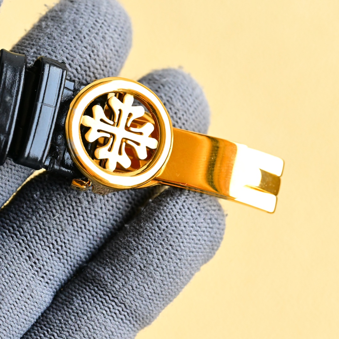 这款手表是AAAAA 1:1 质量 (非常棒). 使用了和原版一模一样的材料. 商标部分也保持了和百达翡丽/Patek Philippe一样. 图片拍摄是实物手表拍摄, 您所收到的实物保证和我们图片一模一样.