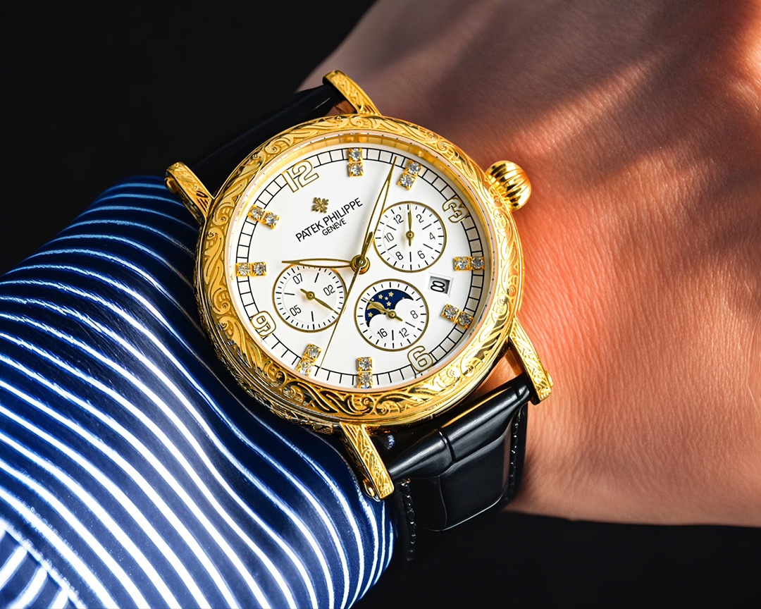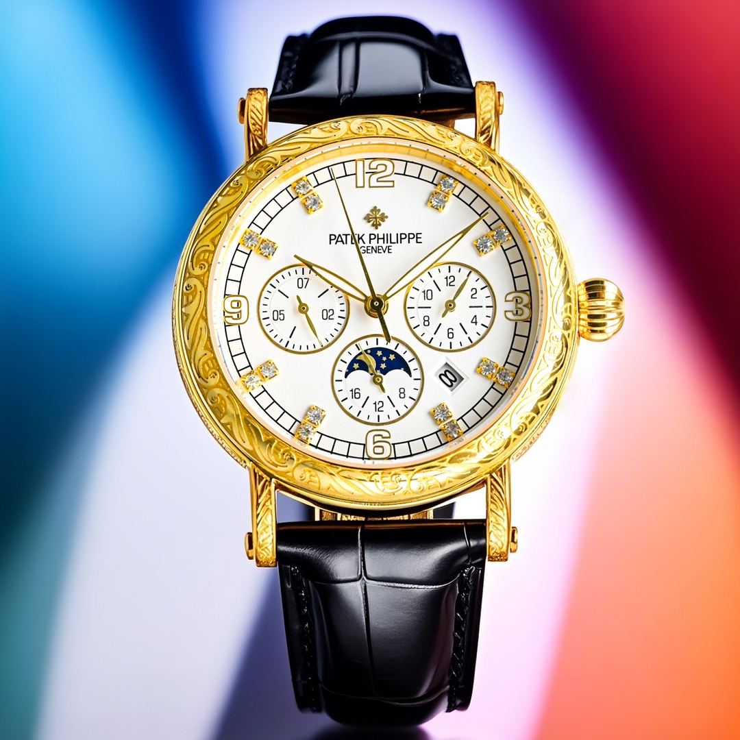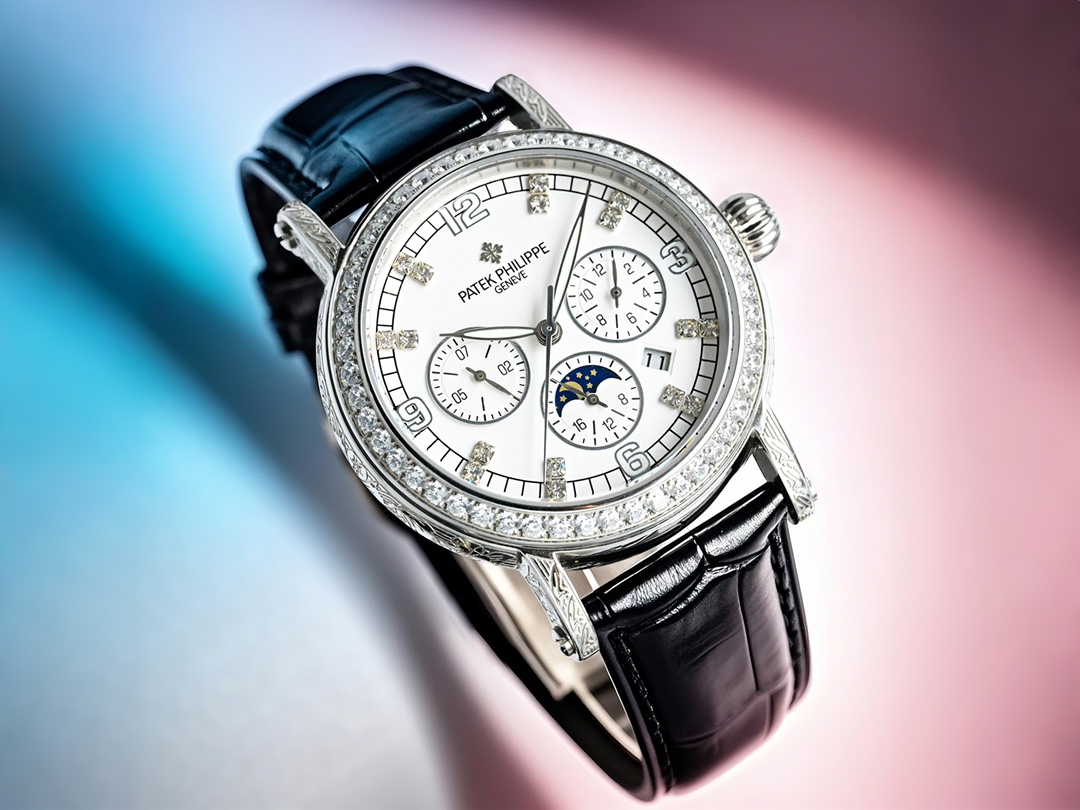 这款手表是AAAAA 1:1 质量 (非常棒). 使用了和原版一模一样的材料. 商标部分也保持了和百达翡丽/Patek Philippe一样. 图片拍摄是实物手表拍摄, 您所收到的实物保证和我们图片一模一样.
