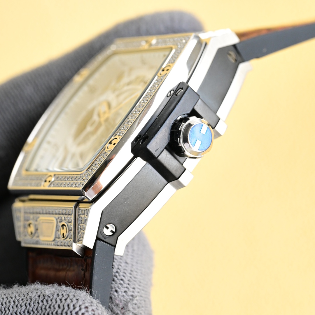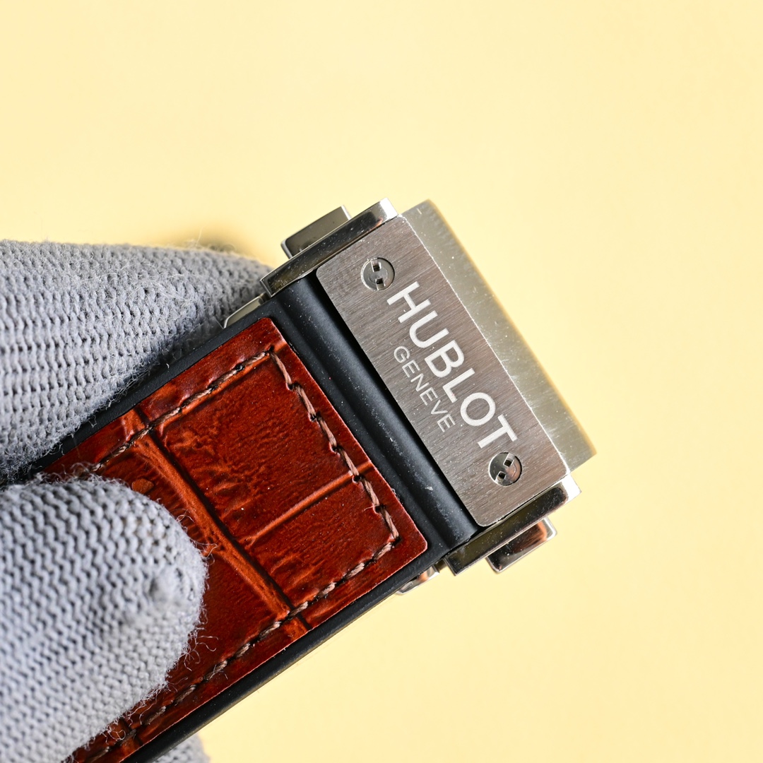 这款手表是AAAAA 1:1 质量 (非常棒). 使用了和原版一模一样的材料. 商标部分也保持了和Hublot一样. 图片拍摄是实物手表拍摄, 您所收到的实物保证和我们图片一模一样.