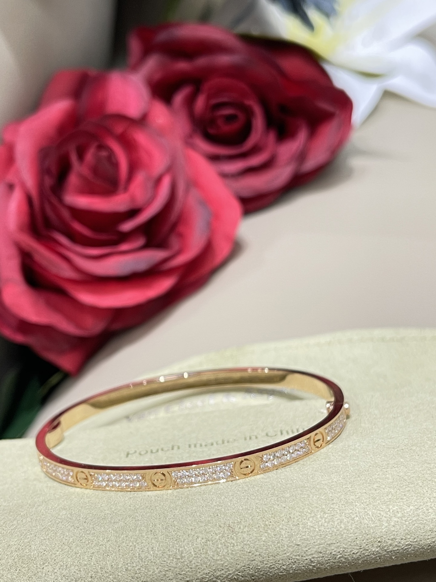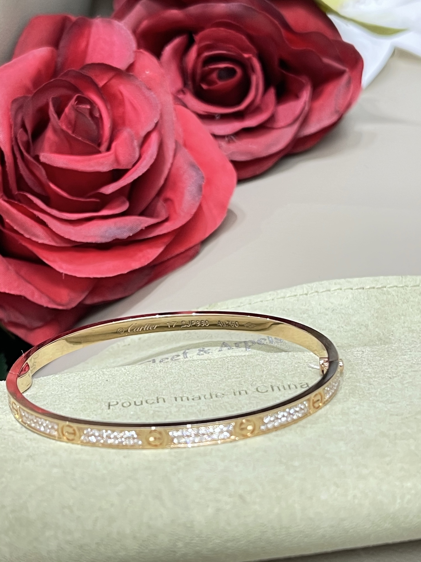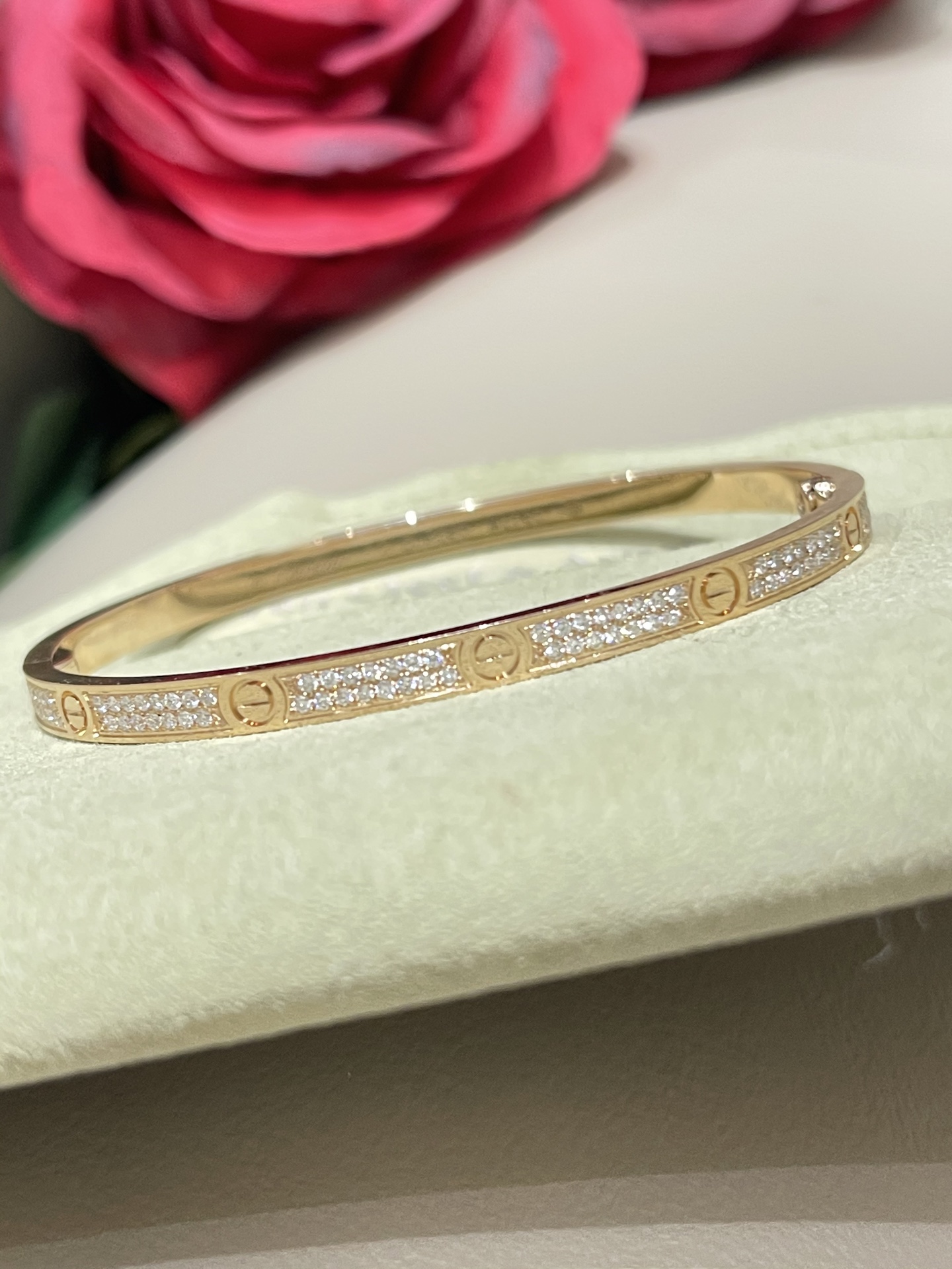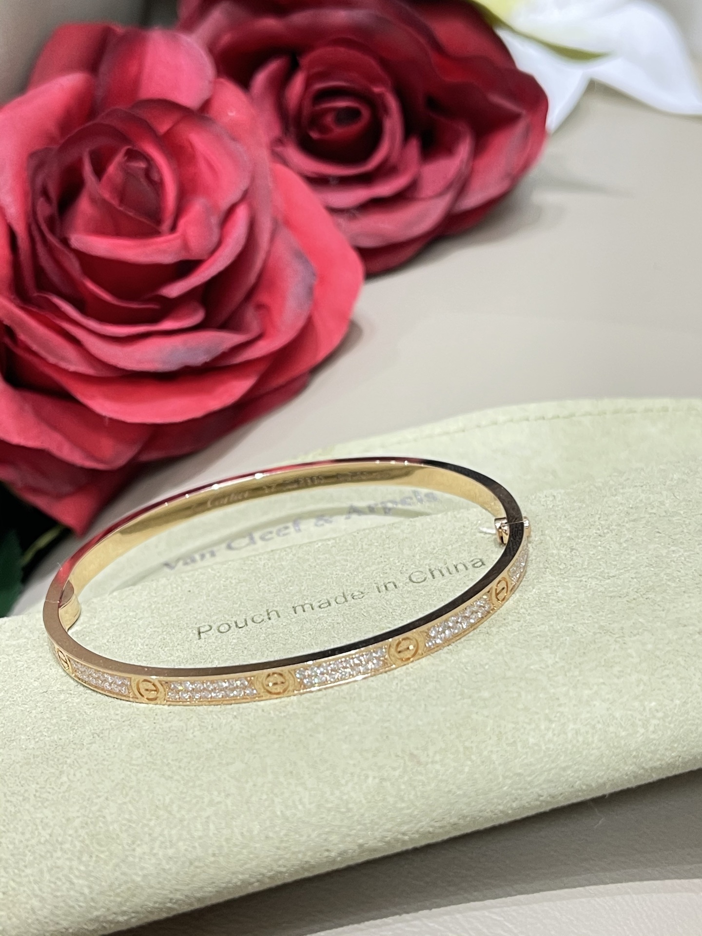 这款首饰是AAAAA 1:1 质量 (非常棒). 使用了和原版一模一样的材料. 商标部分也保持了和卡地亚/Cartier一样. 图片拍摄是实物首饰拍摄, 您所收到的实物保证和我们图片一模一样.