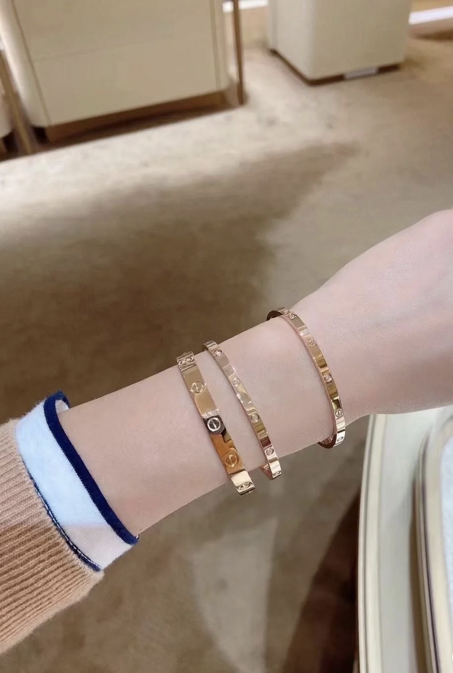 这款首饰是AAAAA 1:1 质量 (非常棒). 使用了和原版一模一样的材料. 商标部分也保持了和一样. 图片拍摄是实物首饰拍摄, 您所收到的实物保证和我们图片一模一样.
