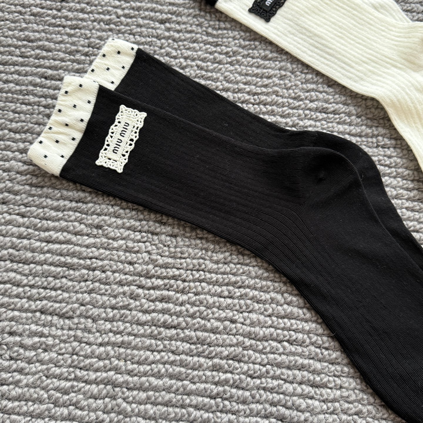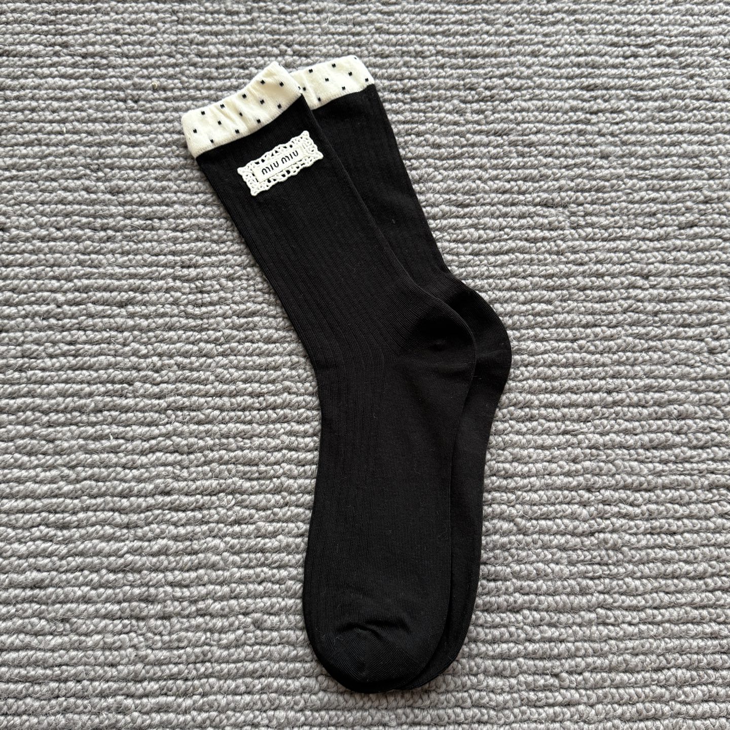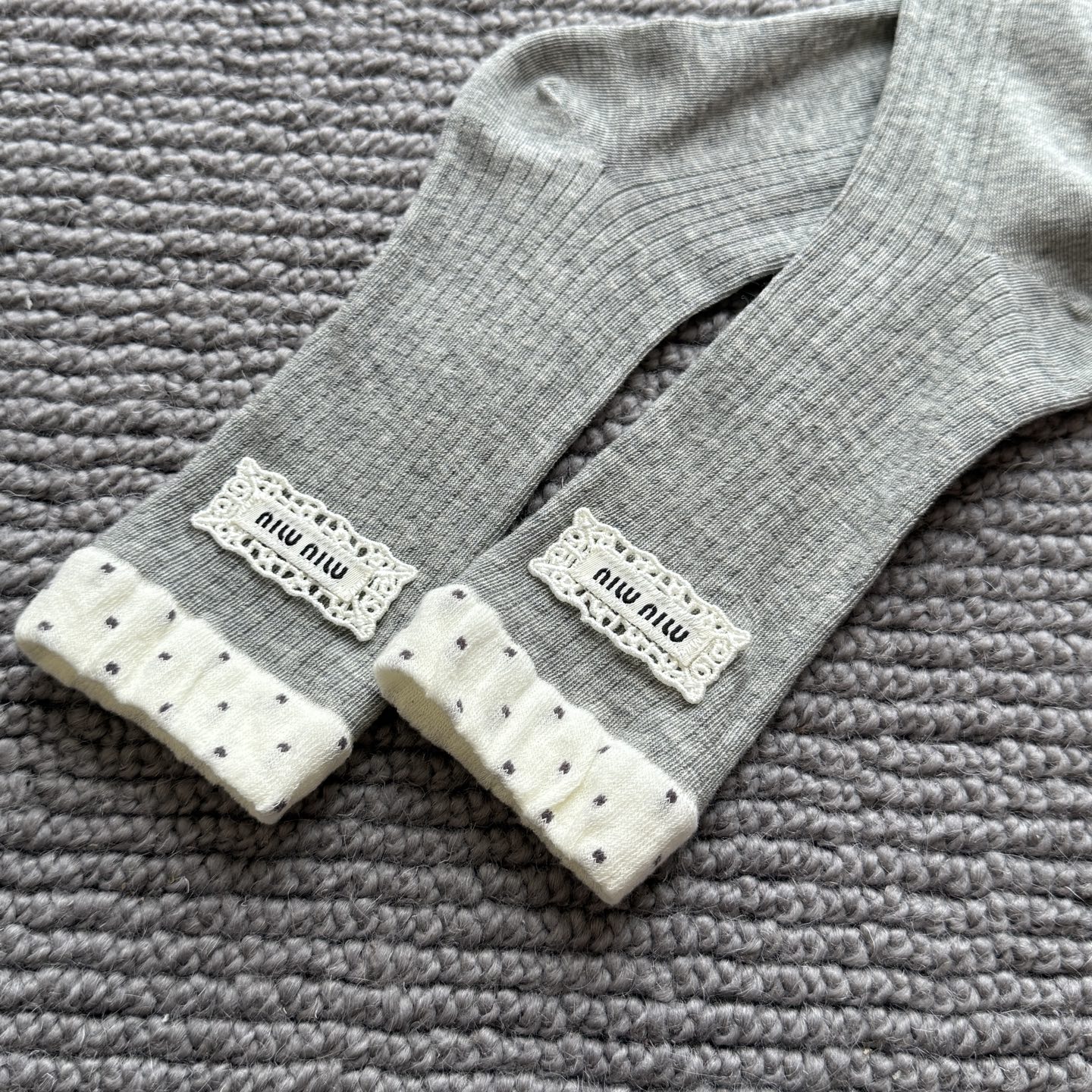 这款sock是AAAAA 1:1 质量 (非常棒). 使用了和原版一模一样的材料. 商标部分也保持了和缪缪/Miu Miu一样. 图片拍摄是实物sock拍摄, 您所收到的实物保证和我们图片一模一样.