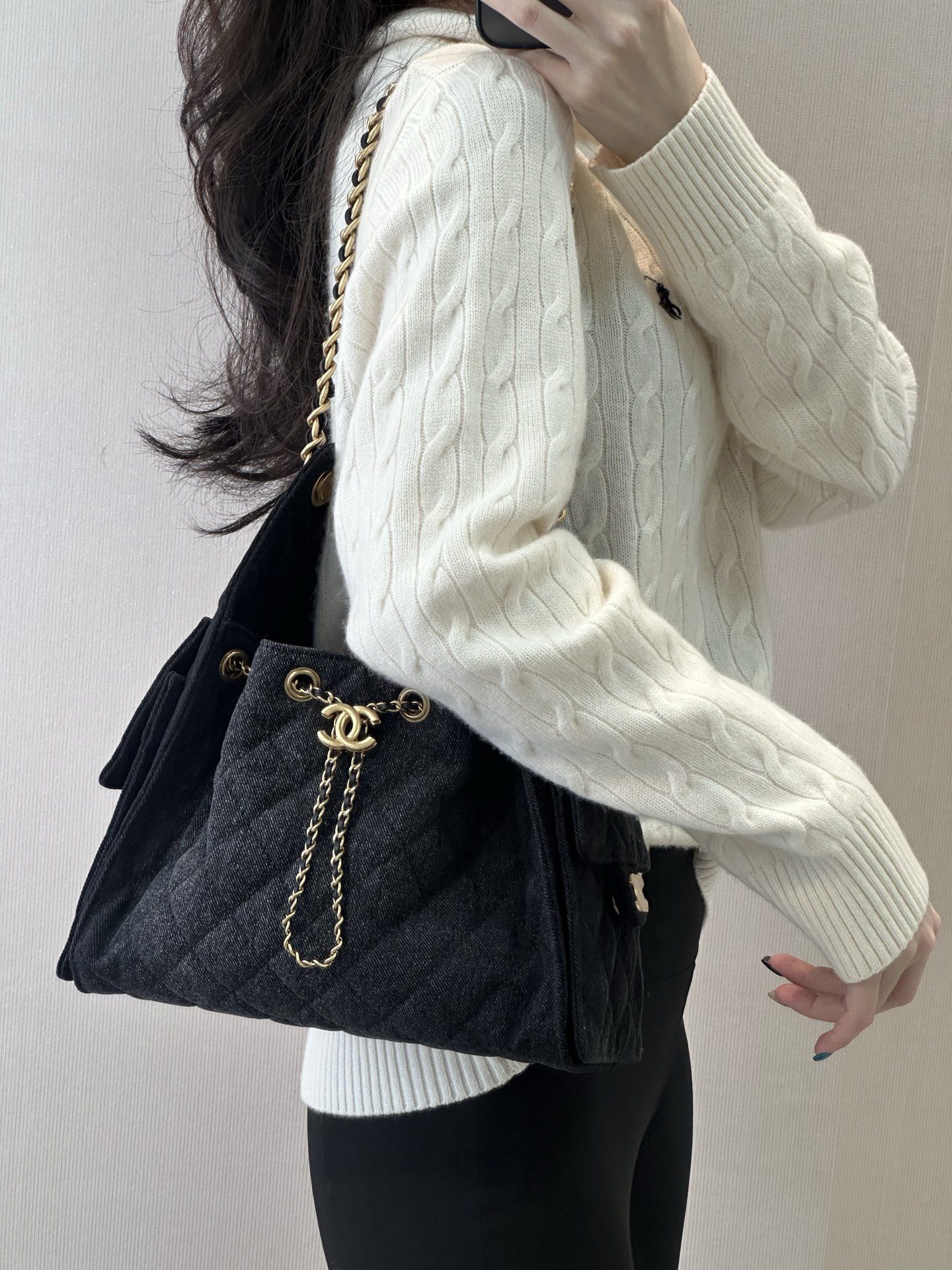 这款包包是AAAAA 1:1 质量 (非常棒). 使用了和原版一模一样的材料. 商标部分也保持了和香奈儿/Chanel一样. 图片拍摄是实物包包拍摄, 您所收到的实物保证和我们图片一模一样.