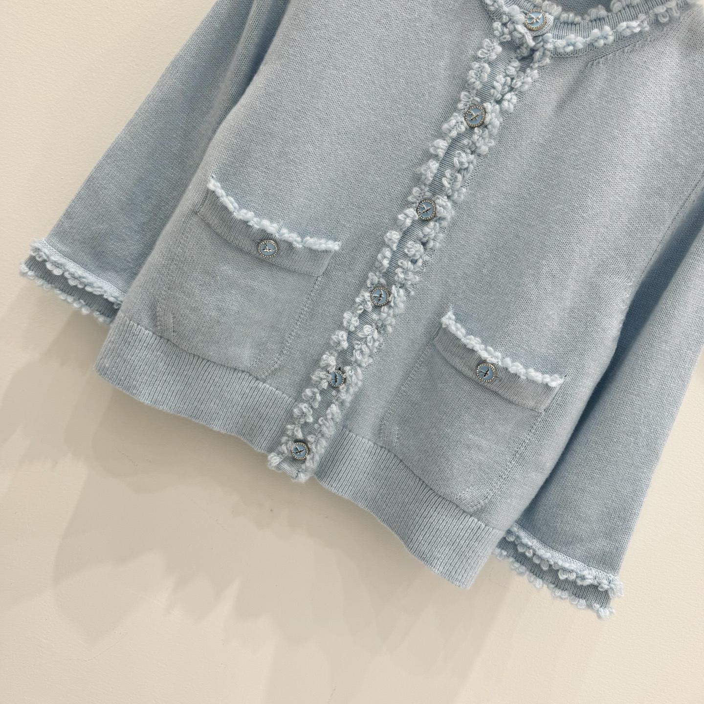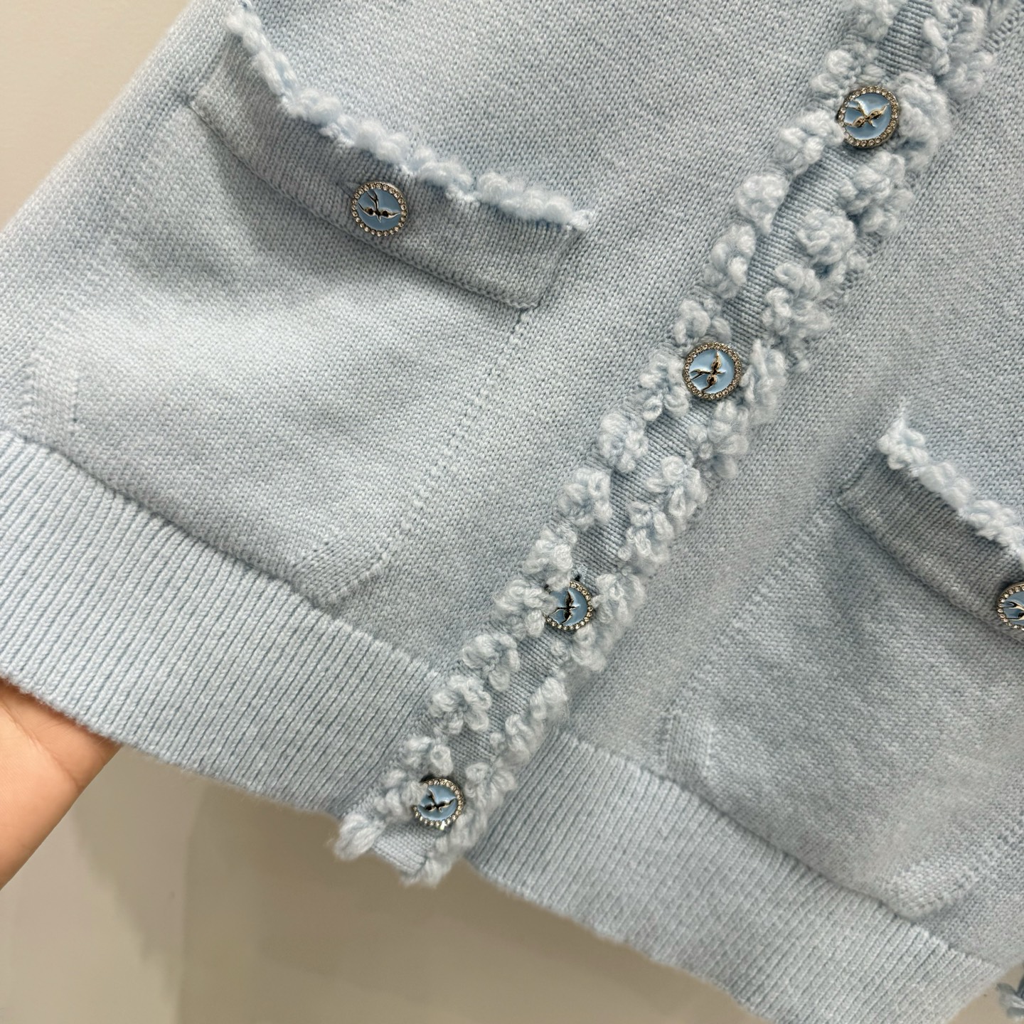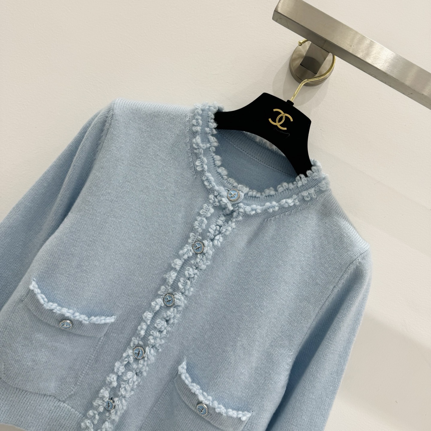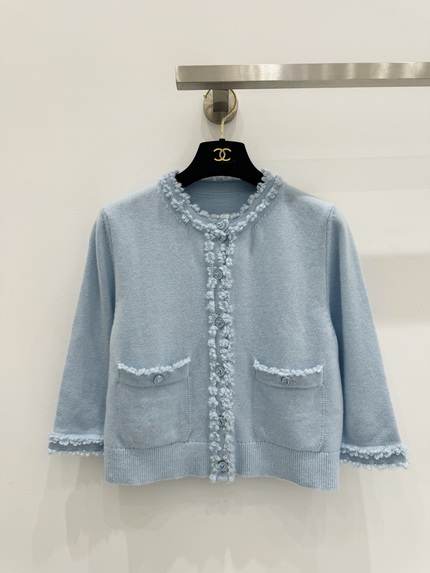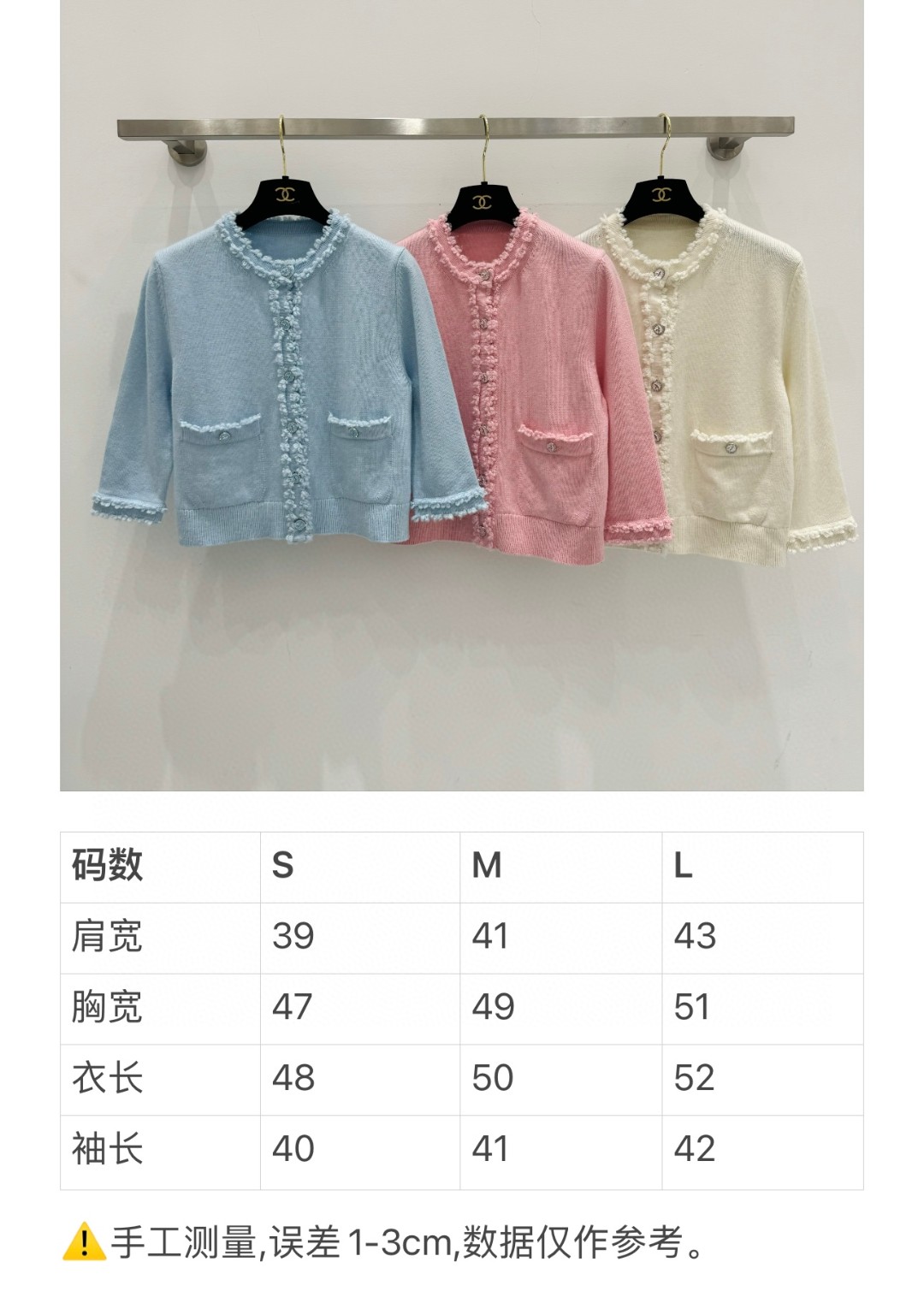 这款衣服是AAAAA 1:1 质量 (非常棒). 使用了和原版一模一样的材料. 商标部分也保持了和香奈儿/Chanel一样. 图片拍摄是实物衣服拍摄, 您所收到的实物保证和我们图片一模一样.