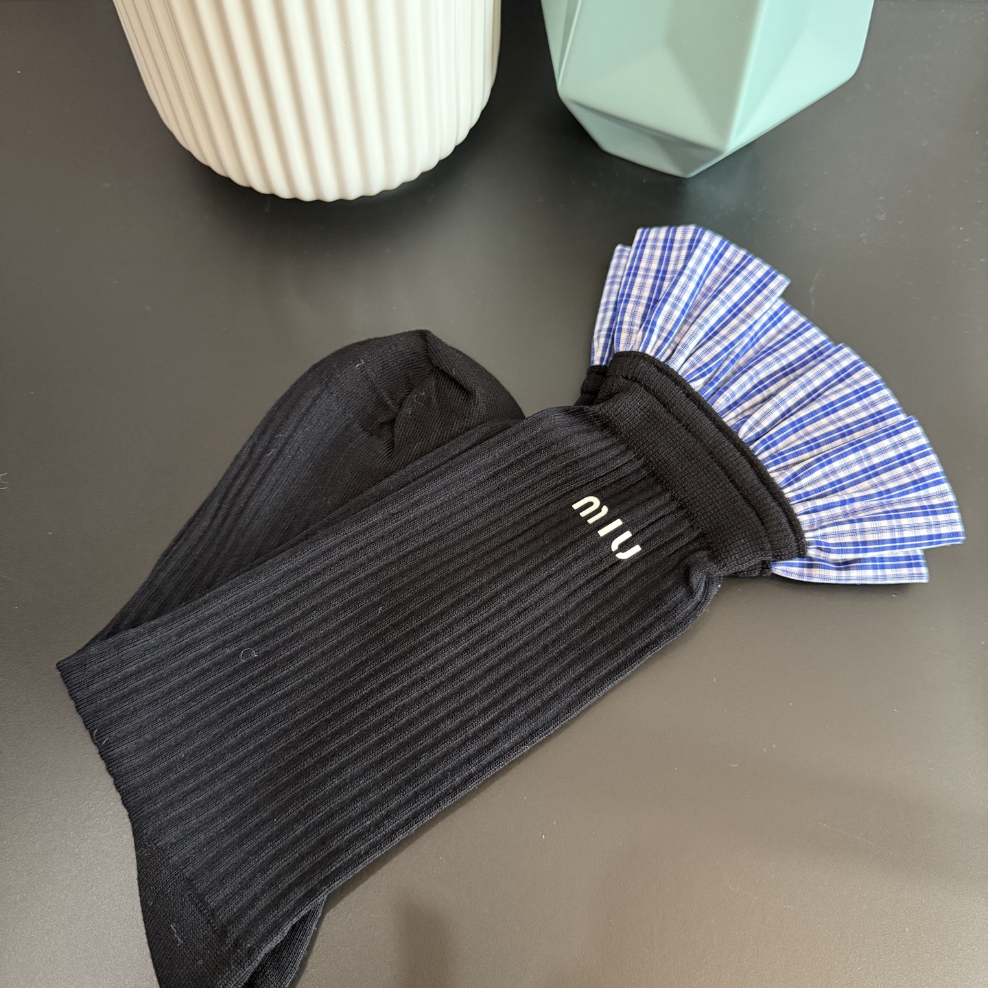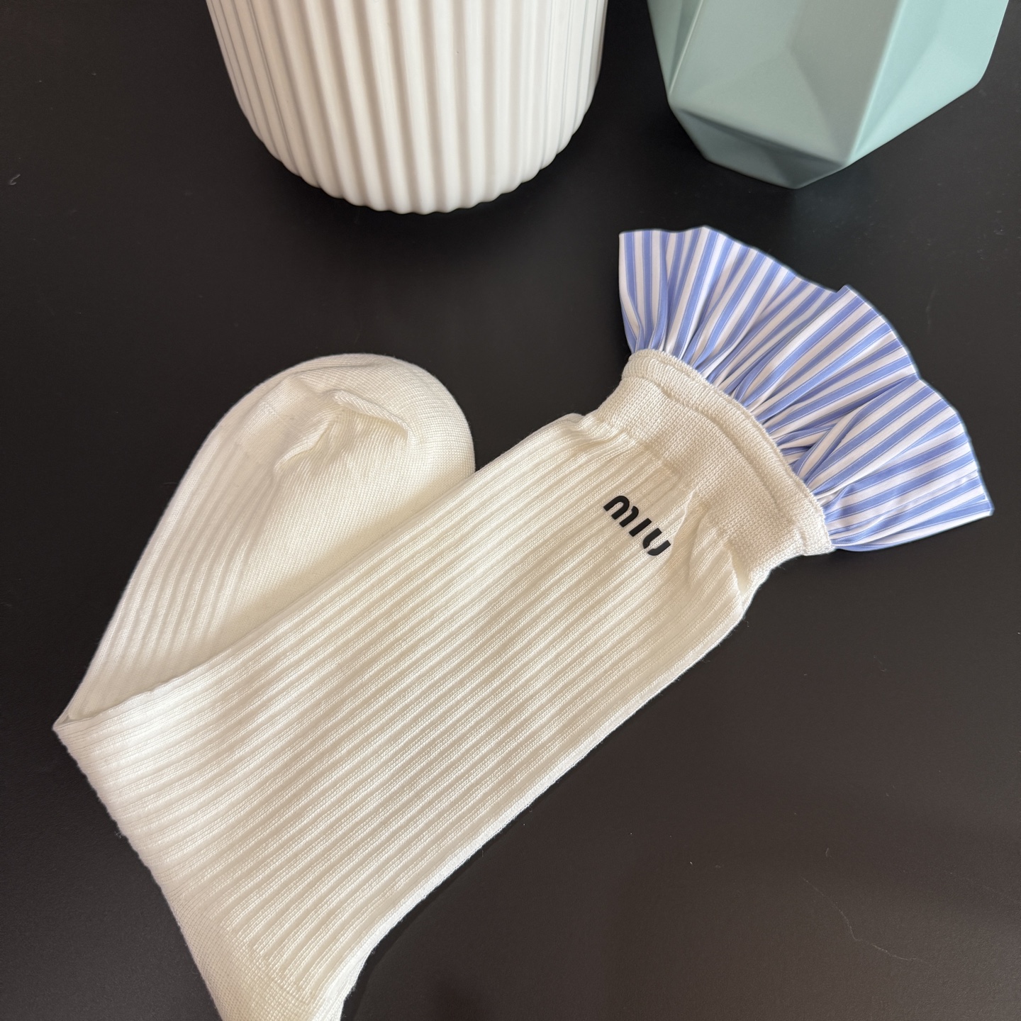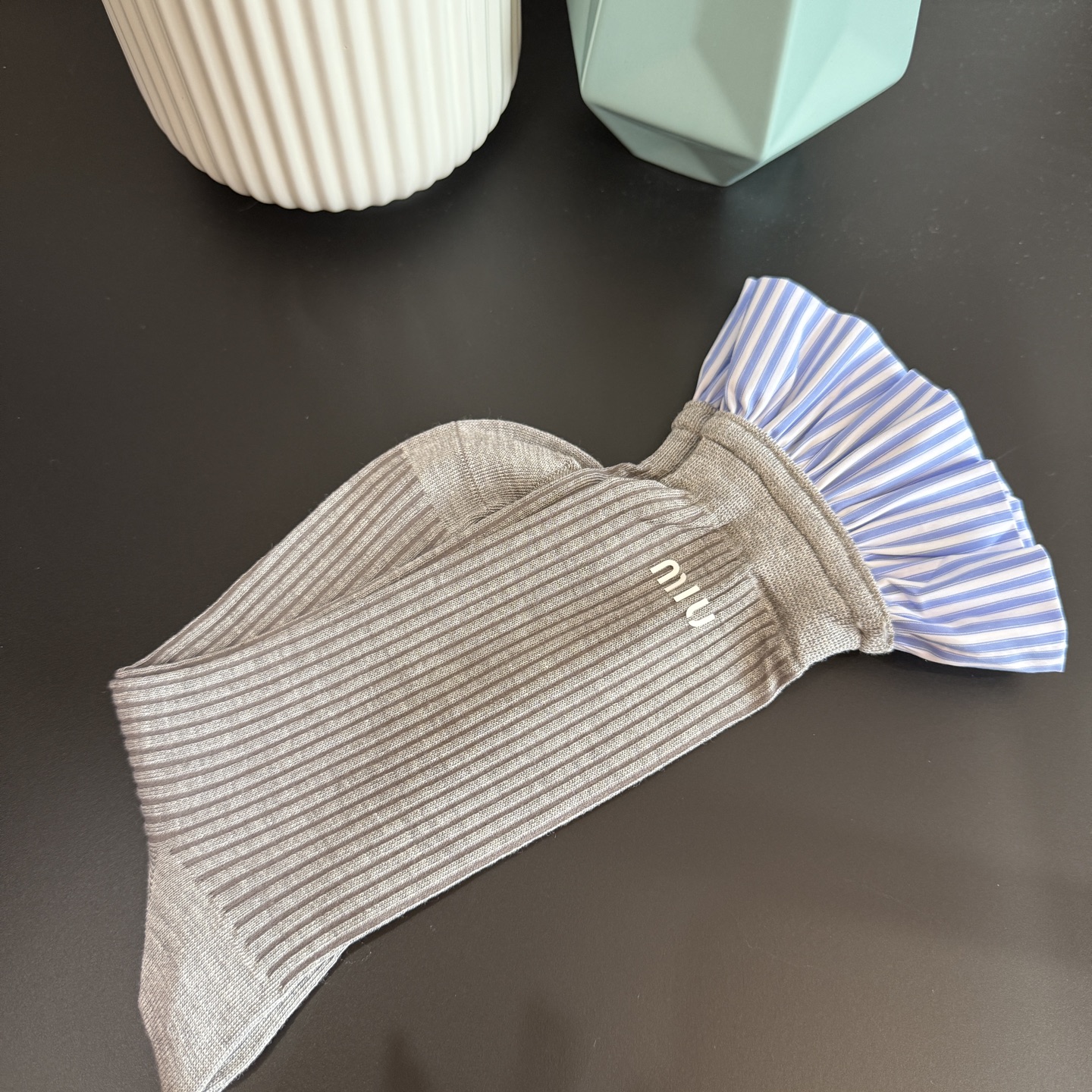 这款sock是AAAAA 1:1 质量 (非常棒). 使用了和原版一模一样的材料. 商标部分也保持了和缪缪/Miu Miu一样. 图片拍摄是实物sock拍摄, 您所收到的实物保证和我们图片一模一样.