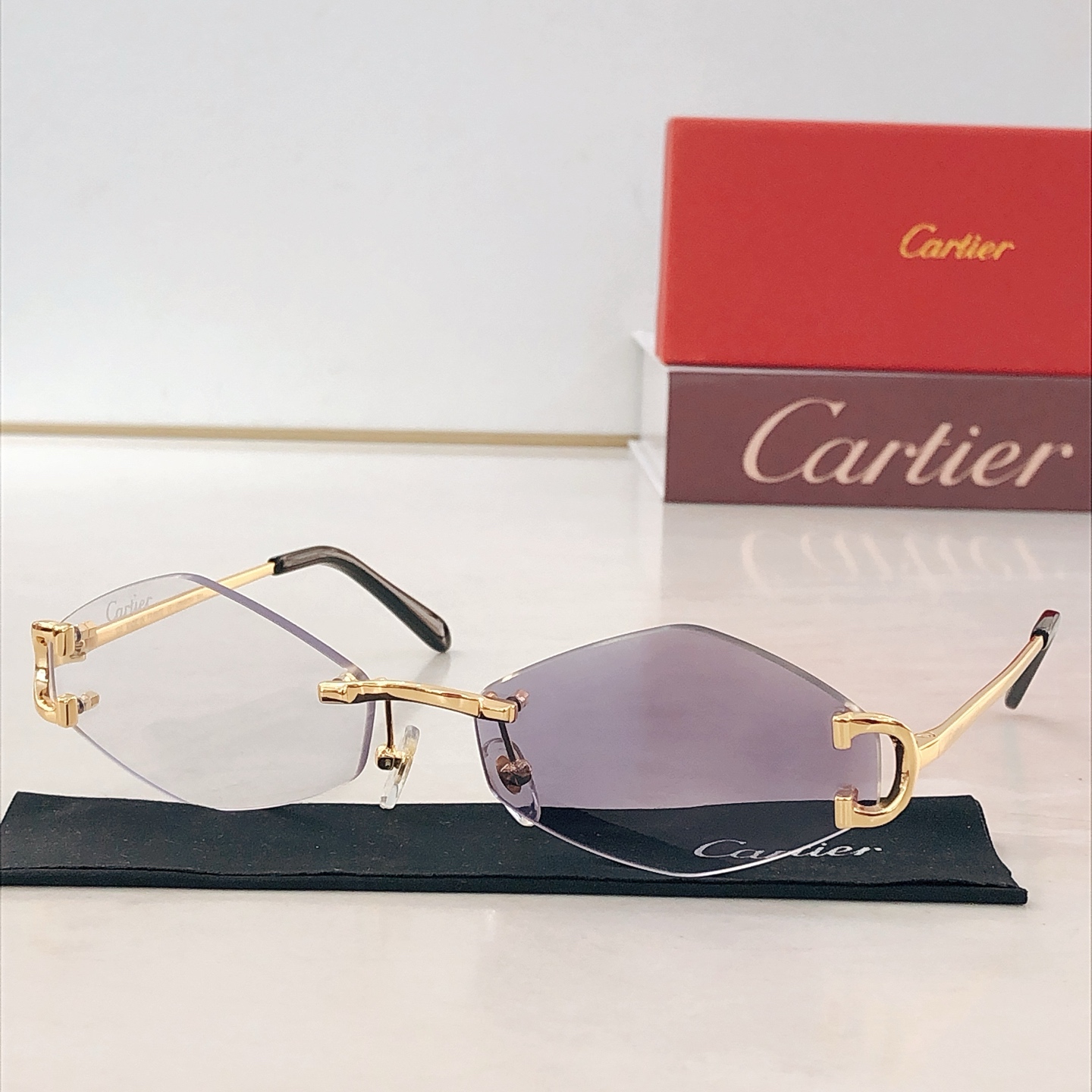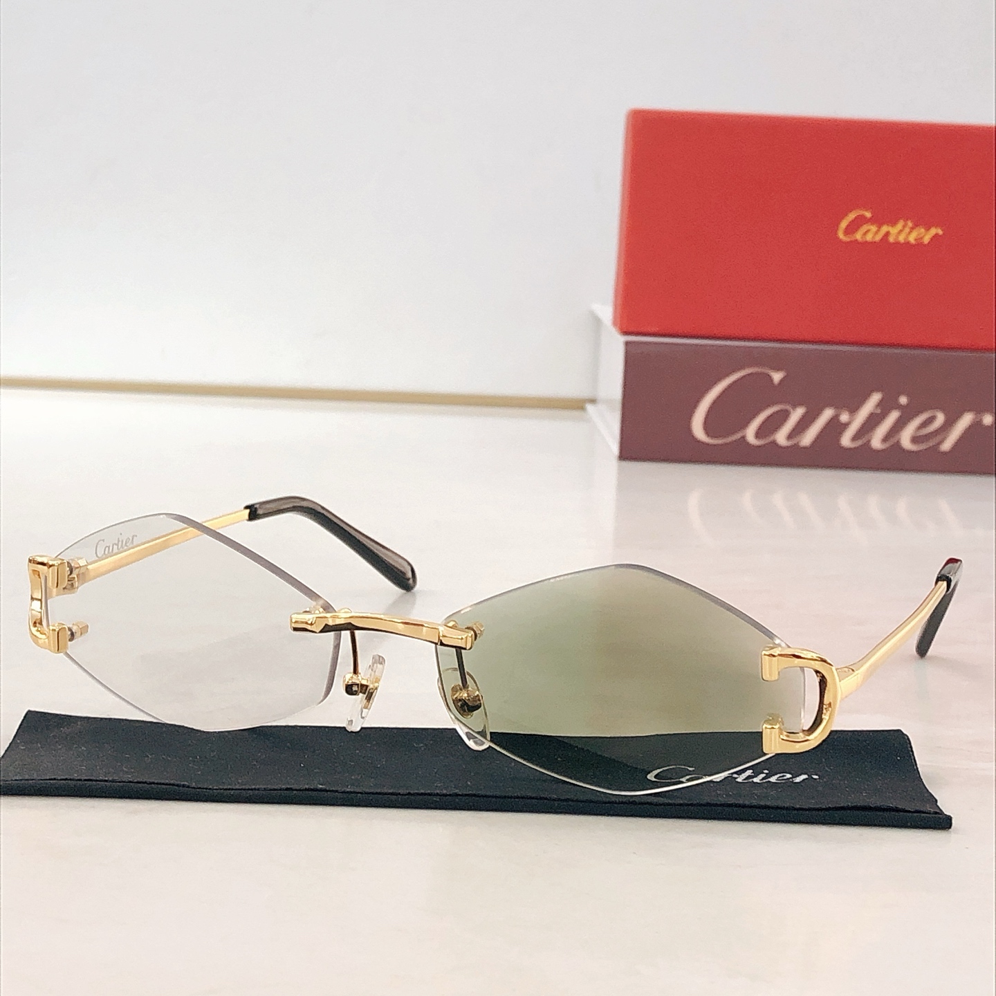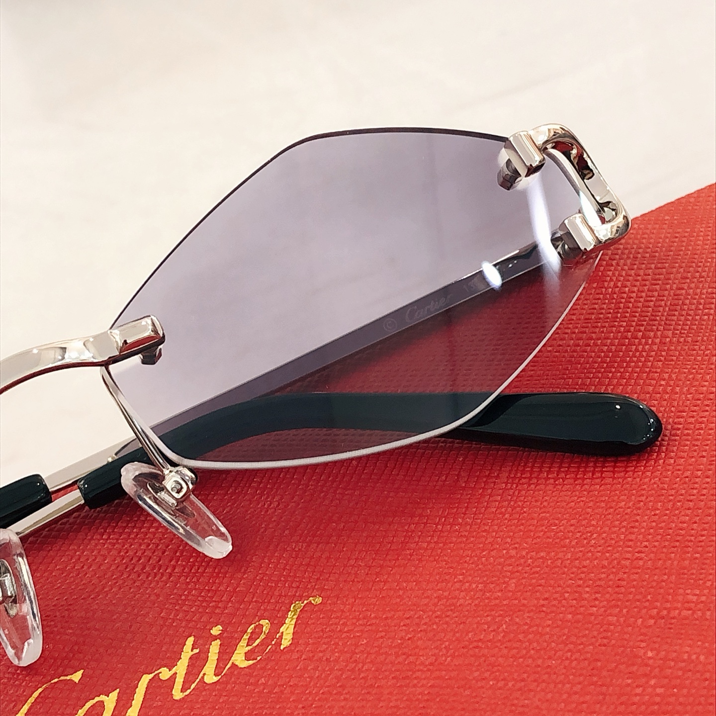 这款太阳眼镜是AAAAA 1:1 质量 (非常棒). 使用了和原版一模一样的材料. 商标部分也保持了和卡地亚/Cartier一样. 图片拍摄是实物太阳眼镜拍摄, 您所收到的实物保证和我们图片一模一样.