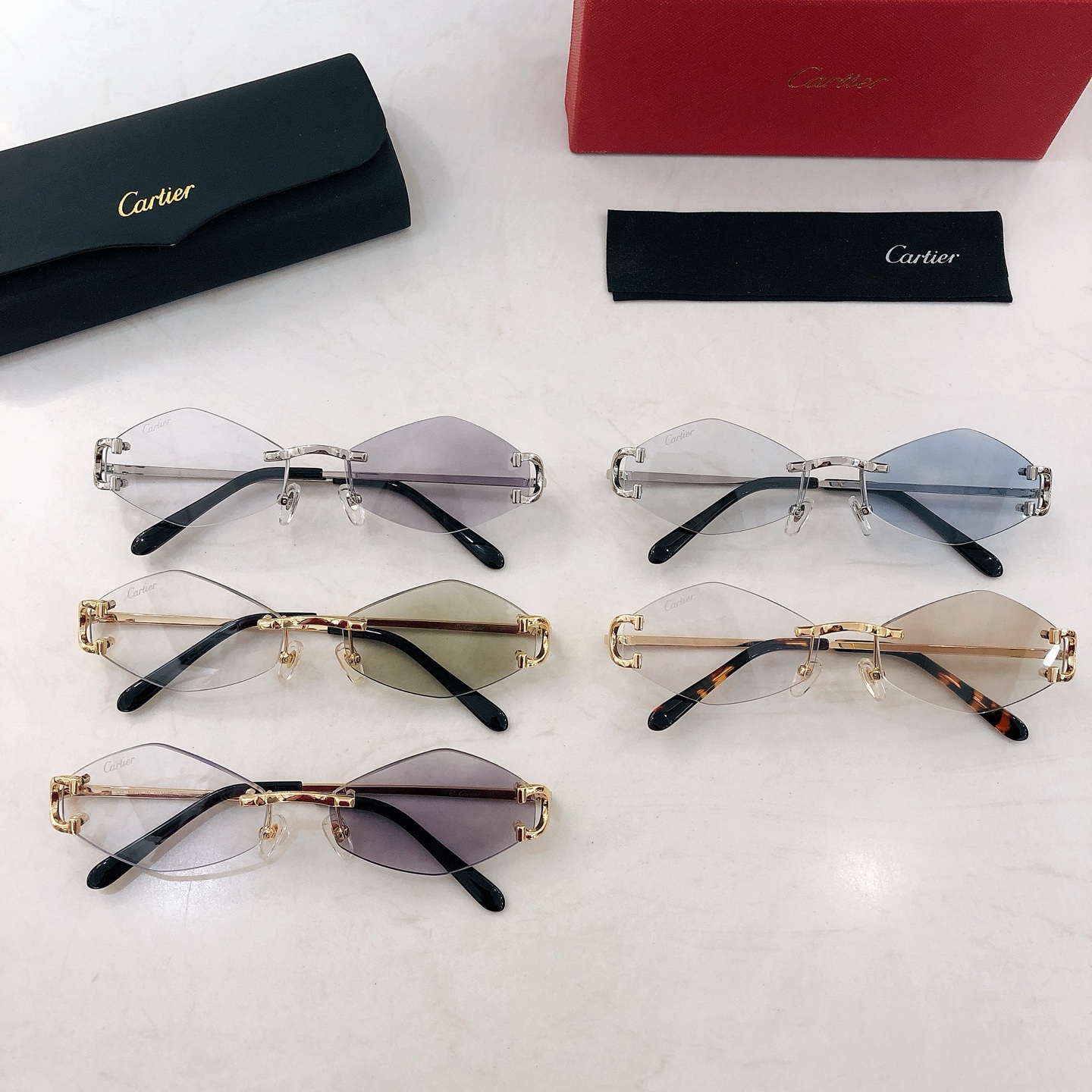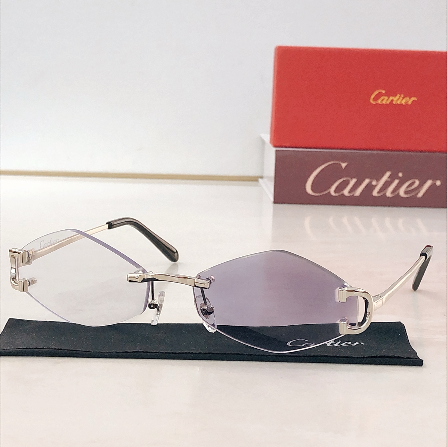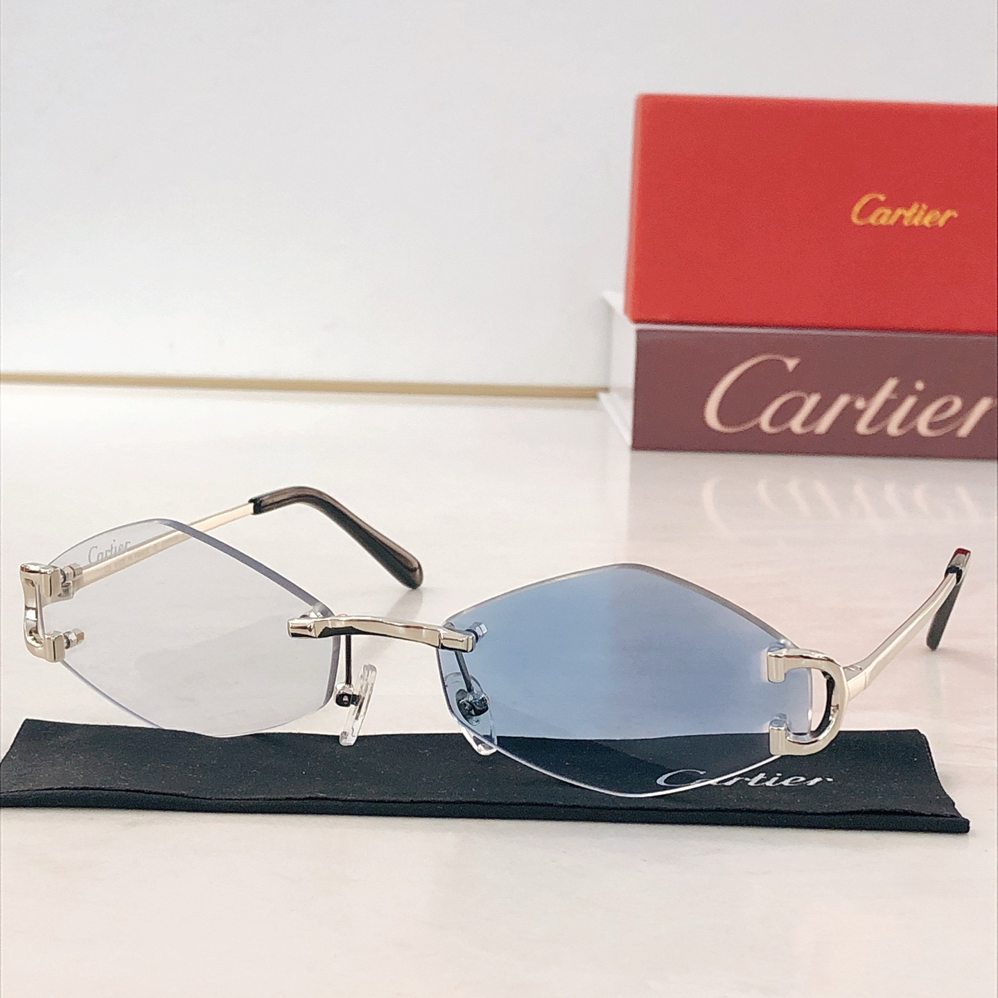 这款太阳眼镜是AAAAA 1:1 质量 (非常棒). 使用了和原版一模一样的材料. 商标部分也保持了和卡地亚/Cartier一样. 图片拍摄是实物太阳眼镜拍摄, 您所收到的实物保证和我们图片一模一样.