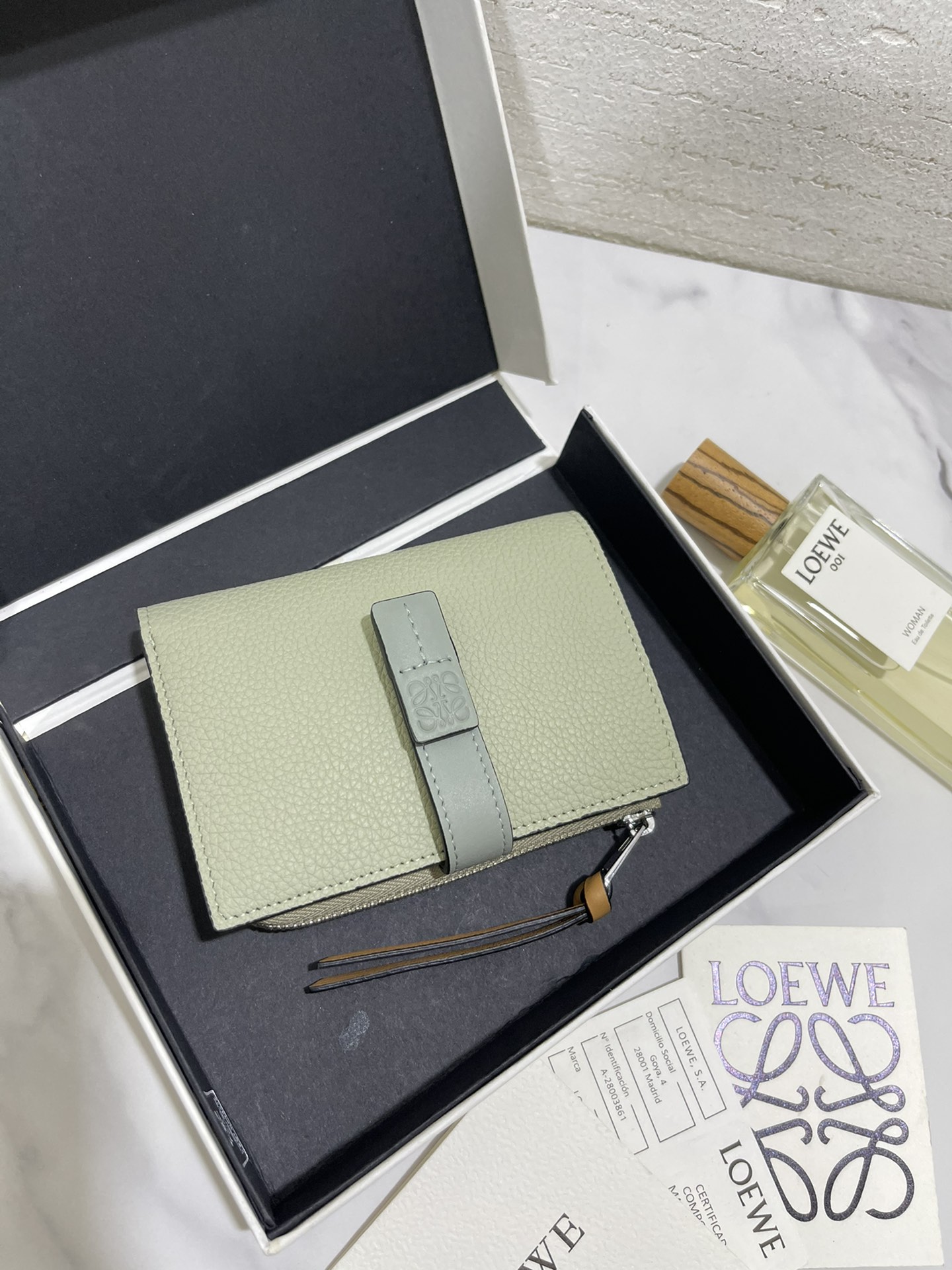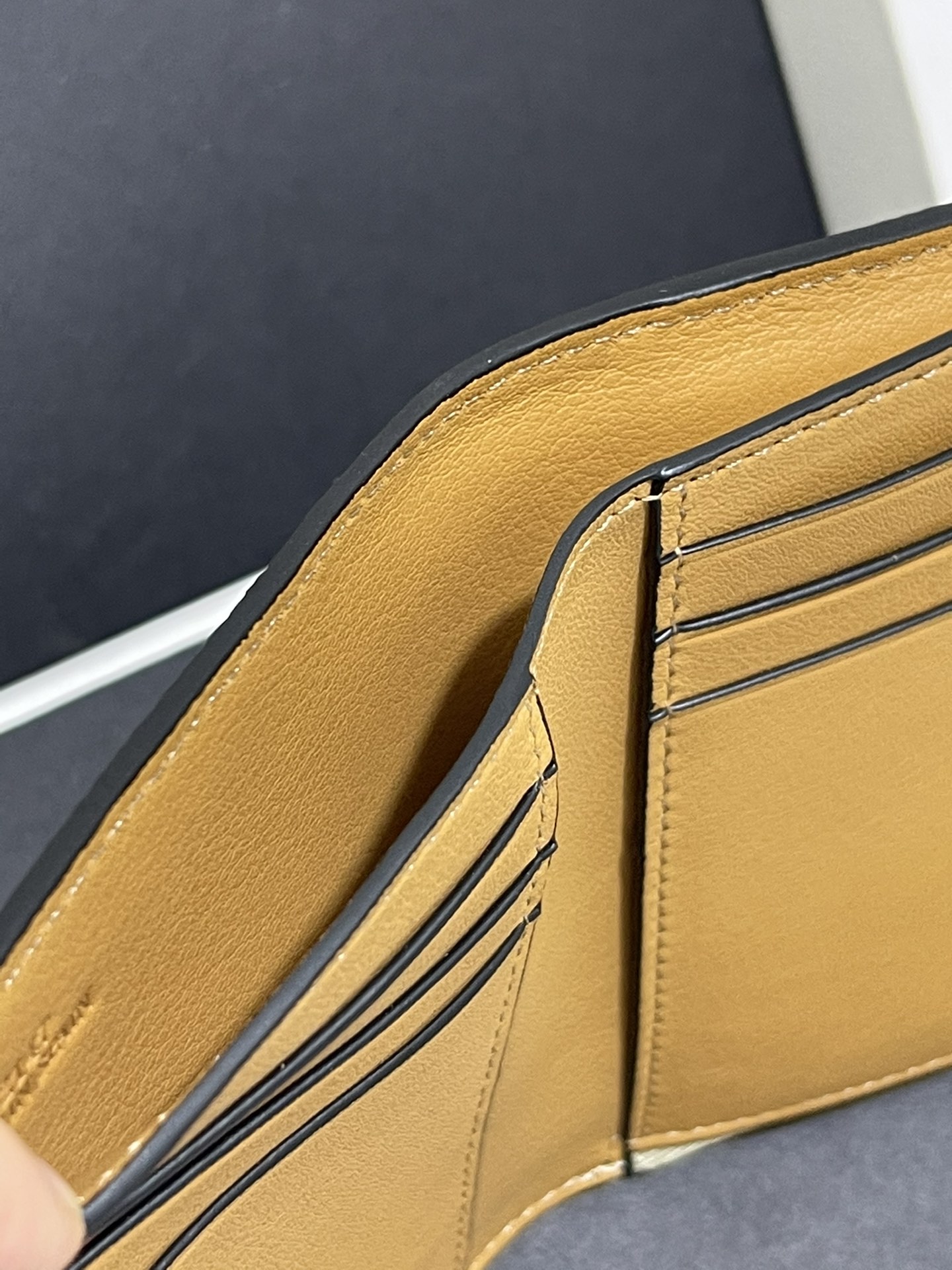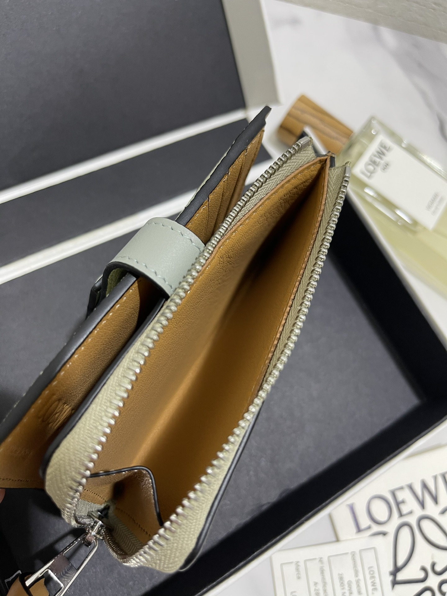 这款钱包是AAAAA 1:1 质量 (非常棒). 使用了和原版一模一样的材料. 商标部分也保持了和罗意威/Loewe一样. 图片拍摄是实物钱包拍摄, 您所收到的实物保证和我们图片一模一样.