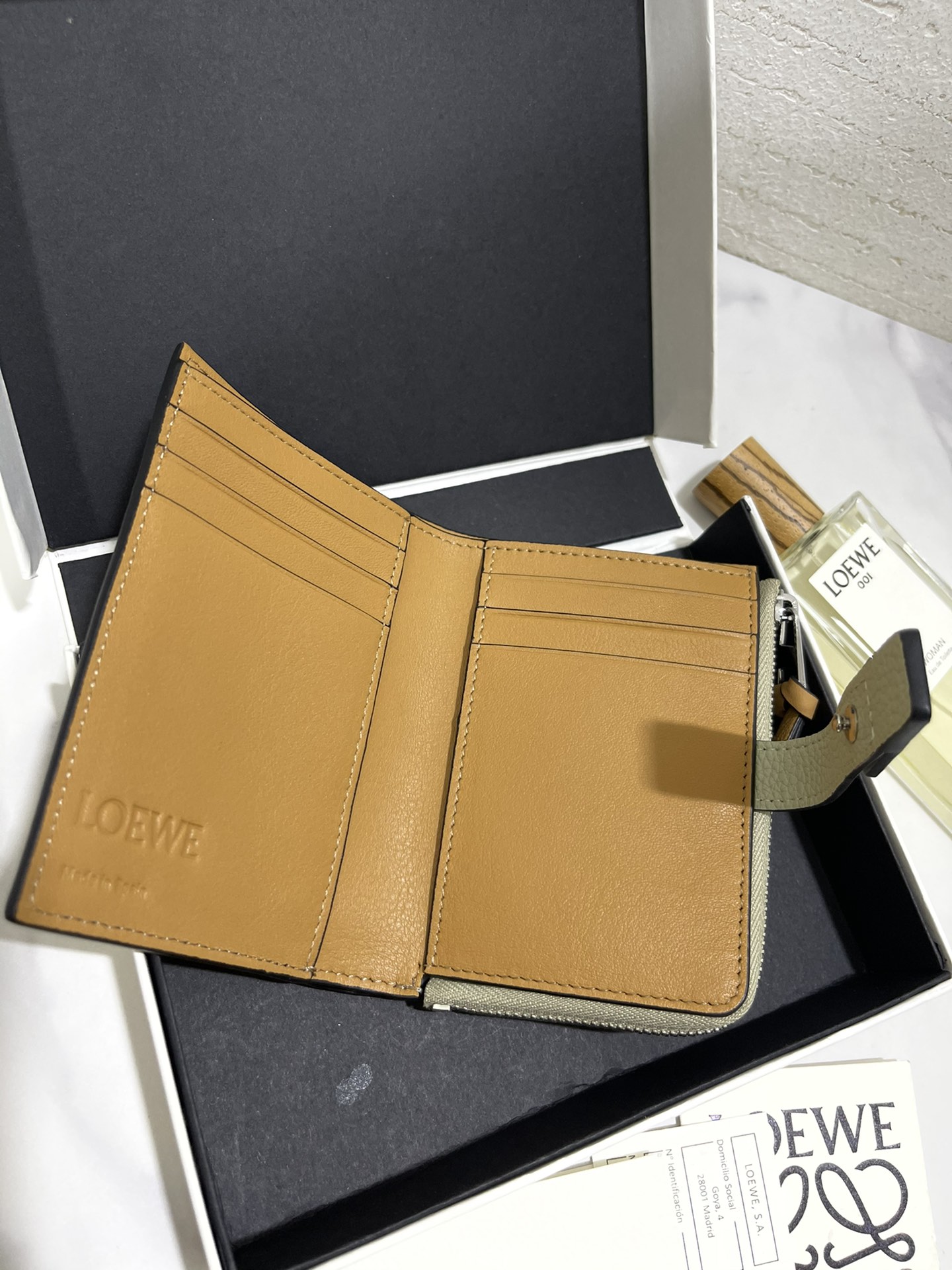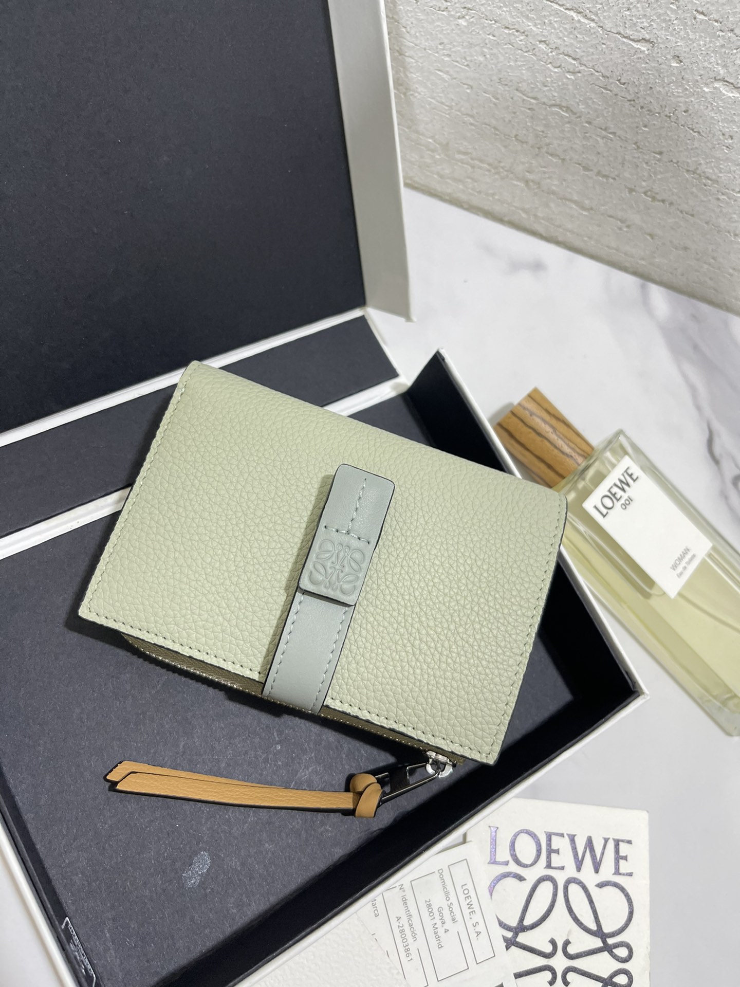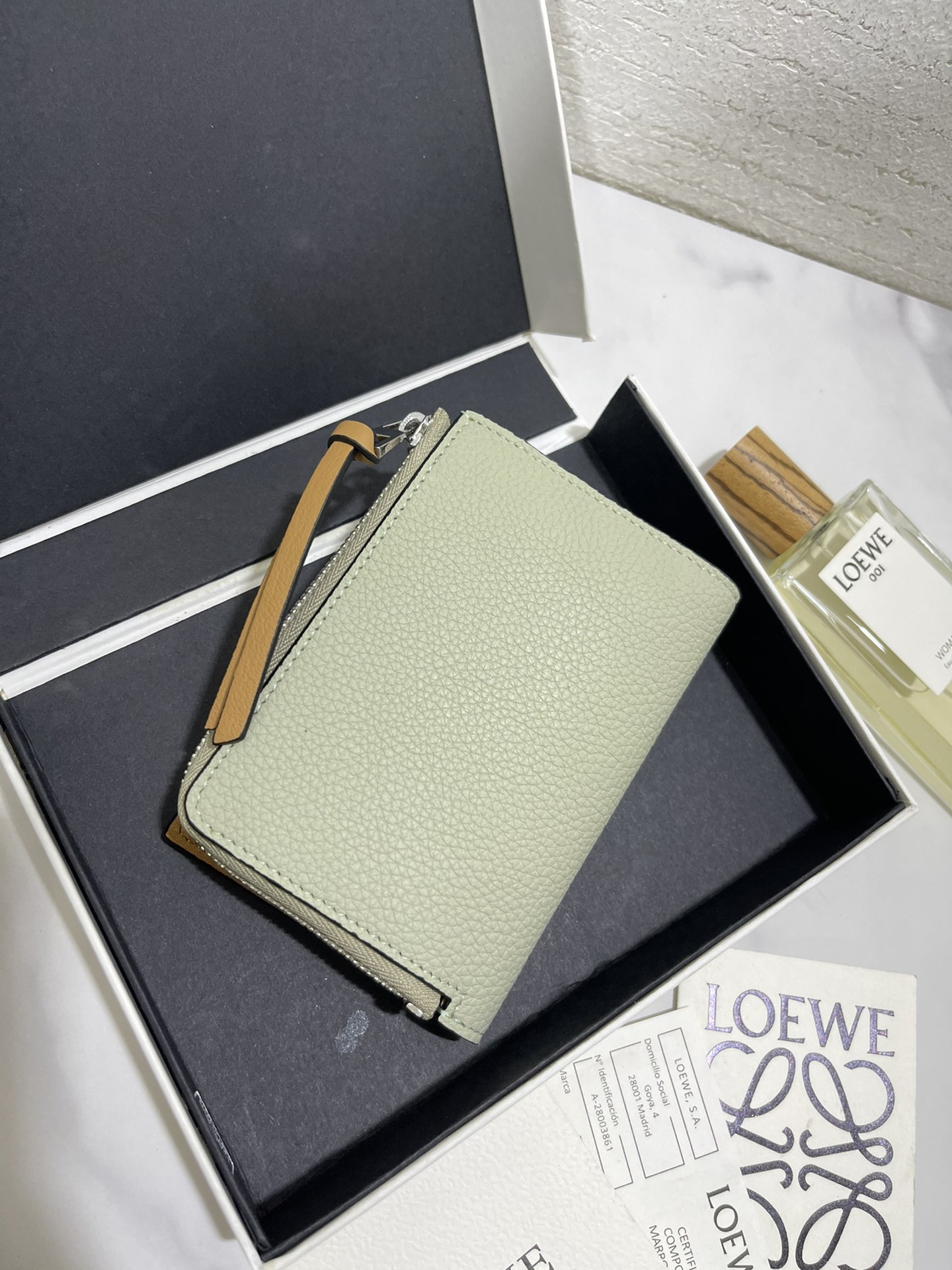 这款钱包是AAAAA 1:1 质量 (非常棒). 使用了和原版一模一样的材料. 商标部分也保持了和罗意威/Loewe一样. 图片拍摄是实物钱包拍摄, 您所收到的实物保证和我们图片一模一样.