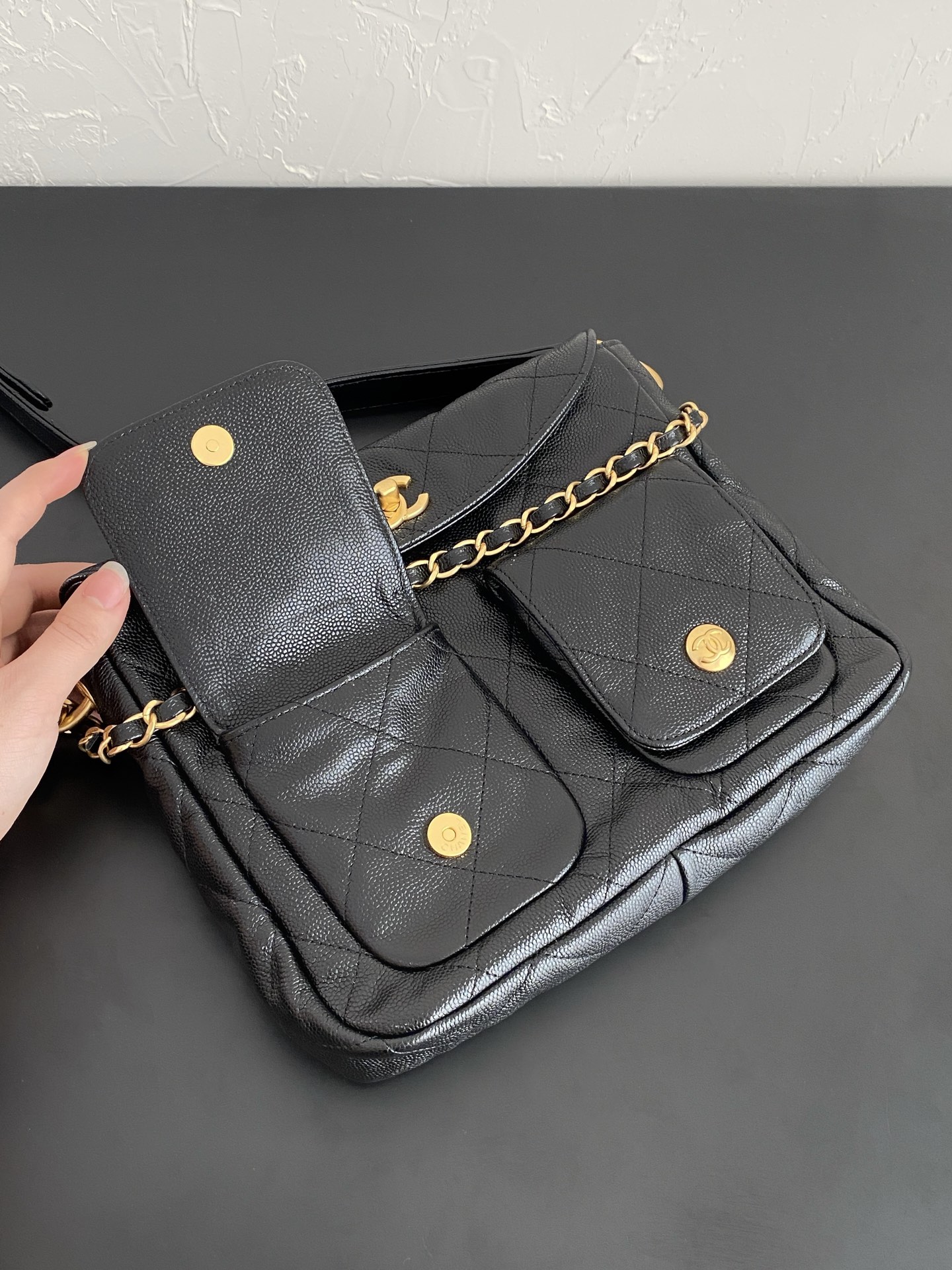 这款包包是AAAAA 1:1 质量 (非常棒). 使用了和原版一模一样的材料. 商标部分也保持了和香奈儿/Chanel一样. 图片拍摄是实物包包拍摄, 您所收到的实物保证和我们图片一模一样.
