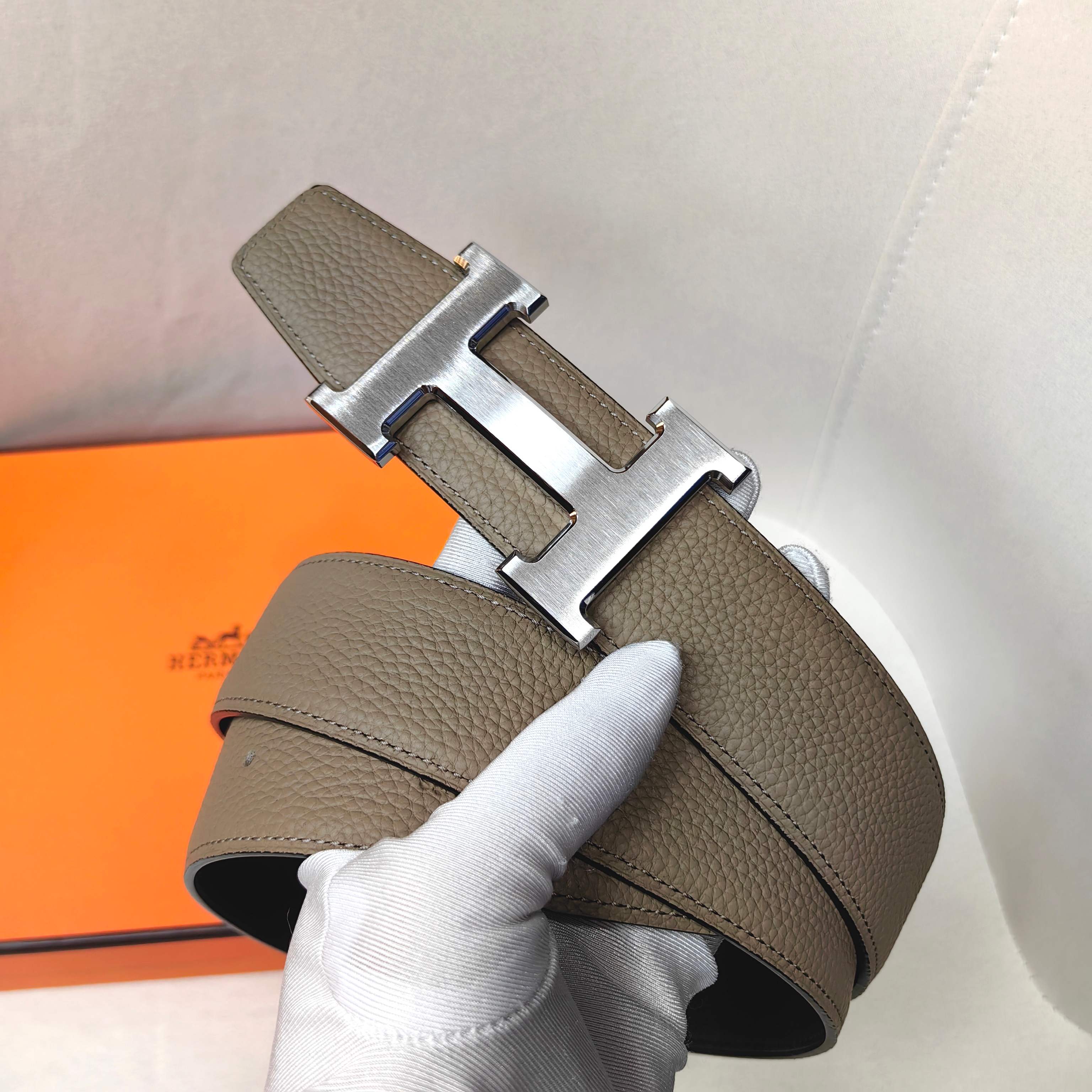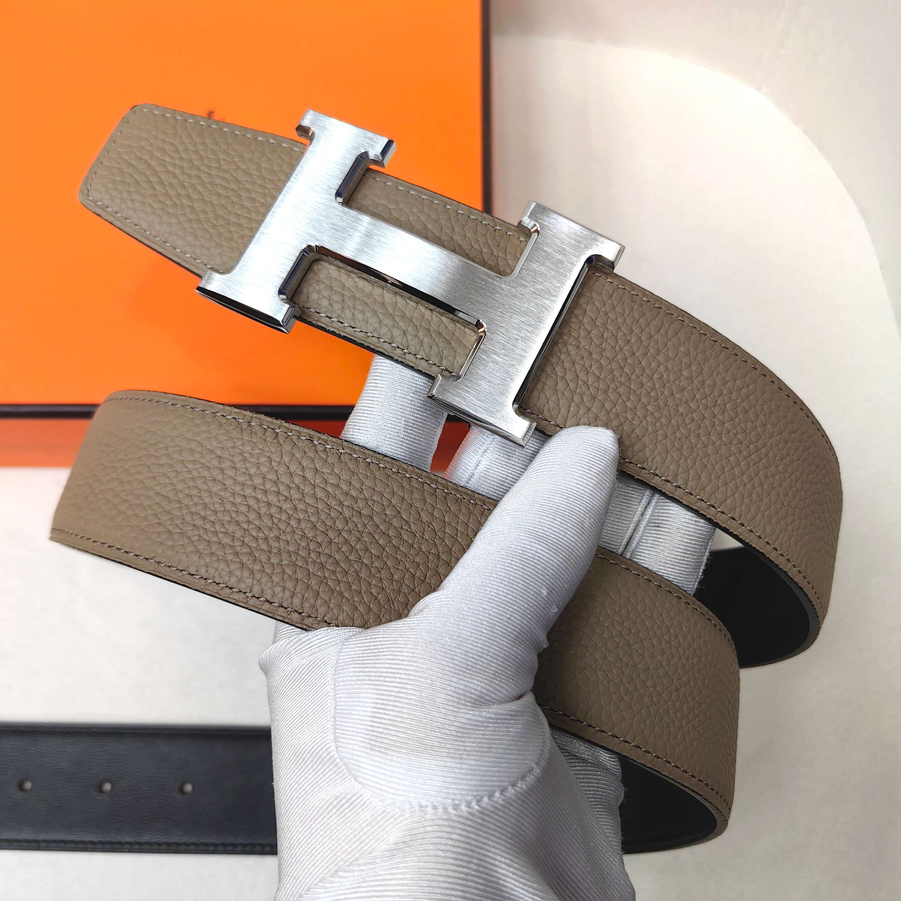 这款皮带是AAAAA 1:1 质量 (非常棒). 使用了和原版一模一样的材料. 商标部分也保持了和爱马仕/Hermes一样. 图片拍摄是实物皮带拍摄, 您所收到的实物保证和我们图片一模一样.