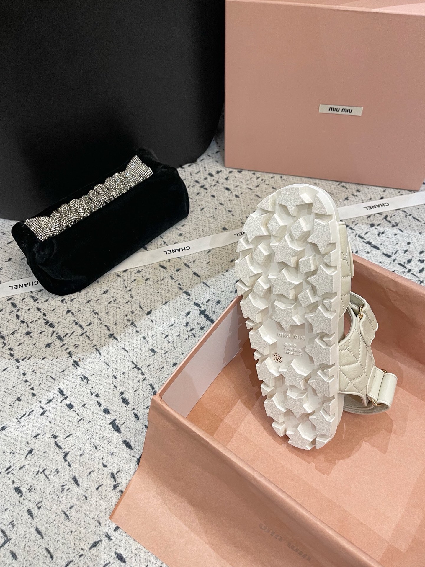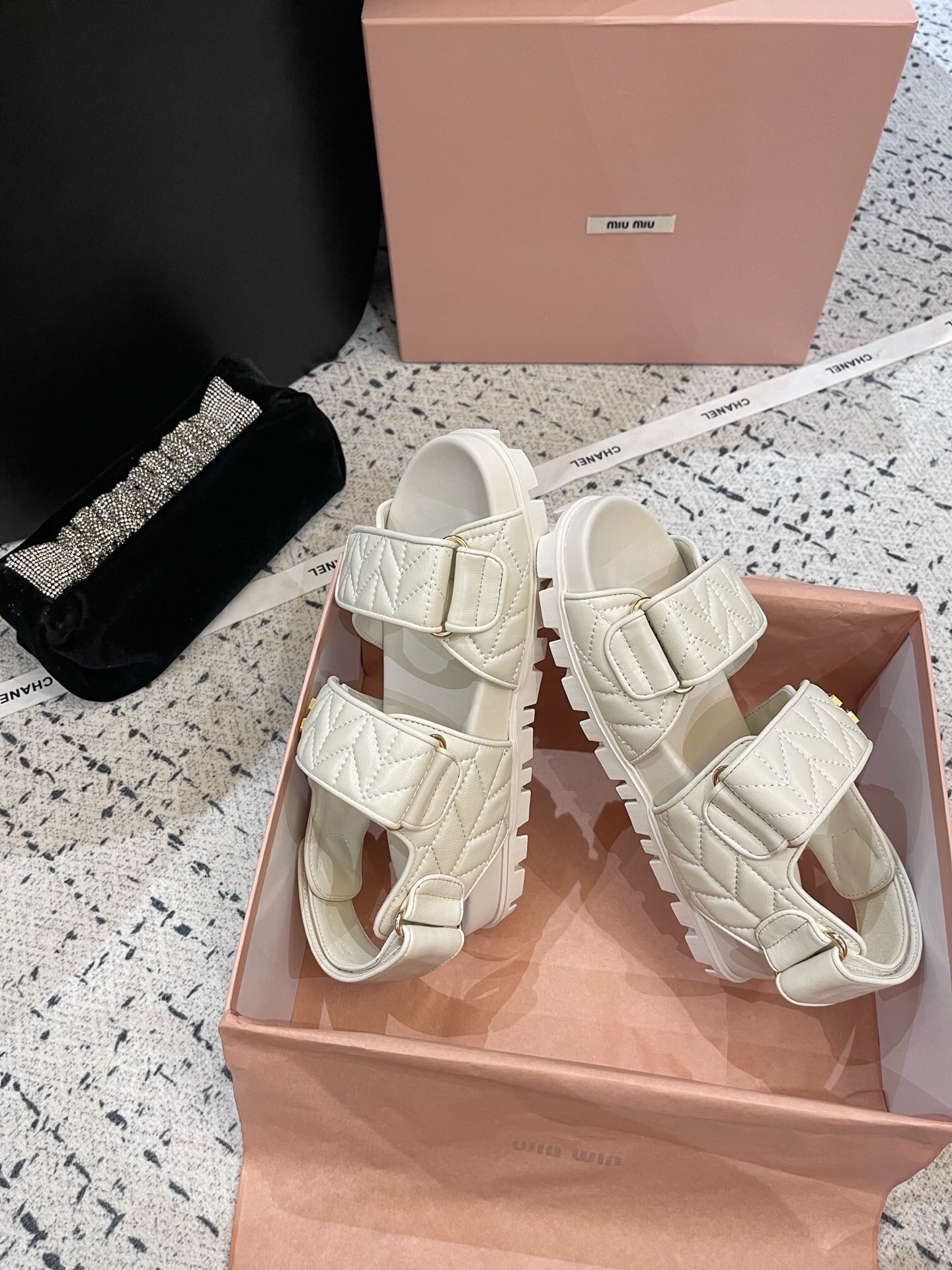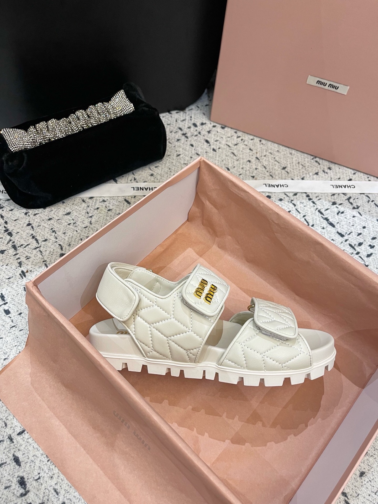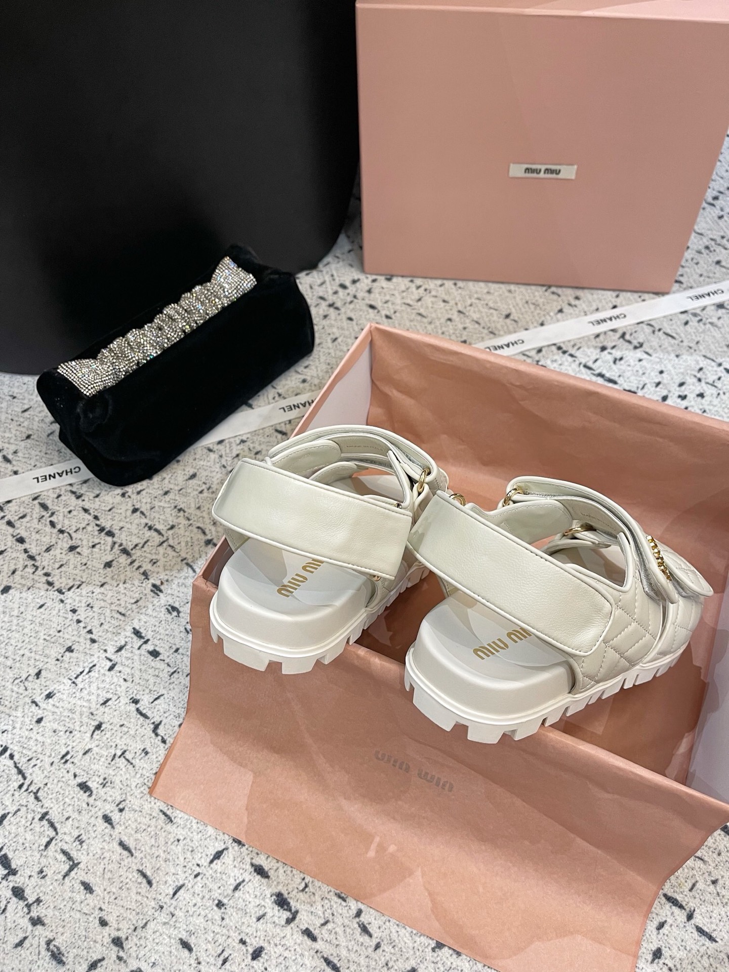 这款鞋子是AAAAA 1:1 质量 (非常棒). 使用了和原版一模一样的材料. 商标部分也保持了和缪缪/Miu Miu一样. 图片拍摄是实物鞋子拍摄, 您所收到的实物保证和我们图片一模一样.