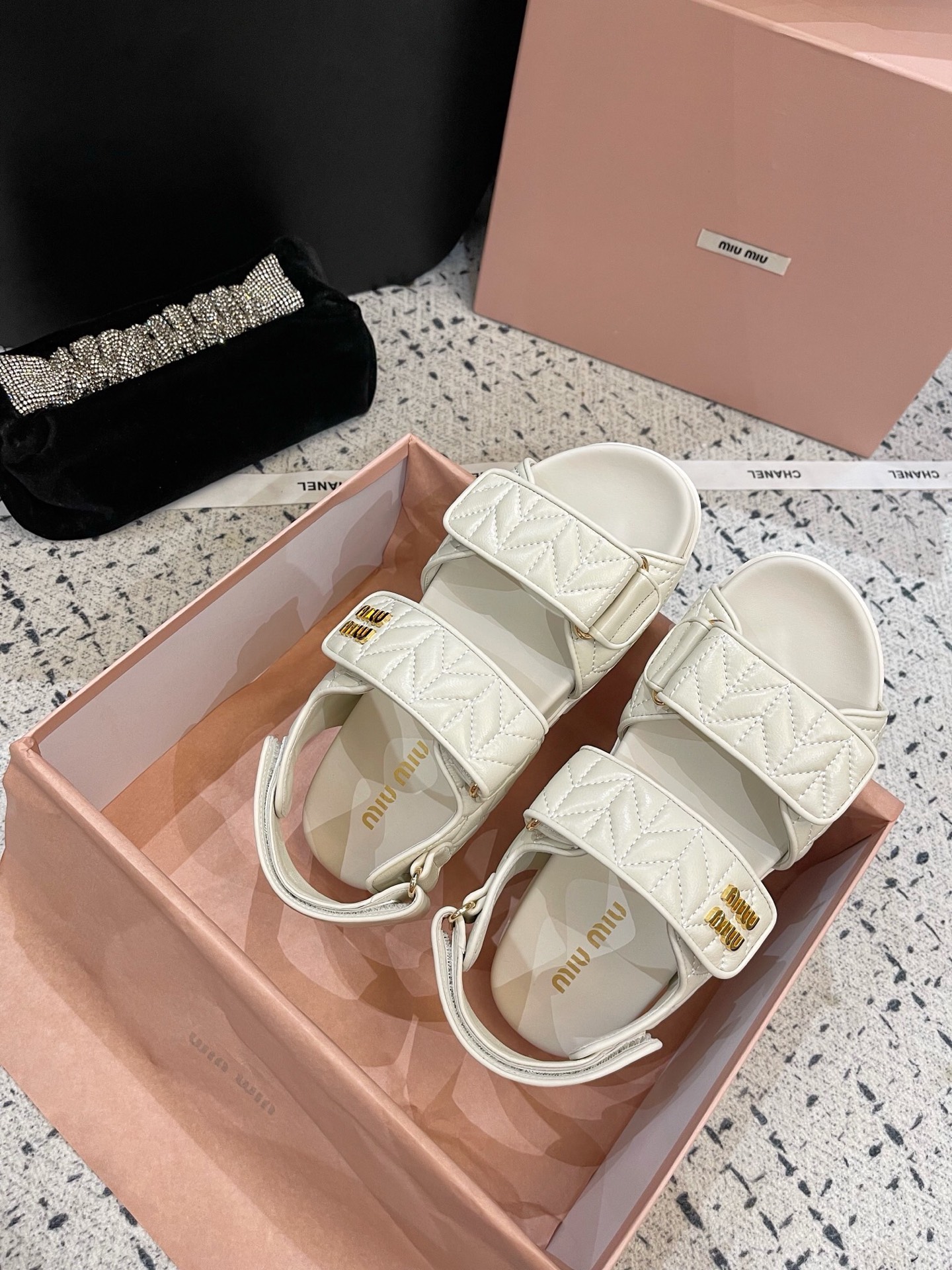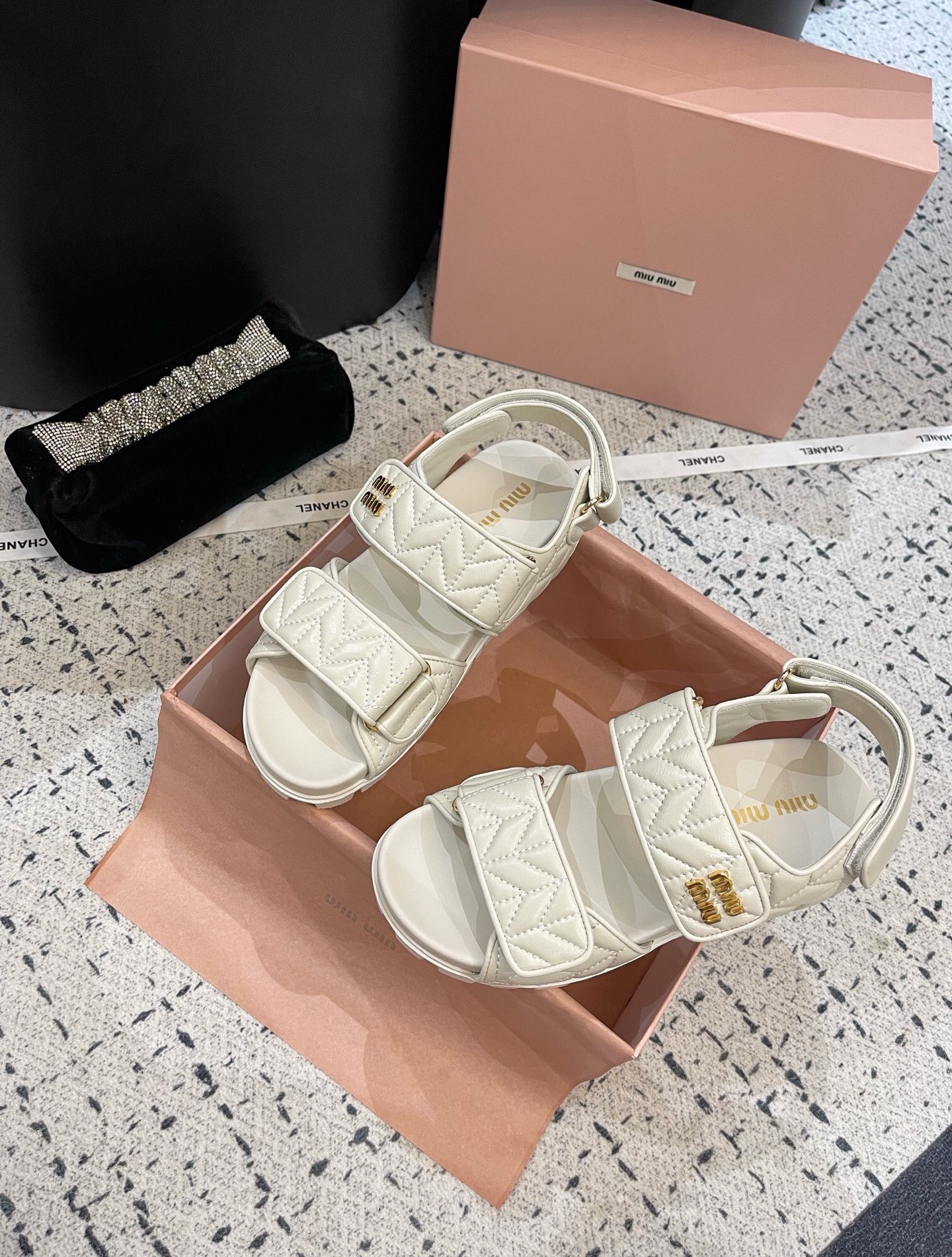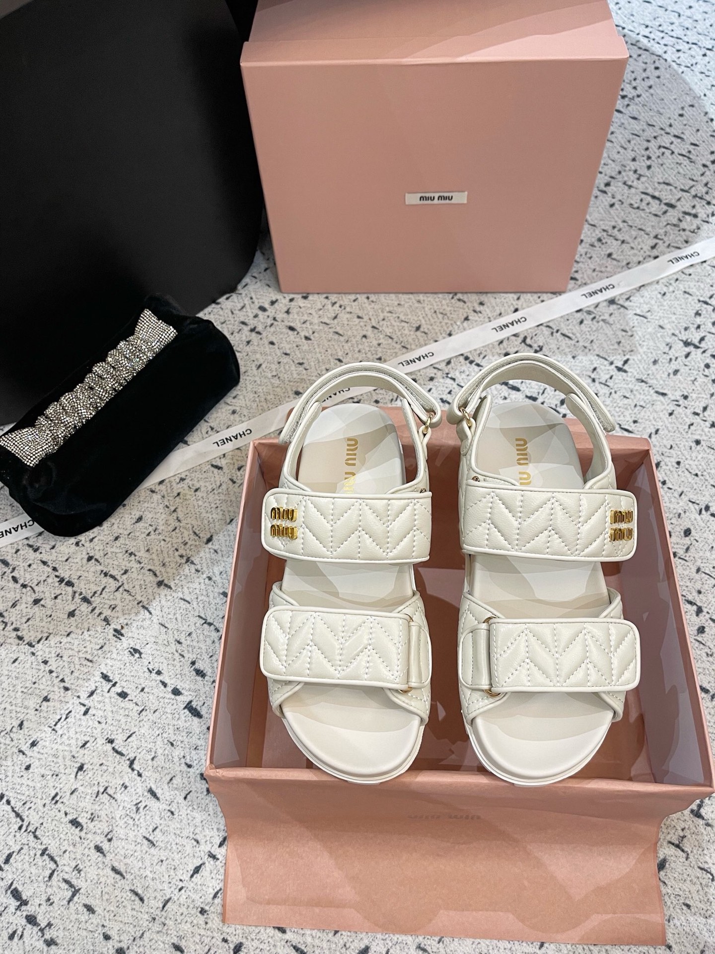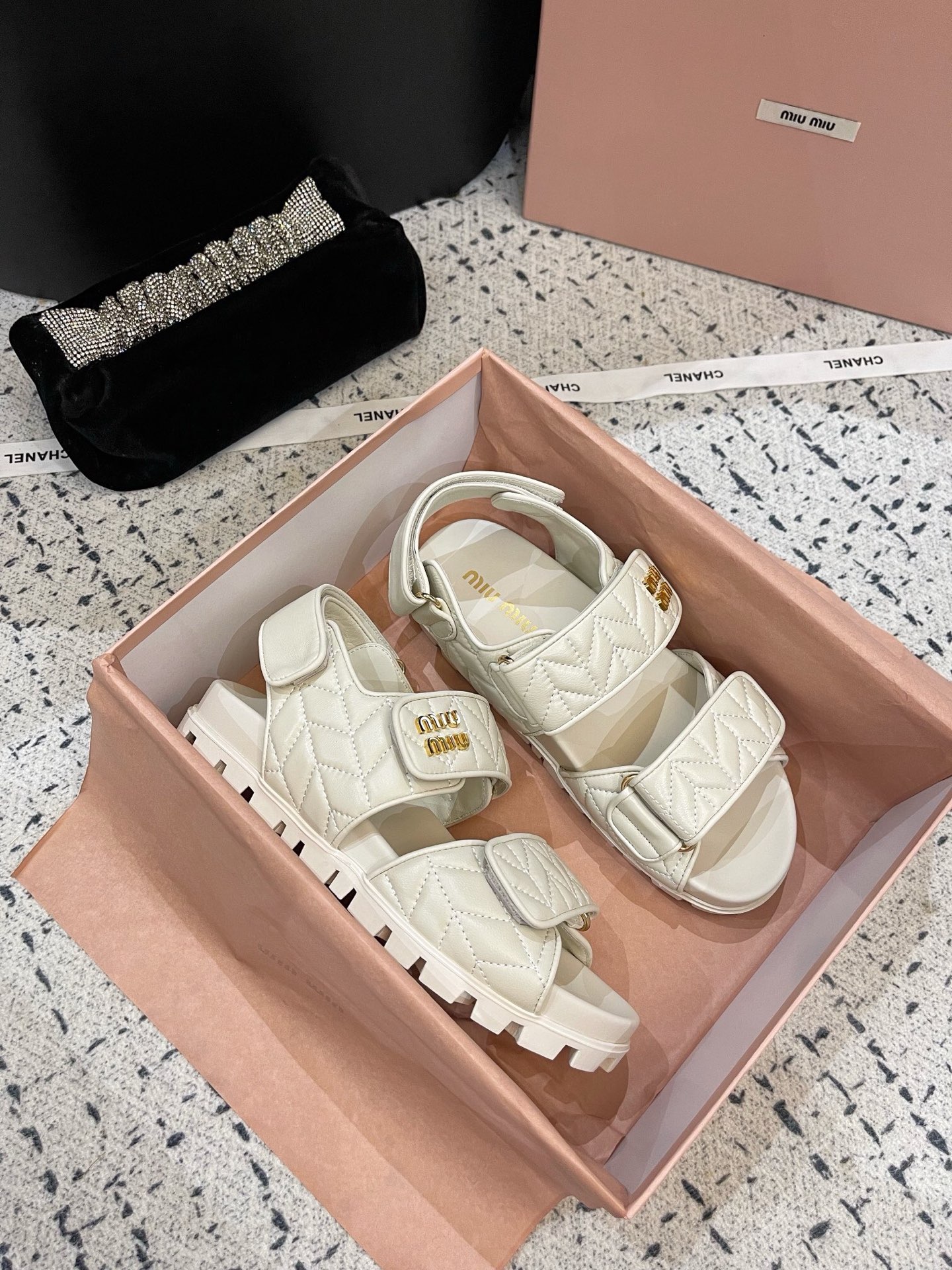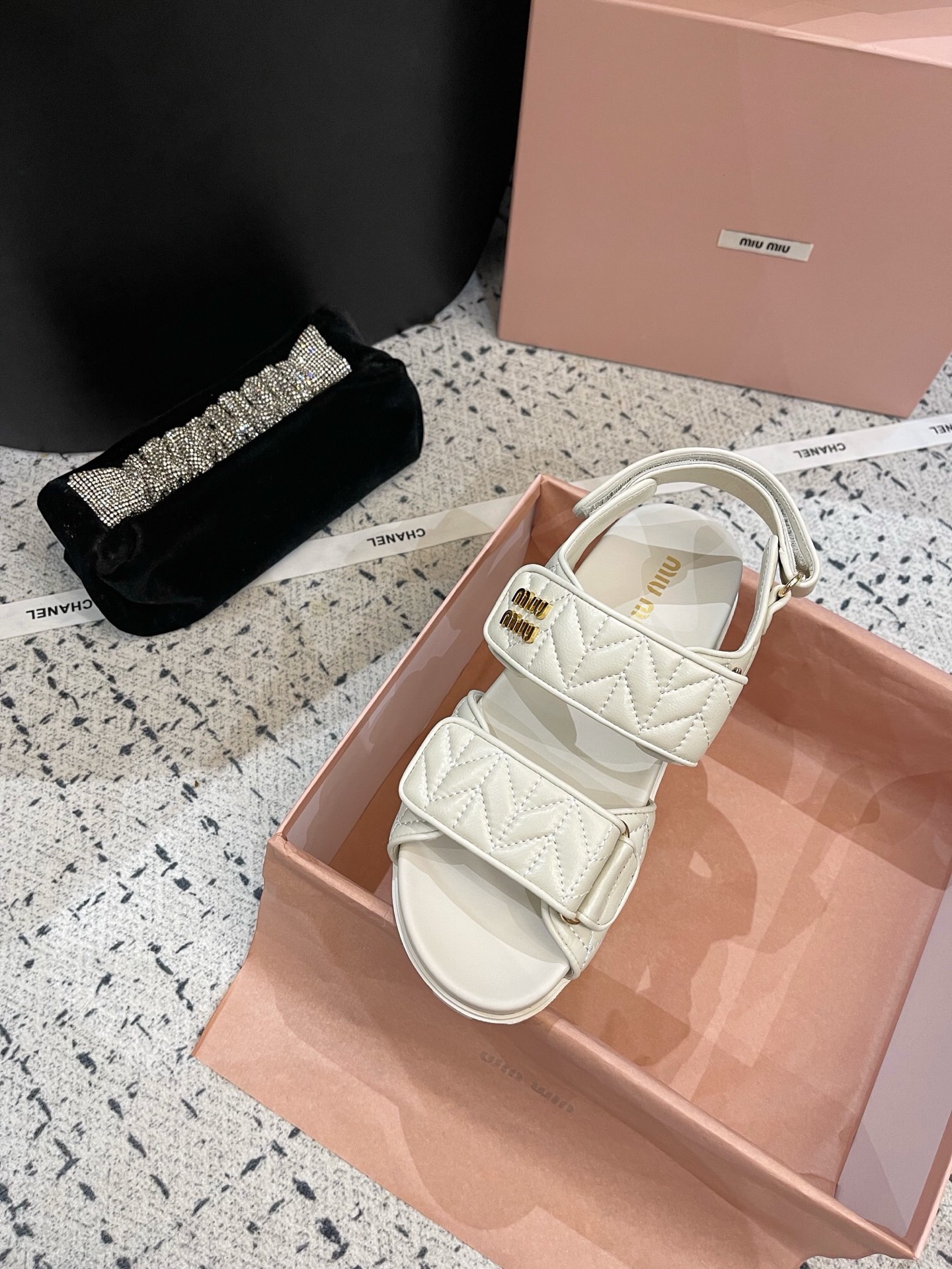 这款鞋子是AAAAA 1:1 质量 (非常棒). 使用了和原版一模一样的材料. 商标部分也保持了和缪缪/Miu Miu一样. 图片拍摄是实物鞋子拍摄, 您所收到的实物保证和我们图片一模一样.