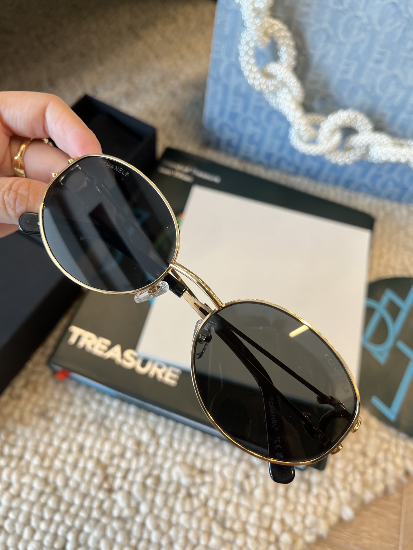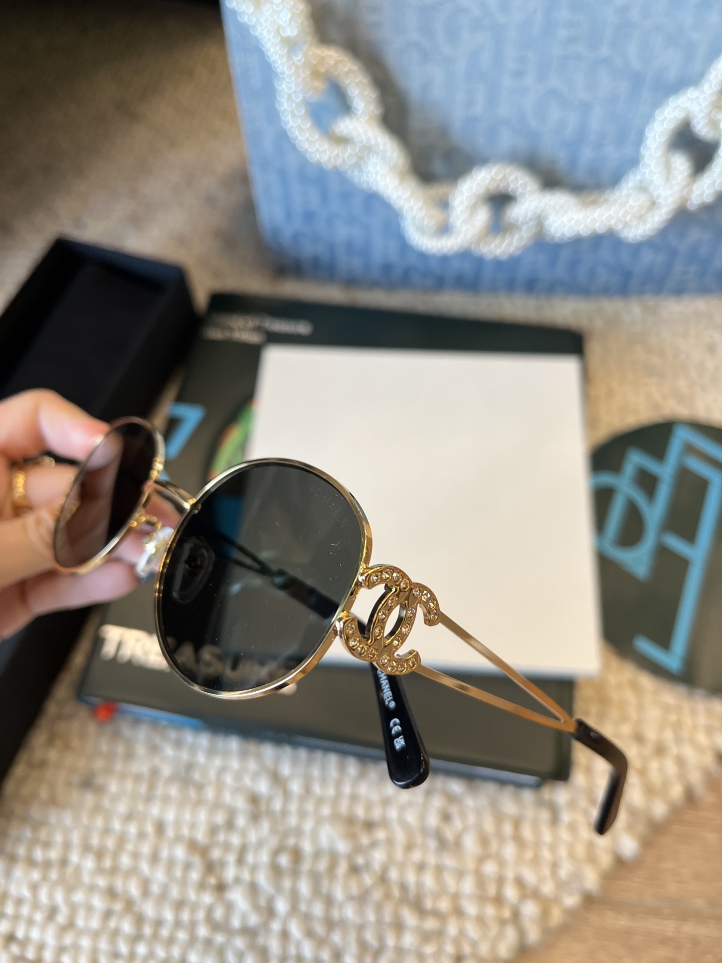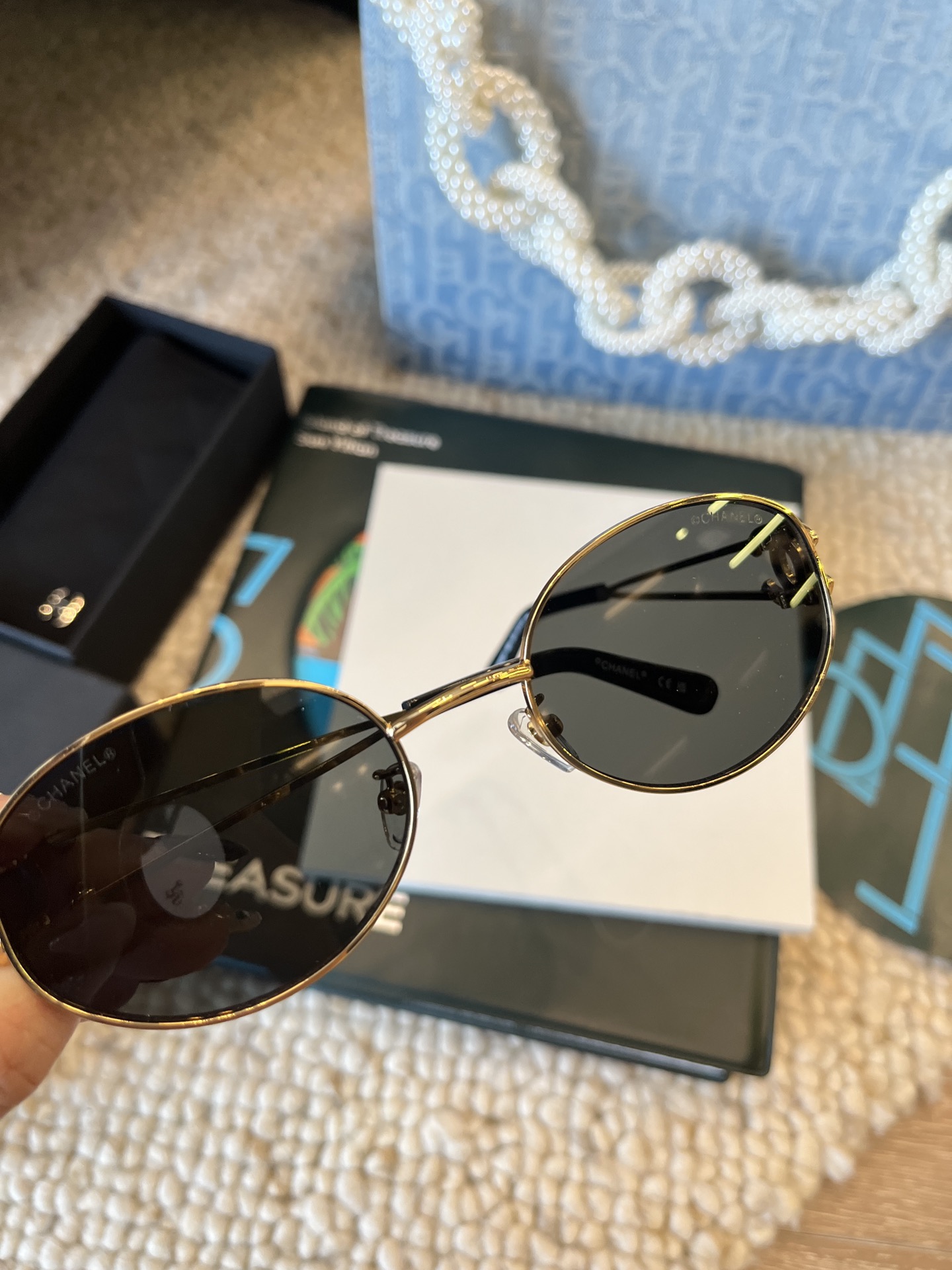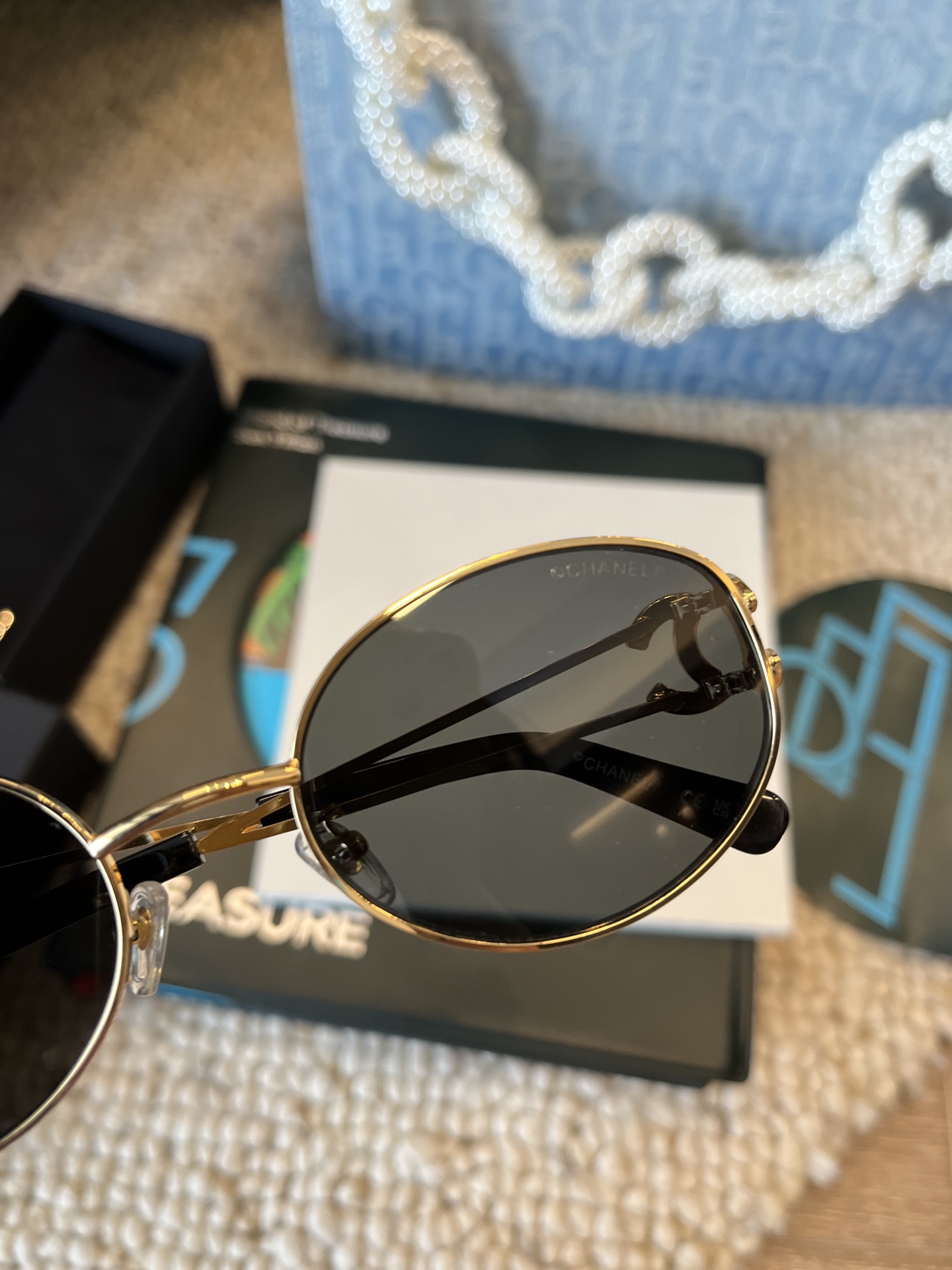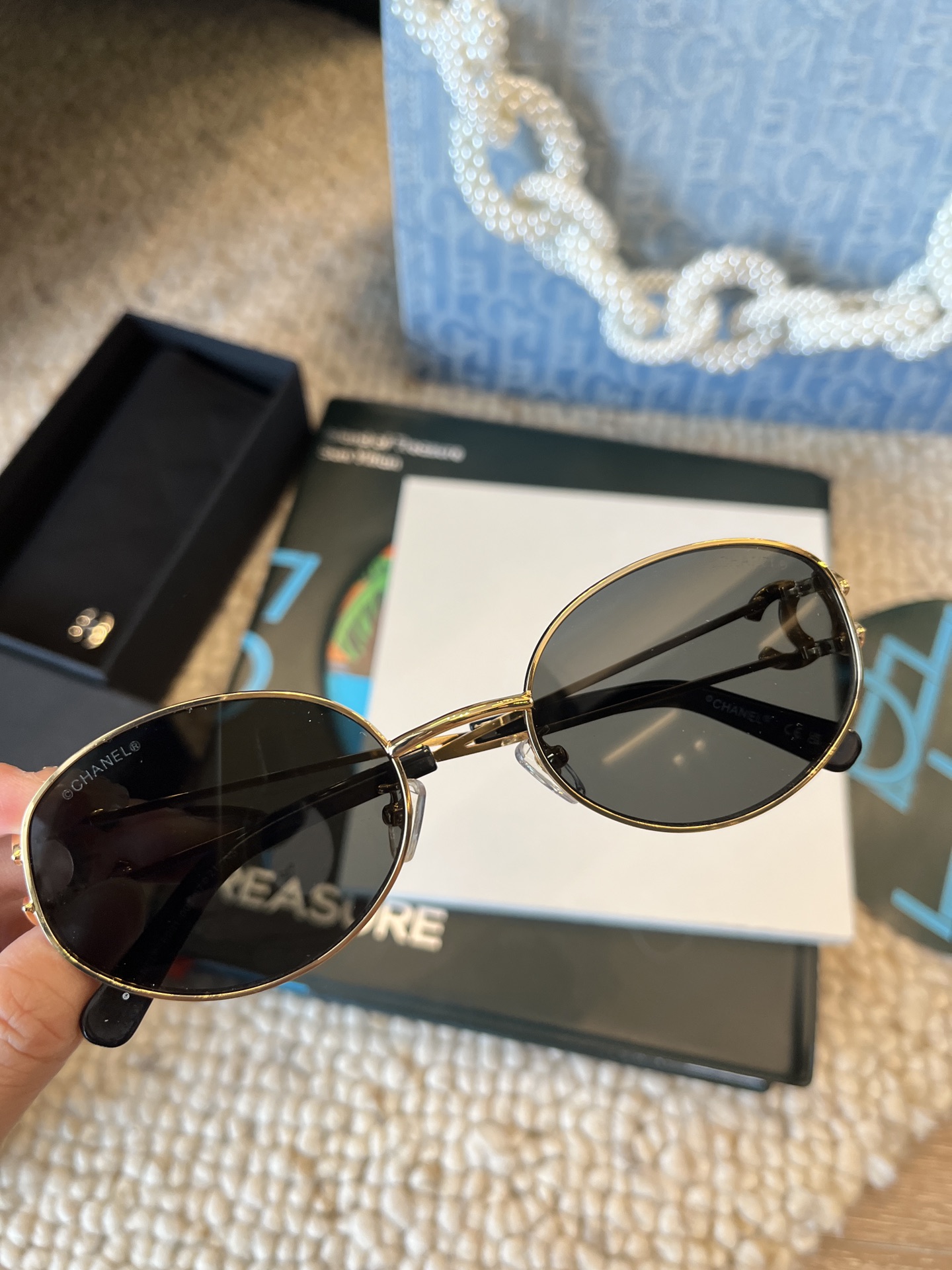 这款太阳眼镜是AAAAA 1:1 质量 (非常棒). 使用了和原版一模一样的材料. 商标部分也保持了和香奈儿/Chanel一样. 图片拍摄是实物太阳眼镜拍摄, 您所收到的实物保证和我们图片一模一样.