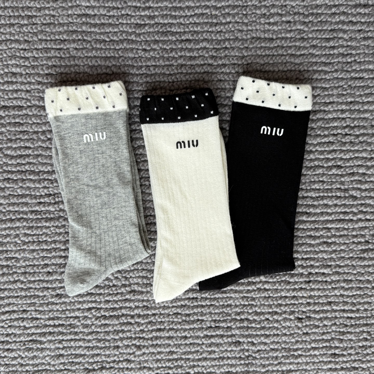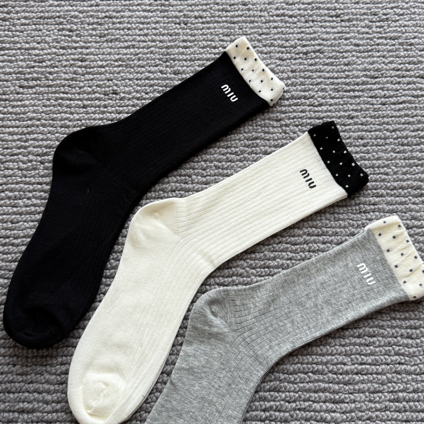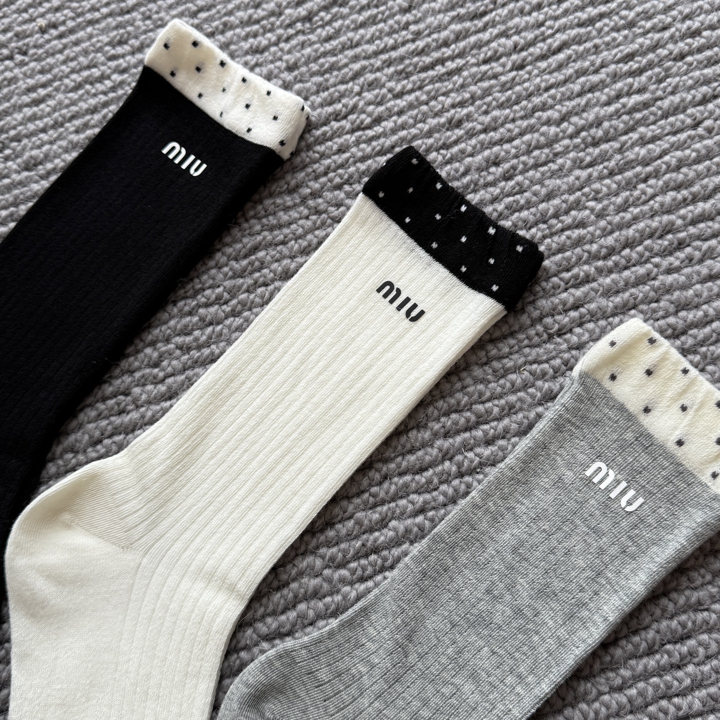 这款sock是AAAAA 1:1 质量 (非常棒). 使用了和原版一模一样的材料. 商标部分也保持了和缪缪/Miu Miu一样. 图片拍摄是实物sock拍摄, 您所收到的实物保证和我们图片一模一样.