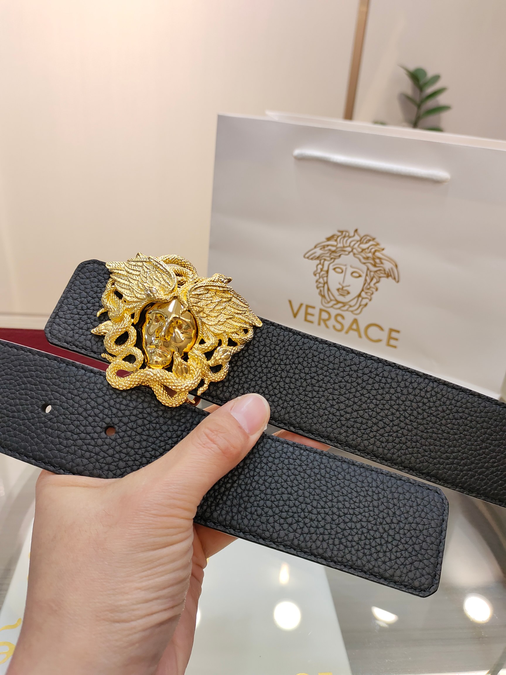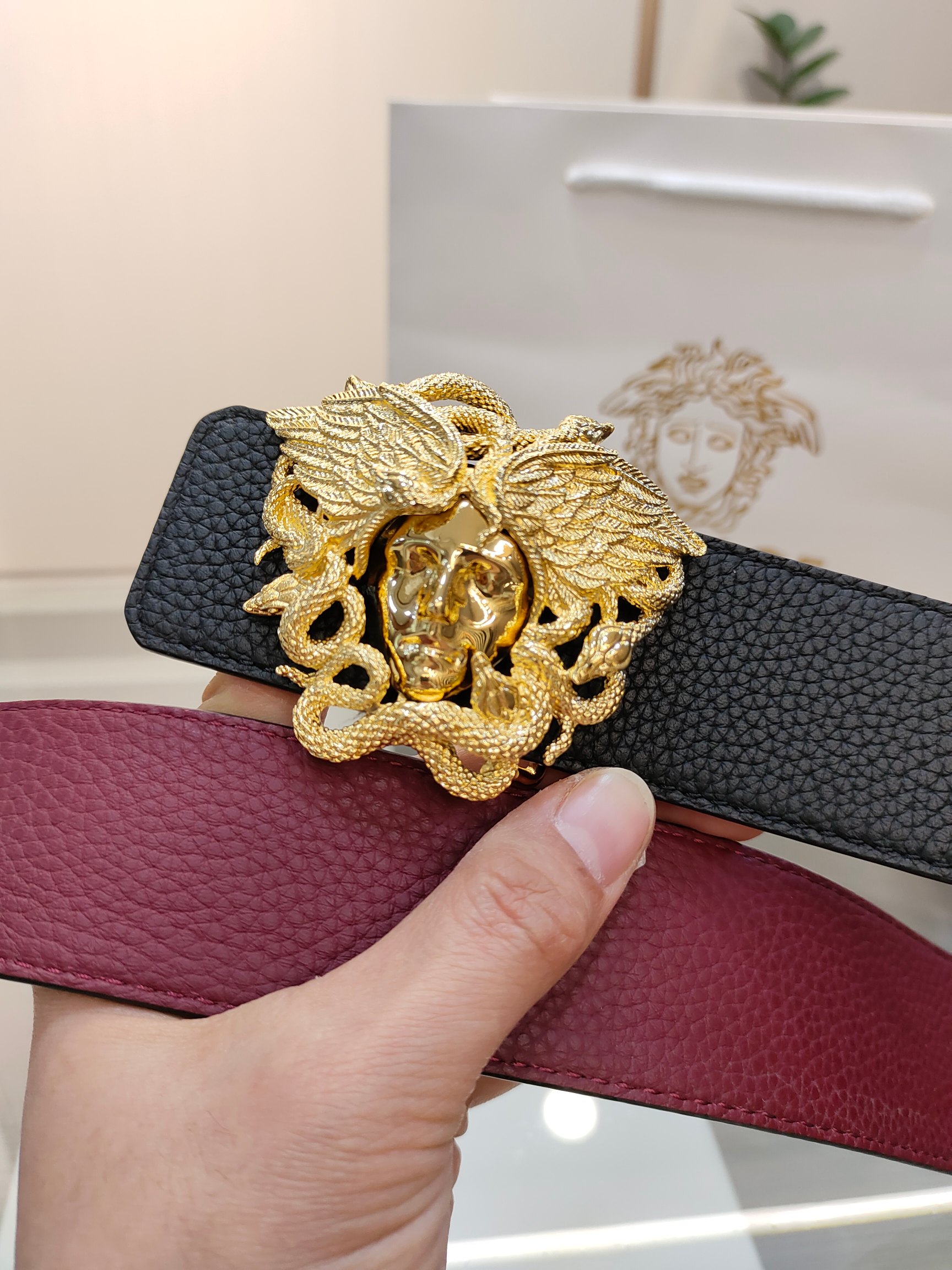 这款皮带是AAAAA 1:1 质量 (非常棒). 使用了和原版一模一样的材料. 商标部分也保持了和范思哲/Versace一样. 图片拍摄是实物皮带拍摄, 您所收到的实物保证和我们图片一模一样.