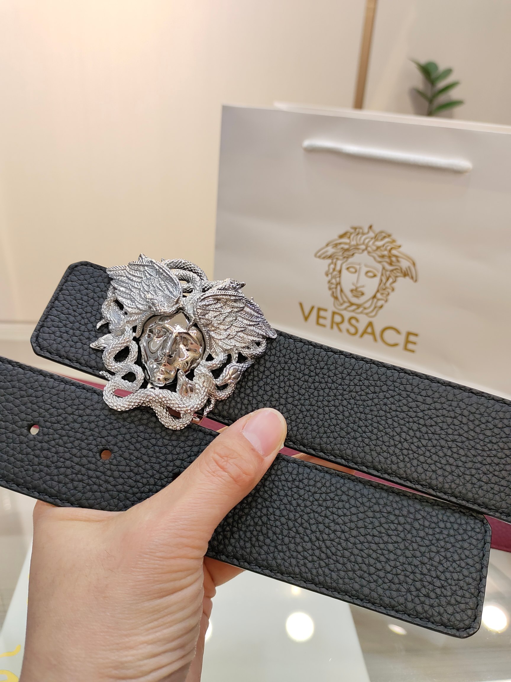这款皮带是AAAAA 1:1 质量 (非常棒). 使用了和原版一模一样的材料. 商标部分也保持了和范思哲/Versace一样. 图片拍摄是实物皮带拍摄, 您所收到的实物保证和我们图片一模一样.