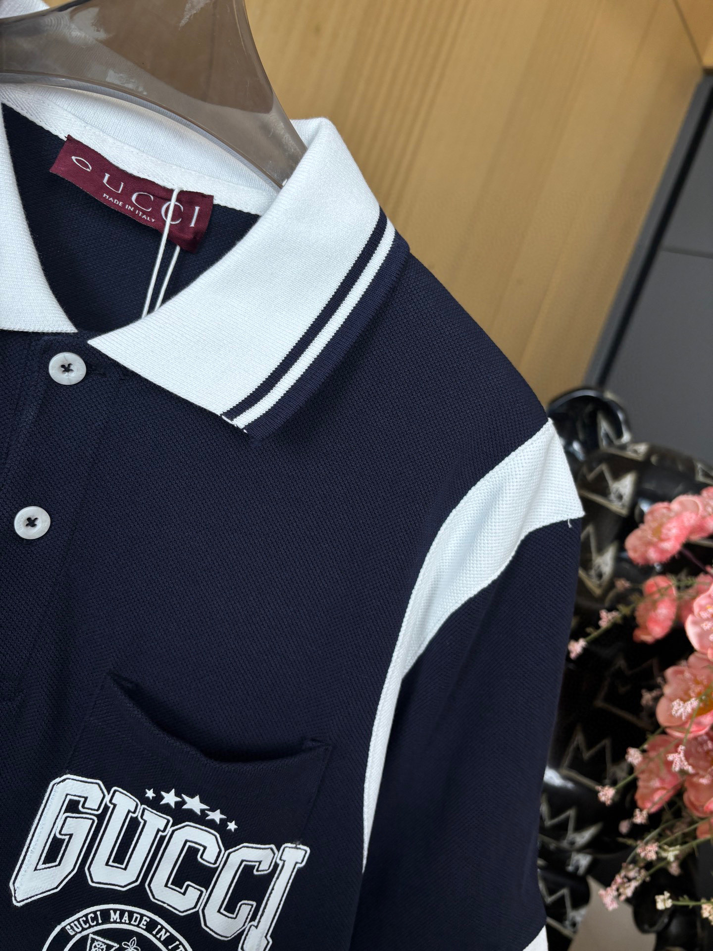 这款衣服是AAAAA 1:1 质量 (非常棒). 使用了和原版一模一样的材料. 商标部分也保持了和古奇/Gucci一样. 图片拍摄是实物衣服拍摄, 您所收到的实物保证和我们图片一模一样.