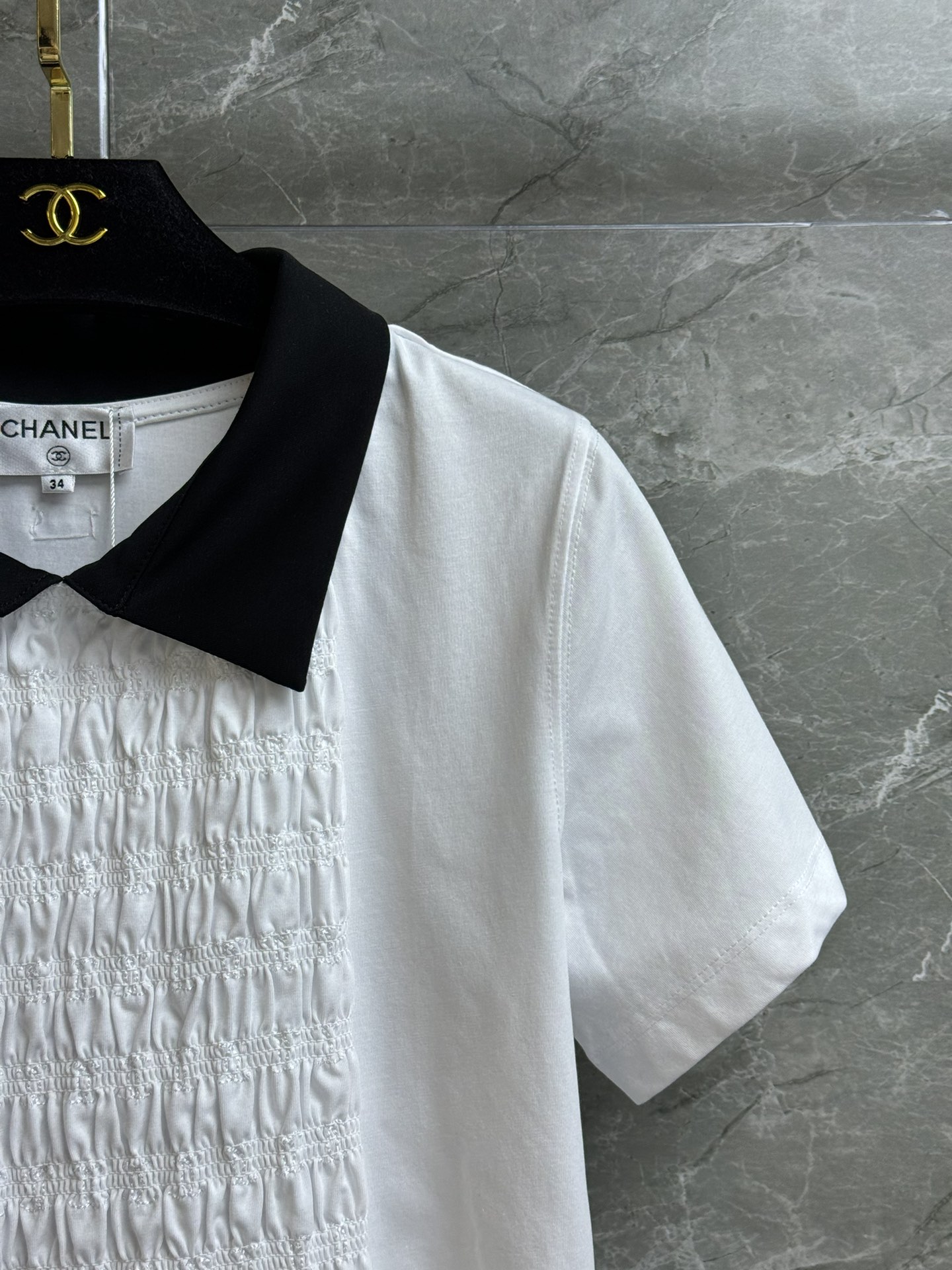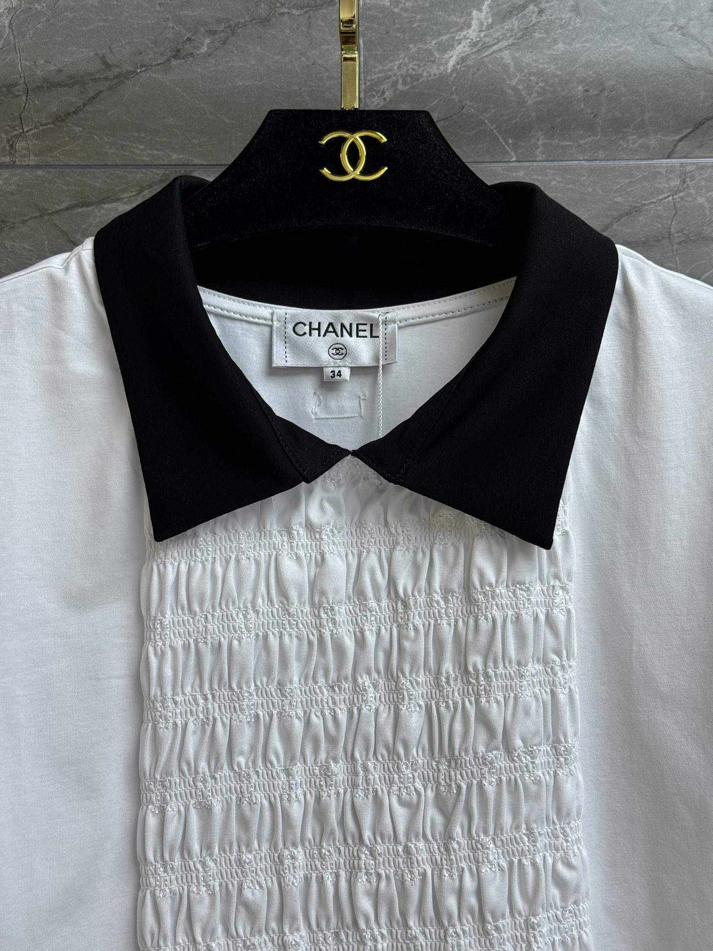 这款衣服是AAAAA 1:1 质量 (非常棒). 使用了和原版一模一样的材料. 商标部分也保持了和香奈儿/Chanel一样. 图片拍摄是实物衣服拍摄, 您所收到的实物保证和我们图片一模一样.